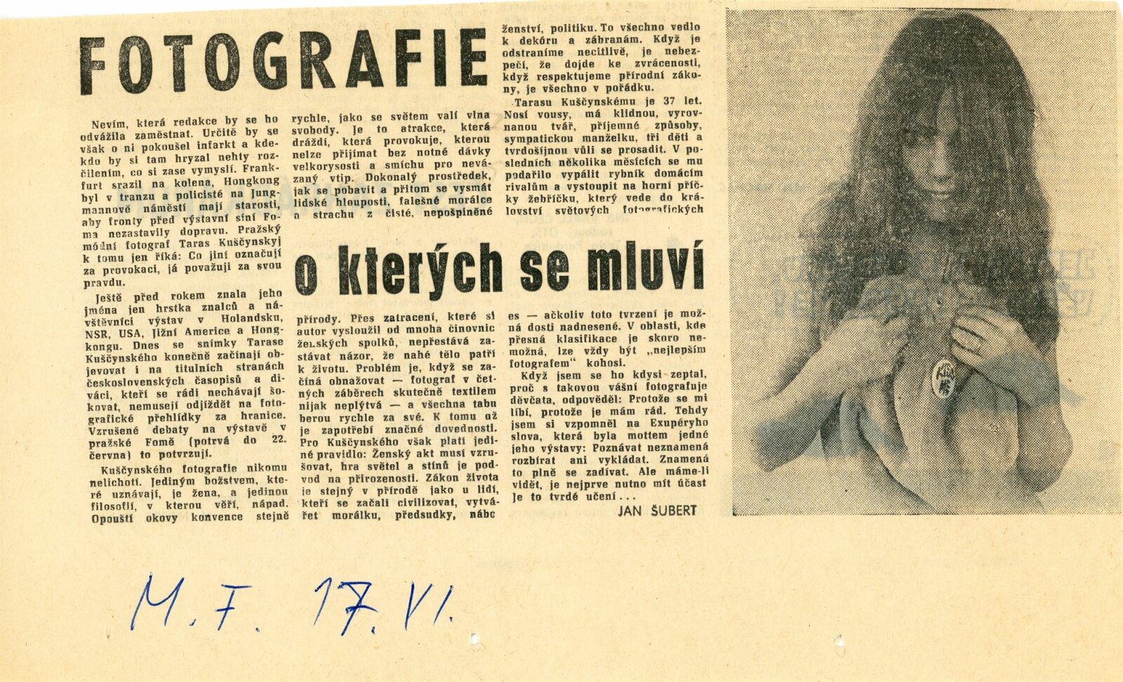 Taras Kuščynskyj. Fotografie: Dům umění města Brna, hala 3. 7. – 27. 7. 1969 / Brno: DUmB, 1969. – 4 s., 5 s. obr. příl., životní data, výstavy, publikace, neobsahuje seznam exponátů, DU 530. – MZK; MG; MMB