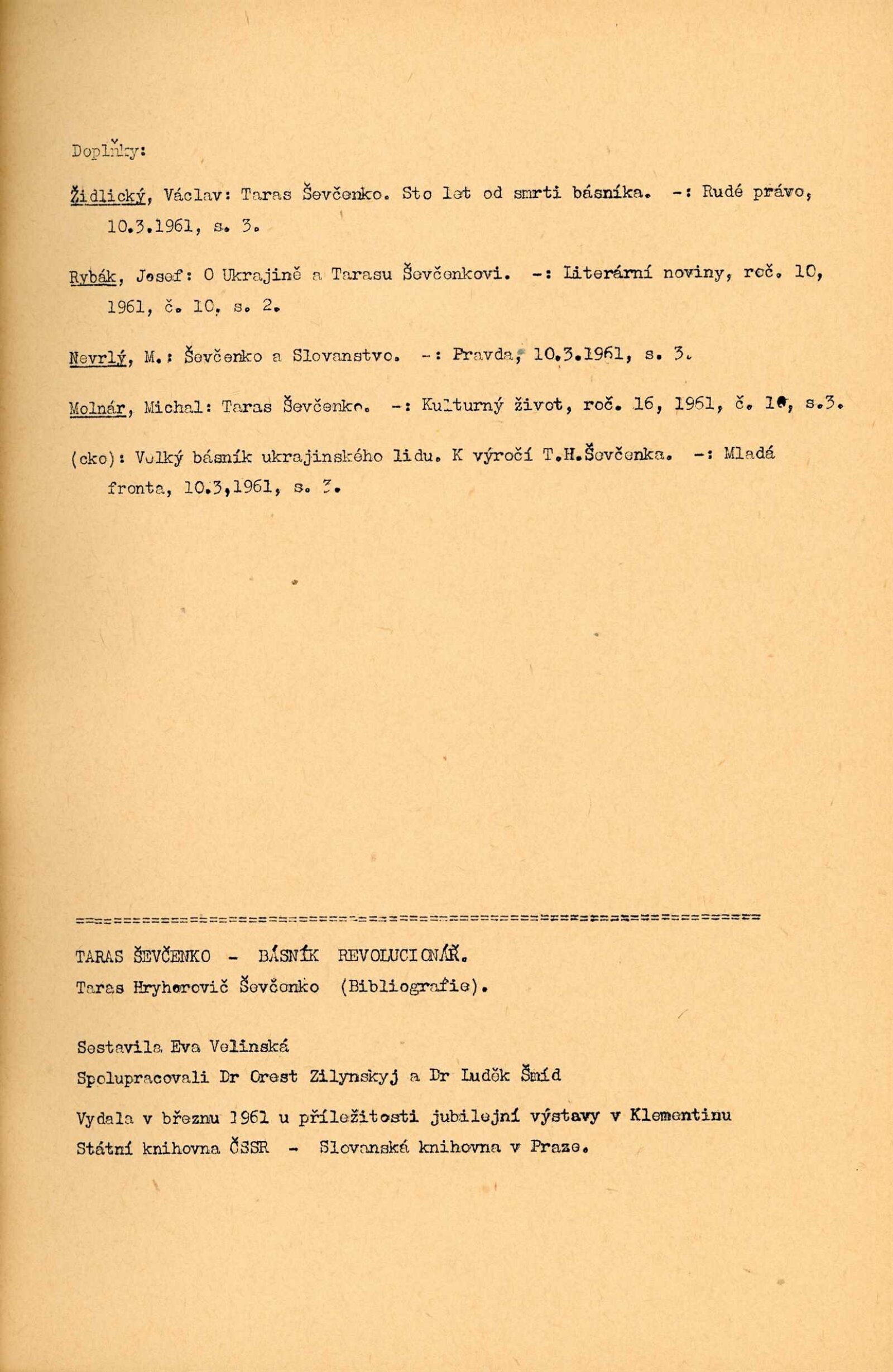korespondence o realizaci výstavy, protokol o převzetí exponátů, zprávy v tisku, bibliografie