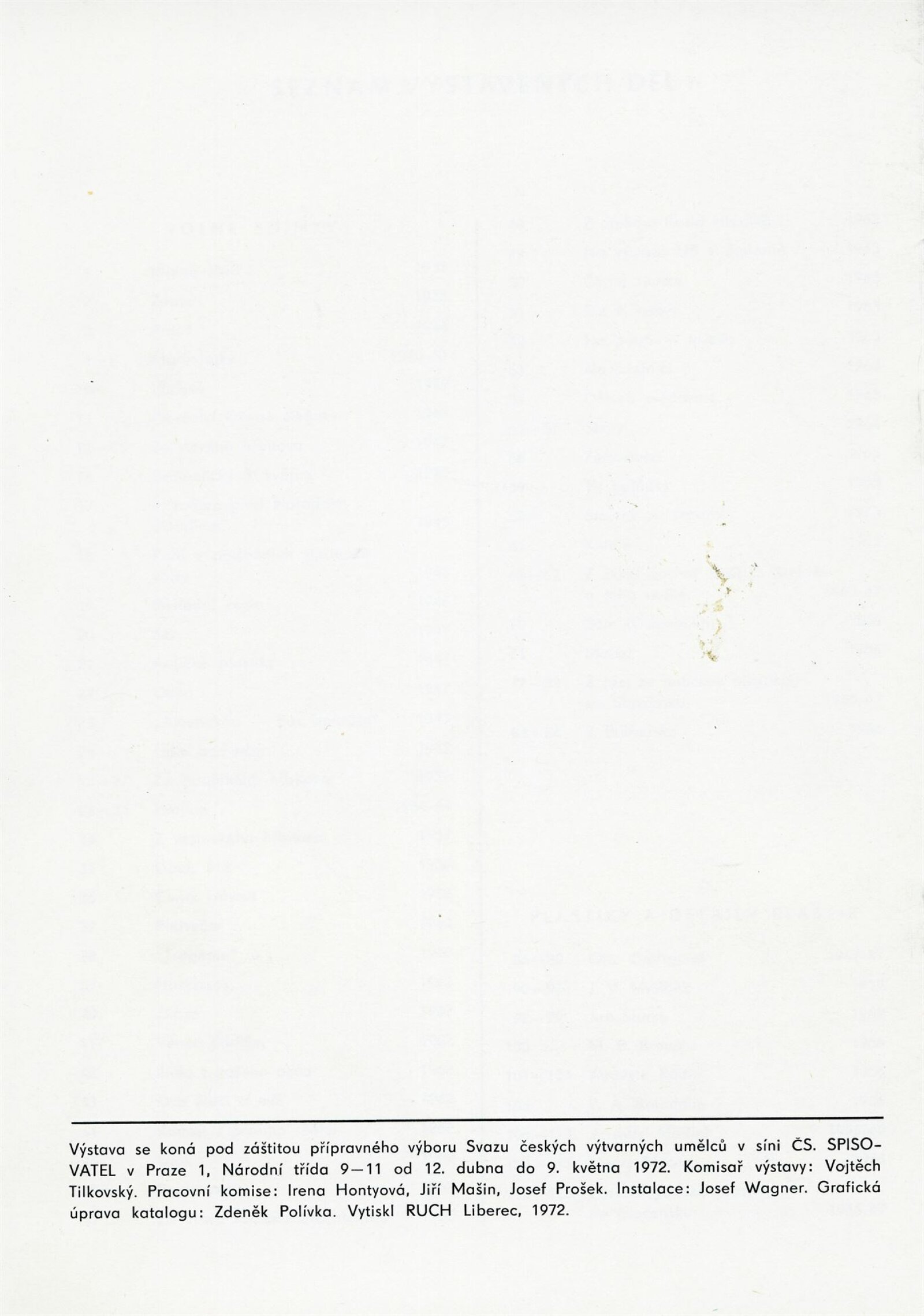 pozvánka, převzatý katalog s vloženou tiráží pro DU, fotografie výstavy a z vernisáže, zpráva o průběhu výstavy, seznam vystavených děl, provozní korespondence, nabídka reprízy výstavy ze SČVU, recenze v tisku