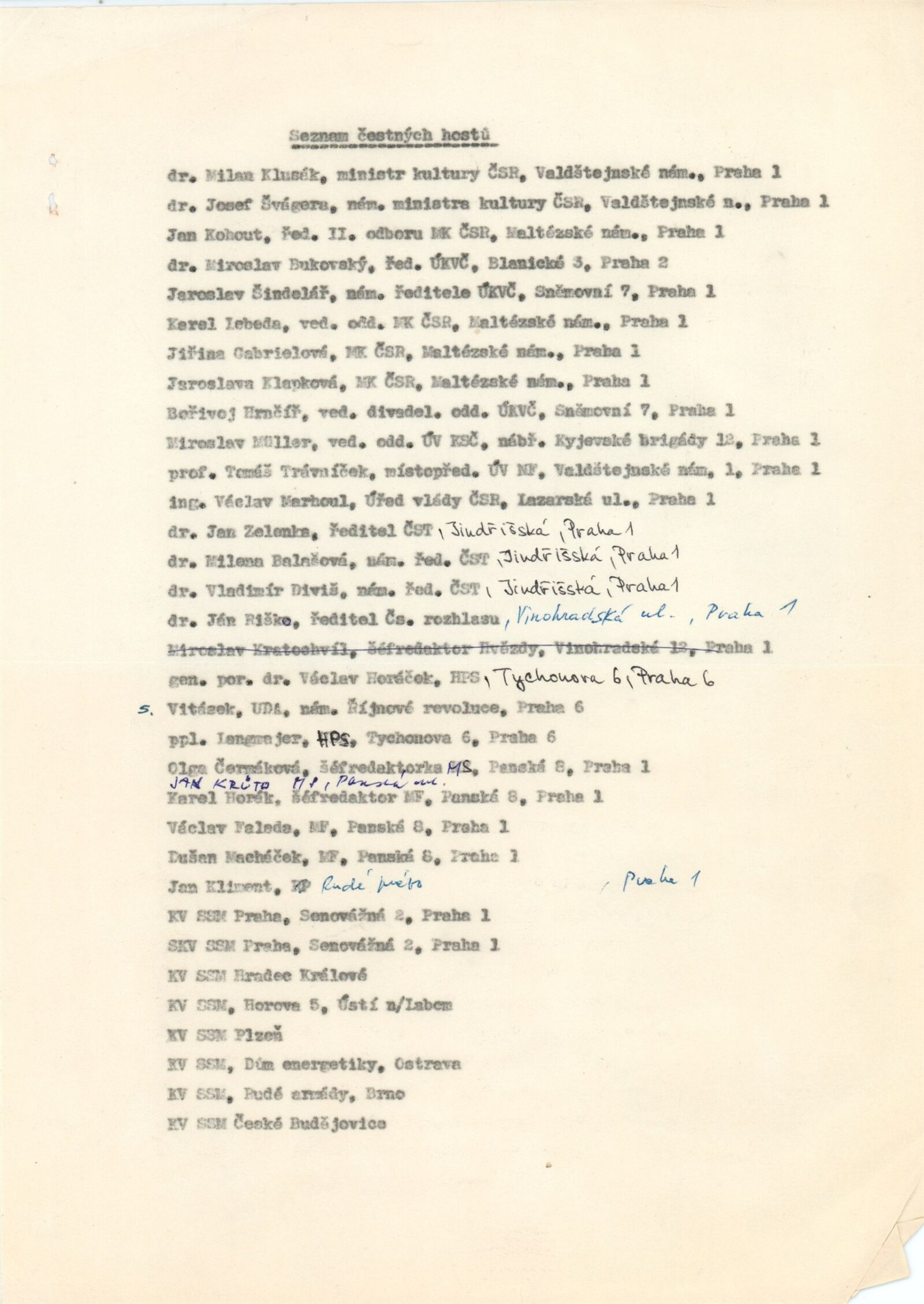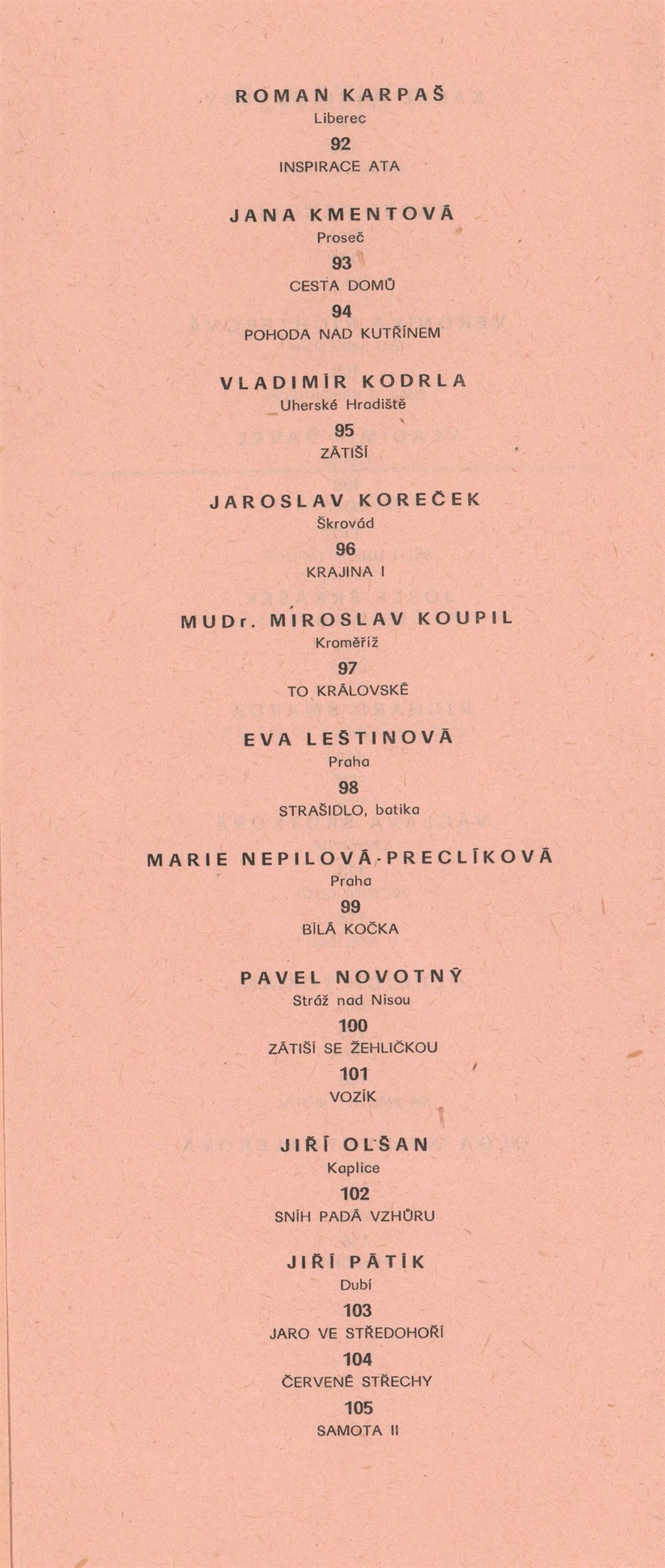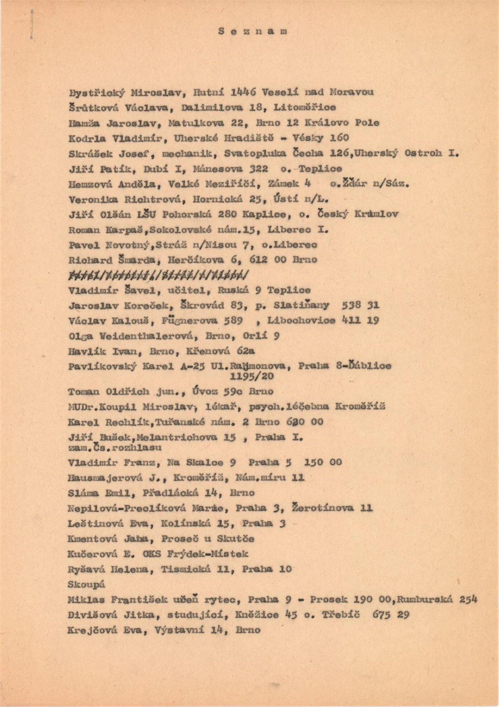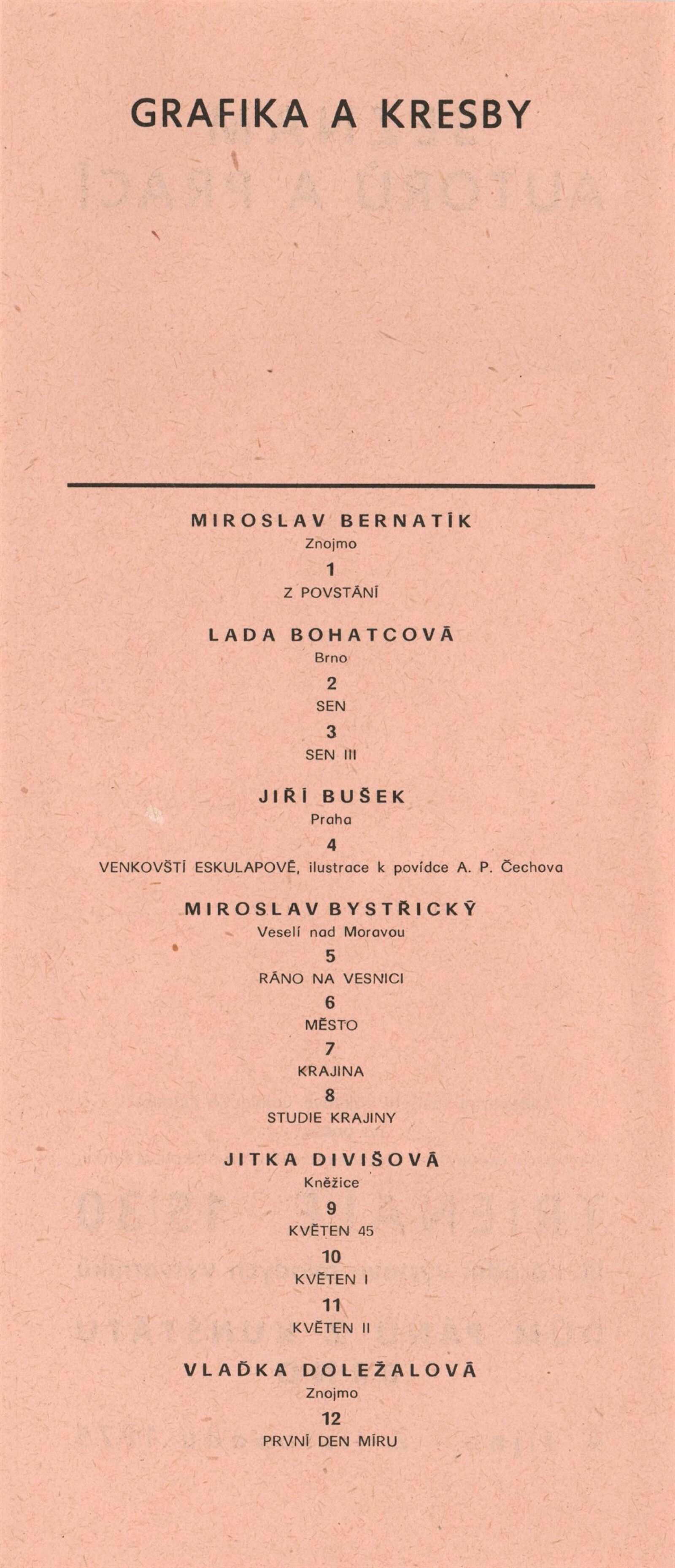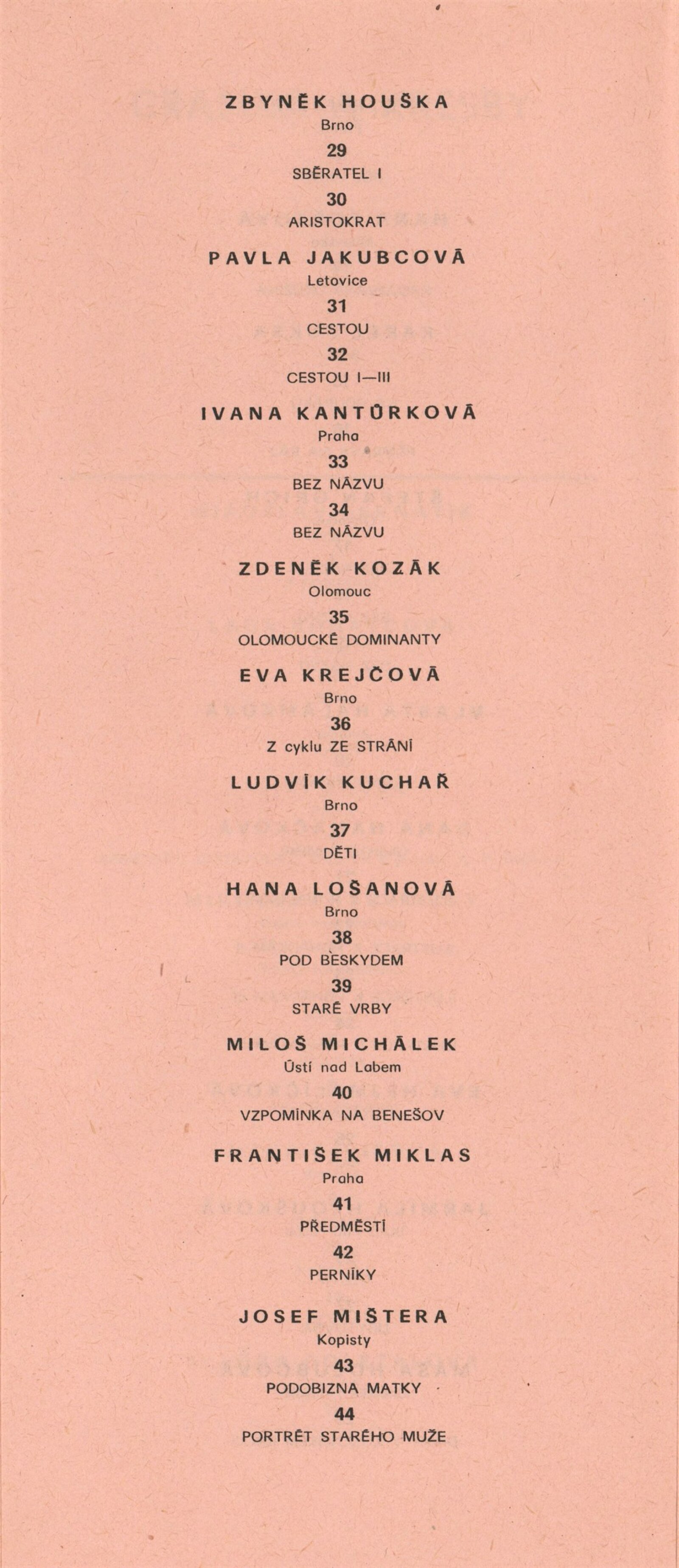 Miroslav Bernatík, Lada Bohatcová, Jiří Bušek, Miroslav Bystřický, Jitka Divišová, Vlaďka Doležalová, Petr Filip, Hana Fořtová, Karel Fuksa, Štefan Grich, Vlasta Halámková, Dana Hanáčková, Eva Hejmalíčková, Jarmila Hloušková, Máša Holubcová, Zbyněk Houška, Pavla Jakubcová, Ivana Kantůrková, Zdeněk Kozák, Eva Krejčová, Ludvík Kuchař, Hana Lošanová, Miloš Michálek, František Miklas, Josef Mištera, Jiří Olšan, Václava Poupová, Blahoslav Rozbořil, Vlasta Růžičková, Helena Ryšavá, Věra Skoupá-Palečková, Emil Sláma, Janina Szotkowská, Vladimír Šavel, Václava Šrůtková, Sylva Štrachová, Jana Tomanová, Oldřich Treutner, Jiří Vaněk, Miloš Vybíhal, Bohunka Waagerová, Ilja Zachoval, Jan Zuziak, Vladimír Franz, Jaroslav Hamža, Jitka Hausmajerová, Ivan Havlík, Anděla Hemzová, Václav Kalouš, Roman Karpaš, Jana Kmentová, Vladimír Kodrla, Jaroslav Koreček, Miroslav Koupil, Eva Leštinová, Marie Nepilová-Preclíková, Pavel Novotný, Jiří Olšan, Jiří Pátík, Karel Pavlikovský, Karel Rechlík, Veronika Richterová, Josef Škrášek, Richard Šmarda, Oldřich Toman, Olga Weidenthalerová, Josef Pancurák, Petra Rokosová, Eva Kučerová
