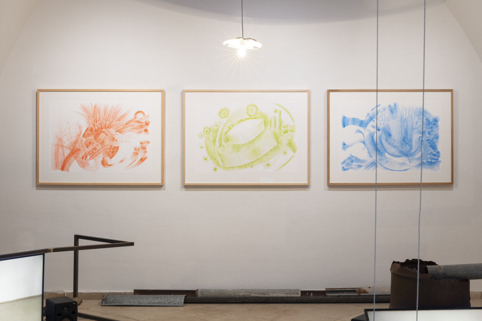 Alžběta Bačíková představuje instalaci vzniklou během rezidence Brno Artists in Residence. Kombinuje záznamy performancí, kresby a výšivky jako imaginativní, ale mnohem podstatněji věrně zaznamenaná místa, kde pod povrchem pulzují tabuizované události. V autofikčním gestu rozvíjí motivy rodové paměti, léčení a nevyhnutelnosti původu, jejichž emocionální síla se stává spouštěčem vyprávění.