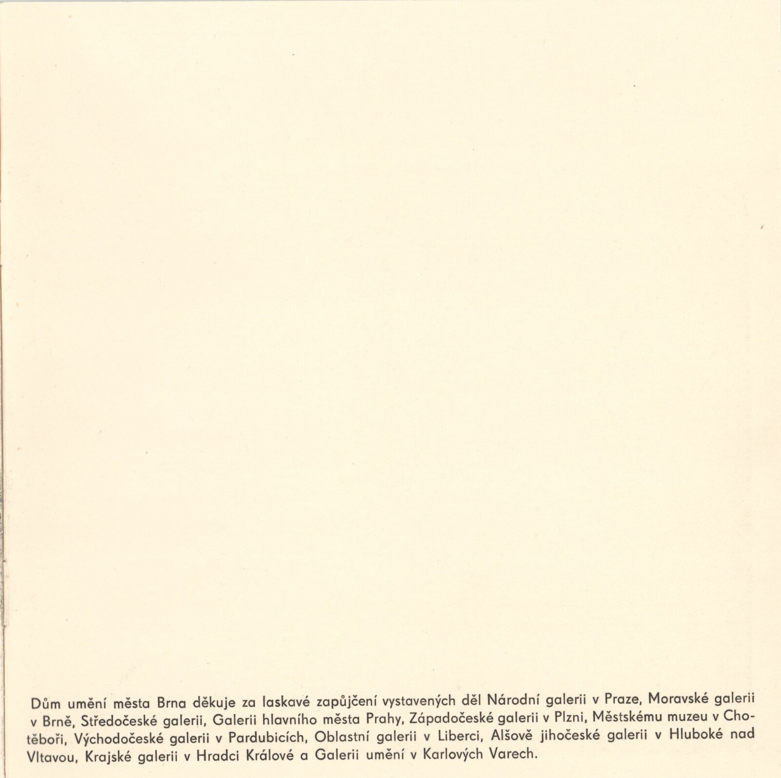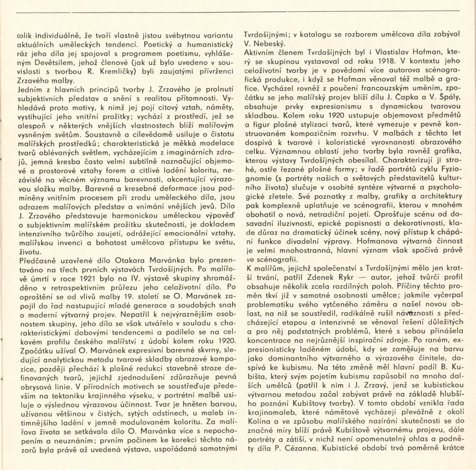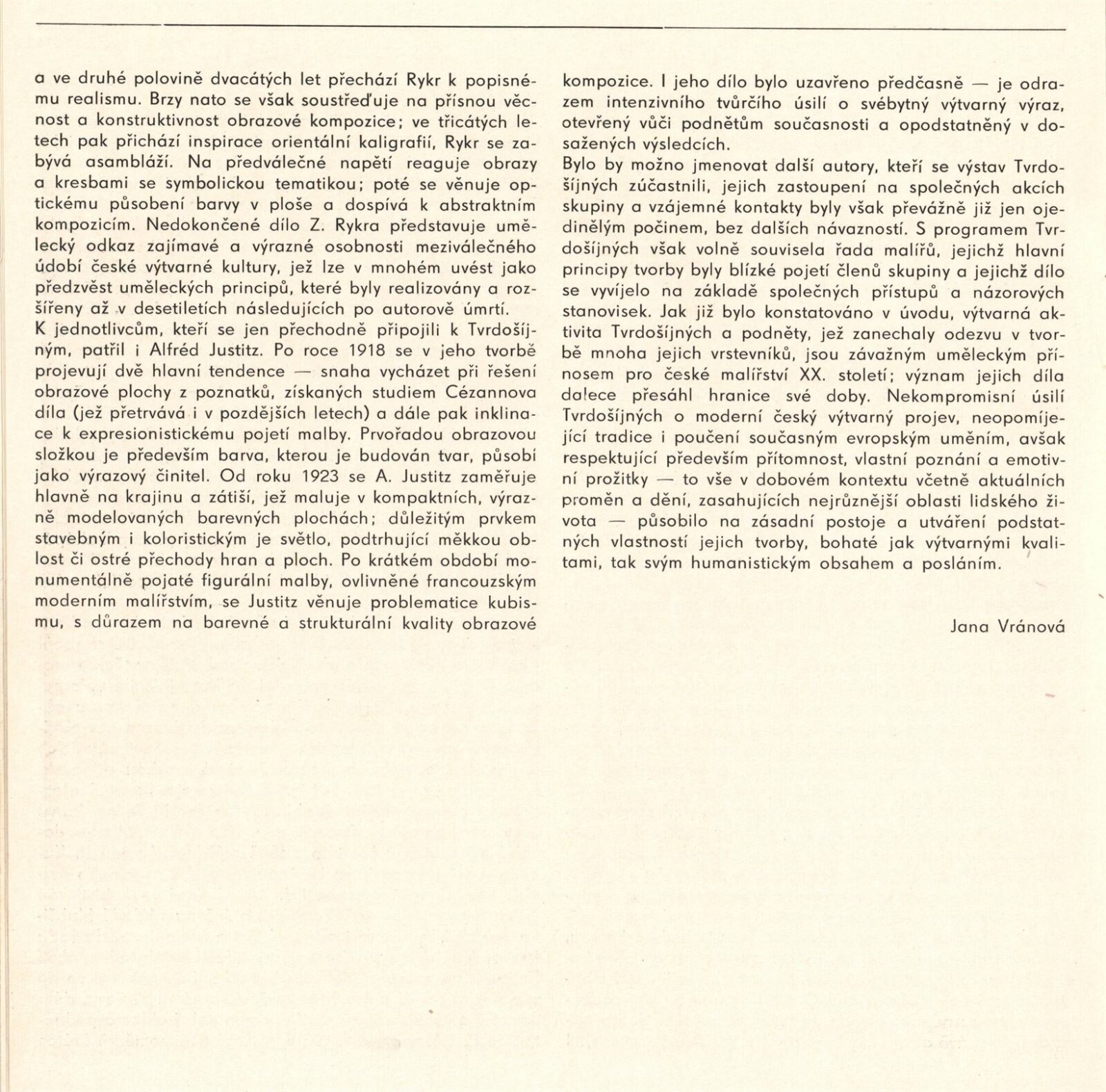 Tvrdošíjní. Čapek, Hofman, Justitz, Kremlička, Marvánek, Rykr, Špála, Zrzavý: Dům umění města Brna, 1. patro, 17. 2. – 30. 3. 1980 / Text: Jana Vránová. – Brno: DUmB, 1980. – 24 s., obr., seznam vystavených děl 7 s., DU 708. – MZK