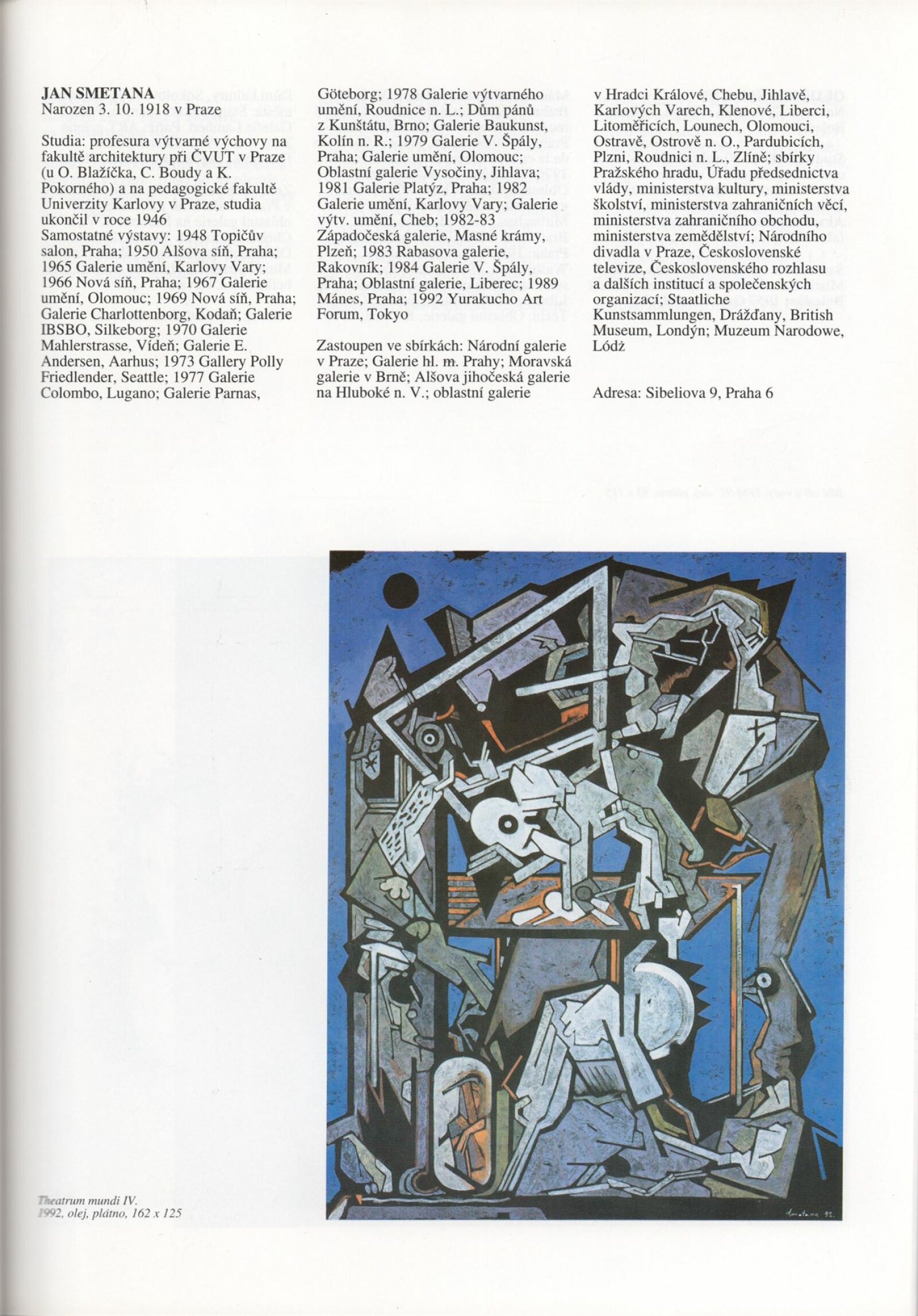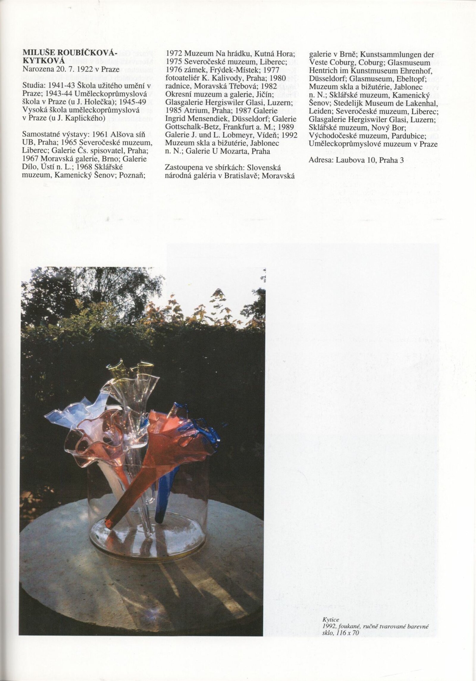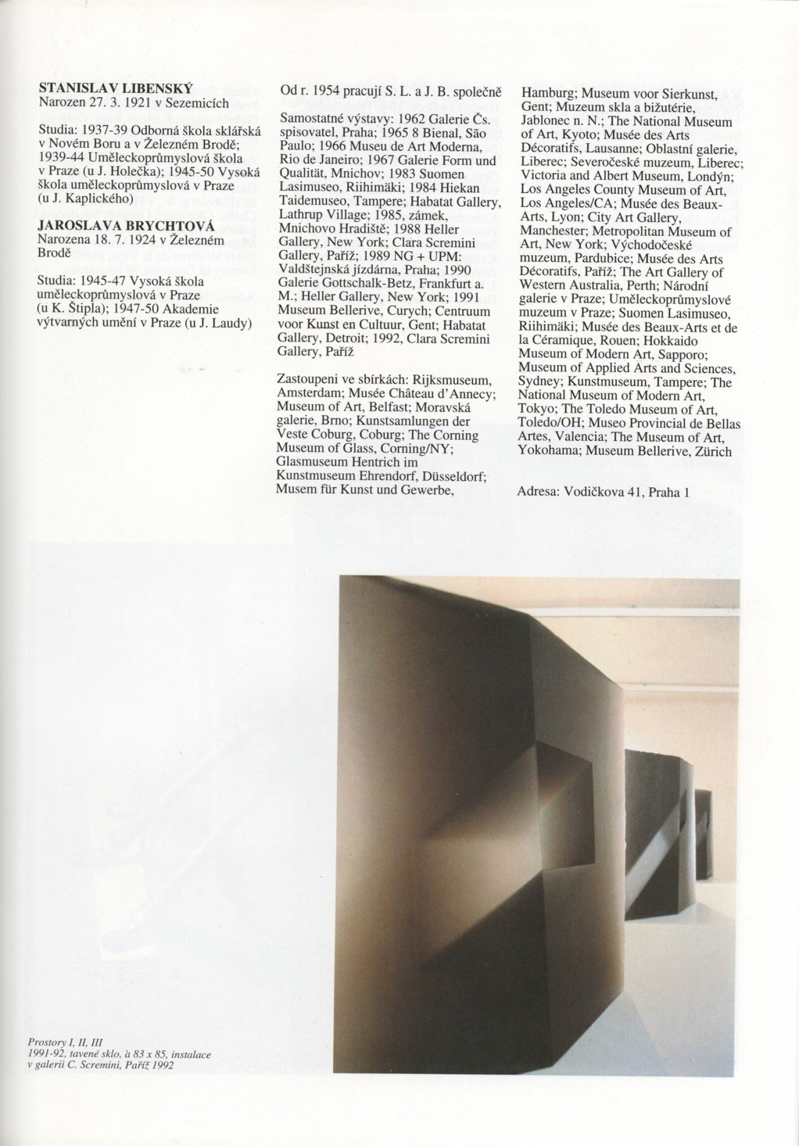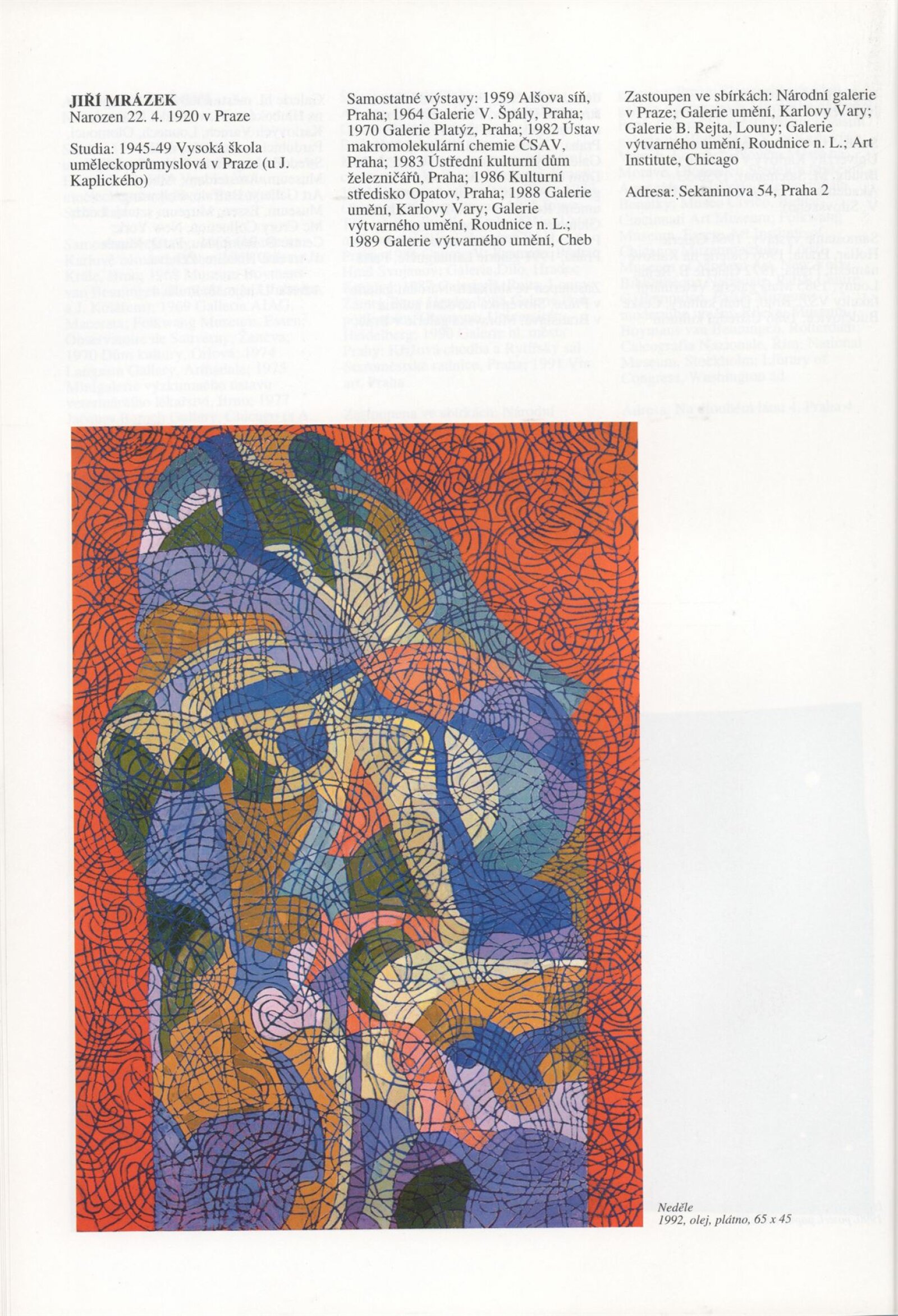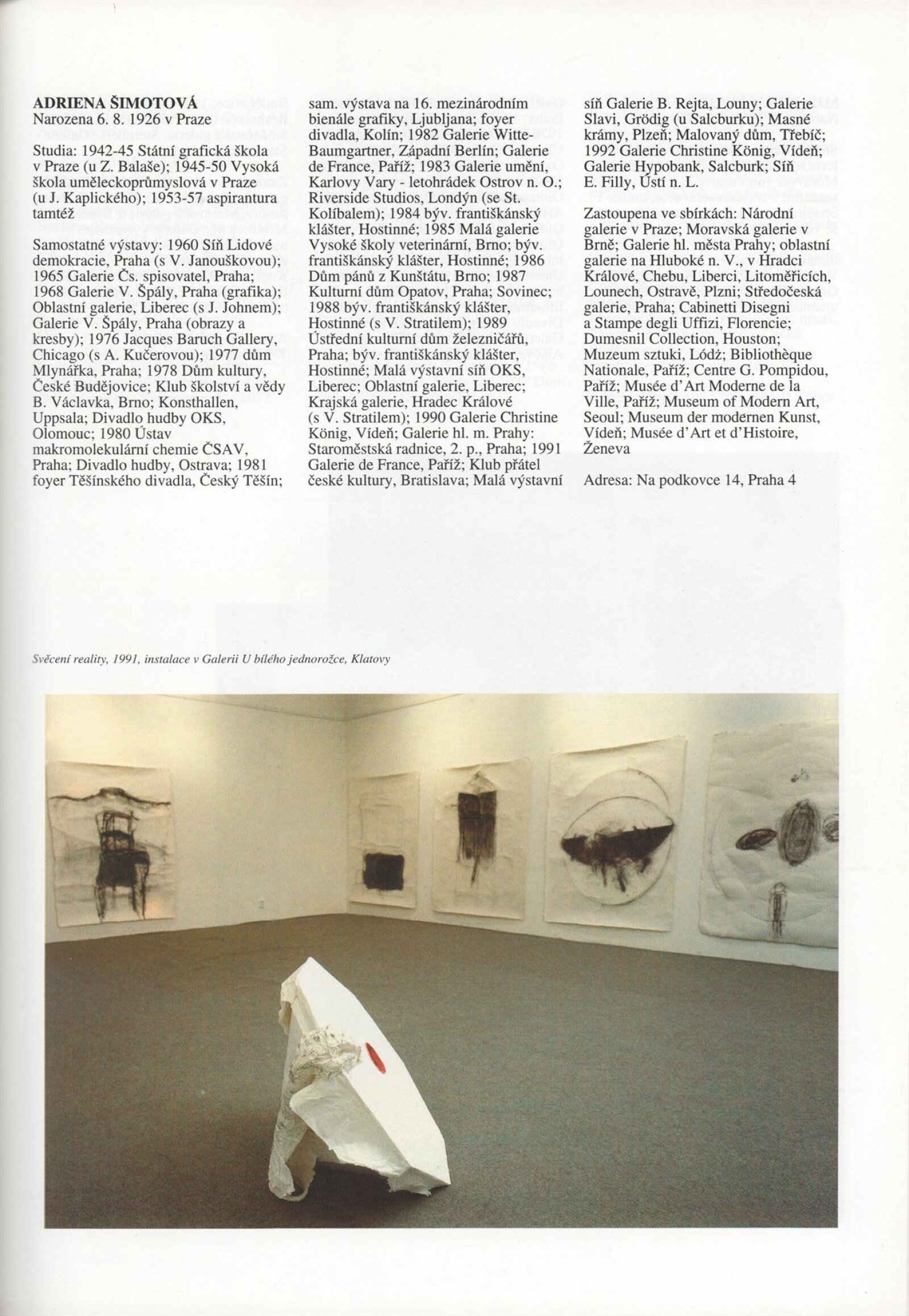 Umělecká beseda 1992: Dům umění města Brna 7. 9. – 10. 10. 1993. Převzatý katalog Umělecká beseda 1. výstava Výtvarného odboru Umělecké besedy po obnovení činnosti: Výstavní sály Mánesa, Praha 15. 12. 1992 – 31. 1. 1993. - Praha: Výtvarný odbor Umělecké besedy, - [46] s., obr.+ Rozmnožený seznam exponátů brněnské výstavy 4 s. Životní data vystavujících DU 952; MG