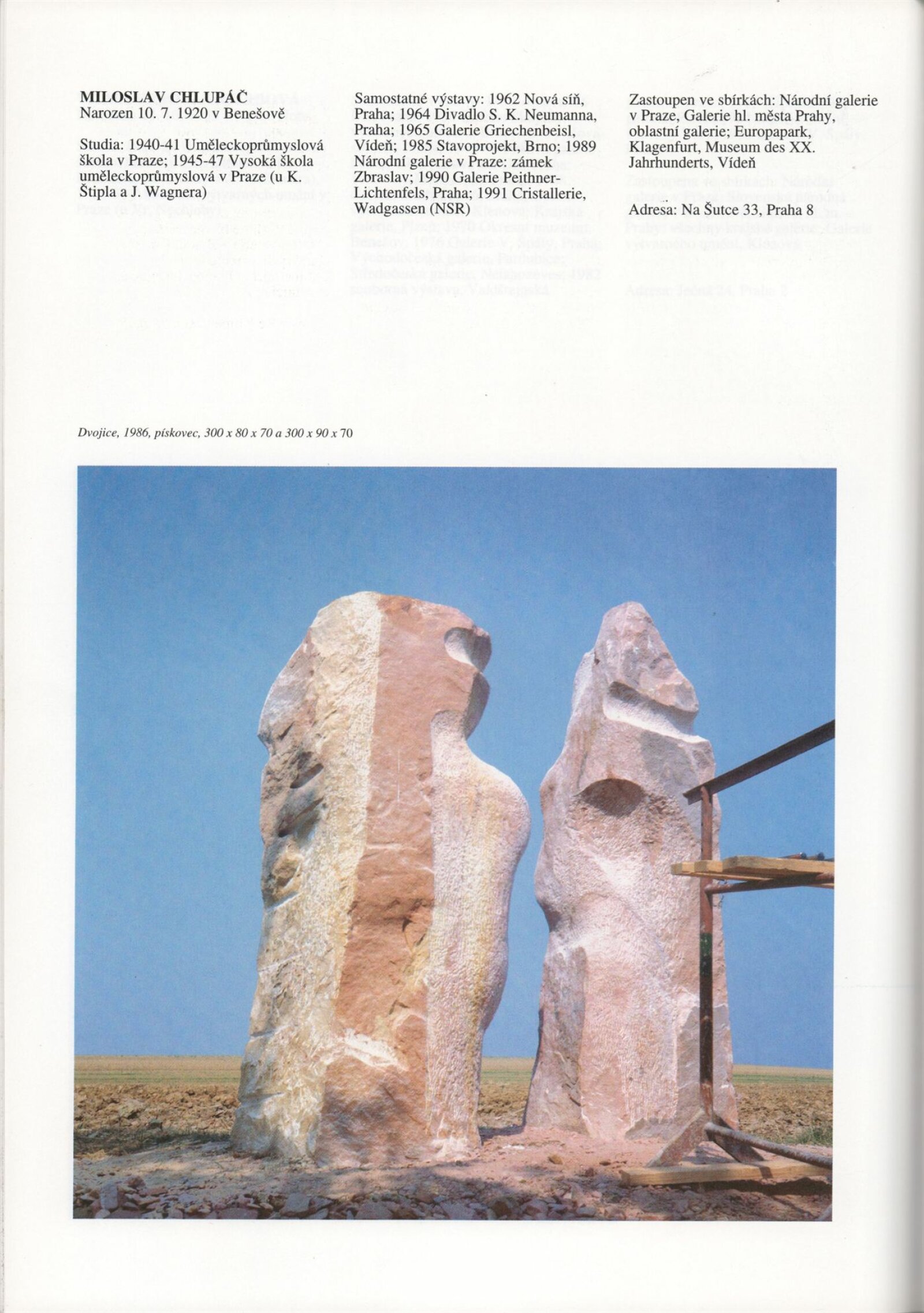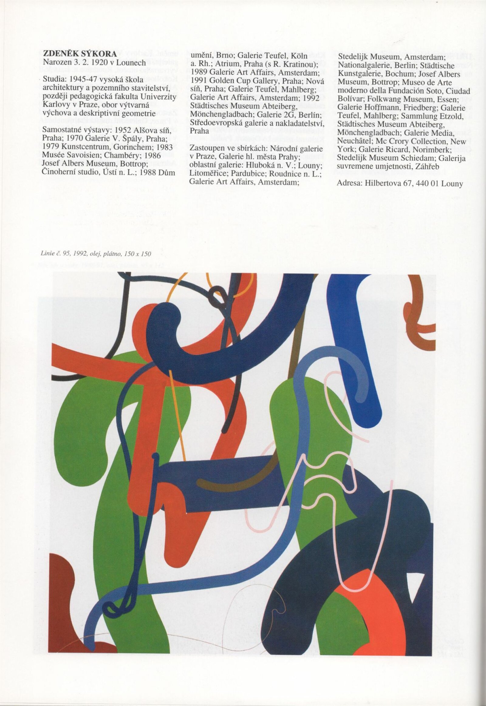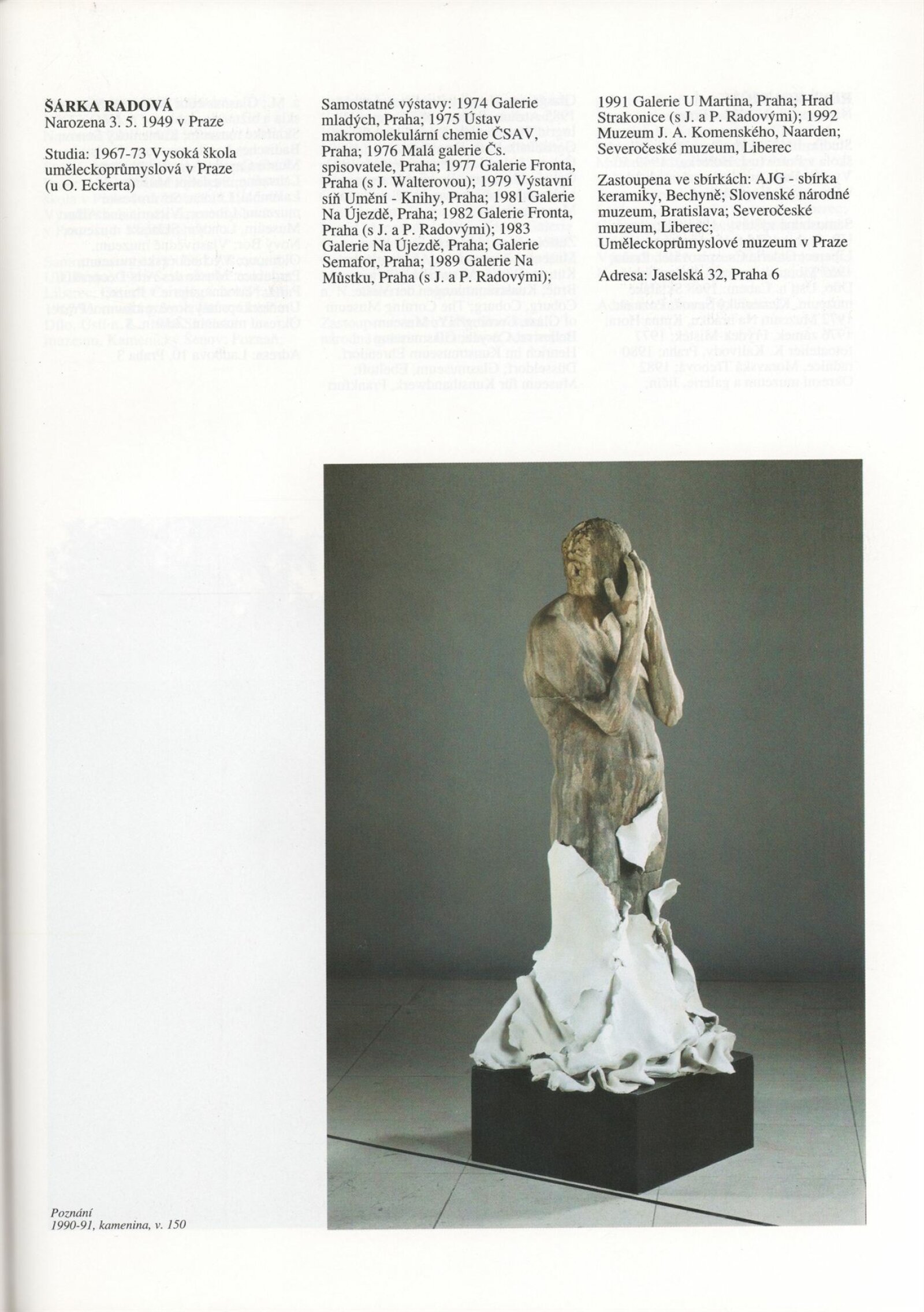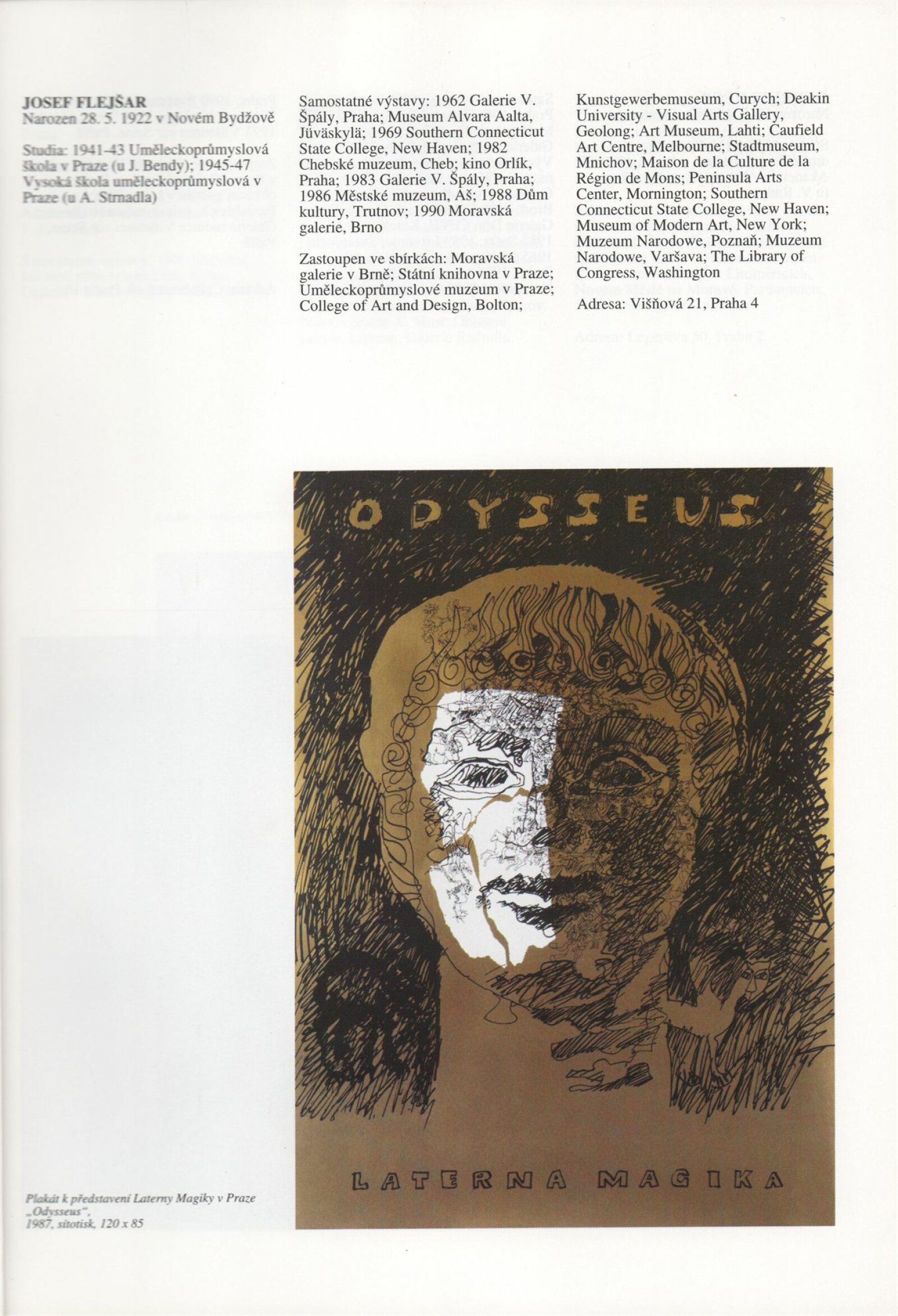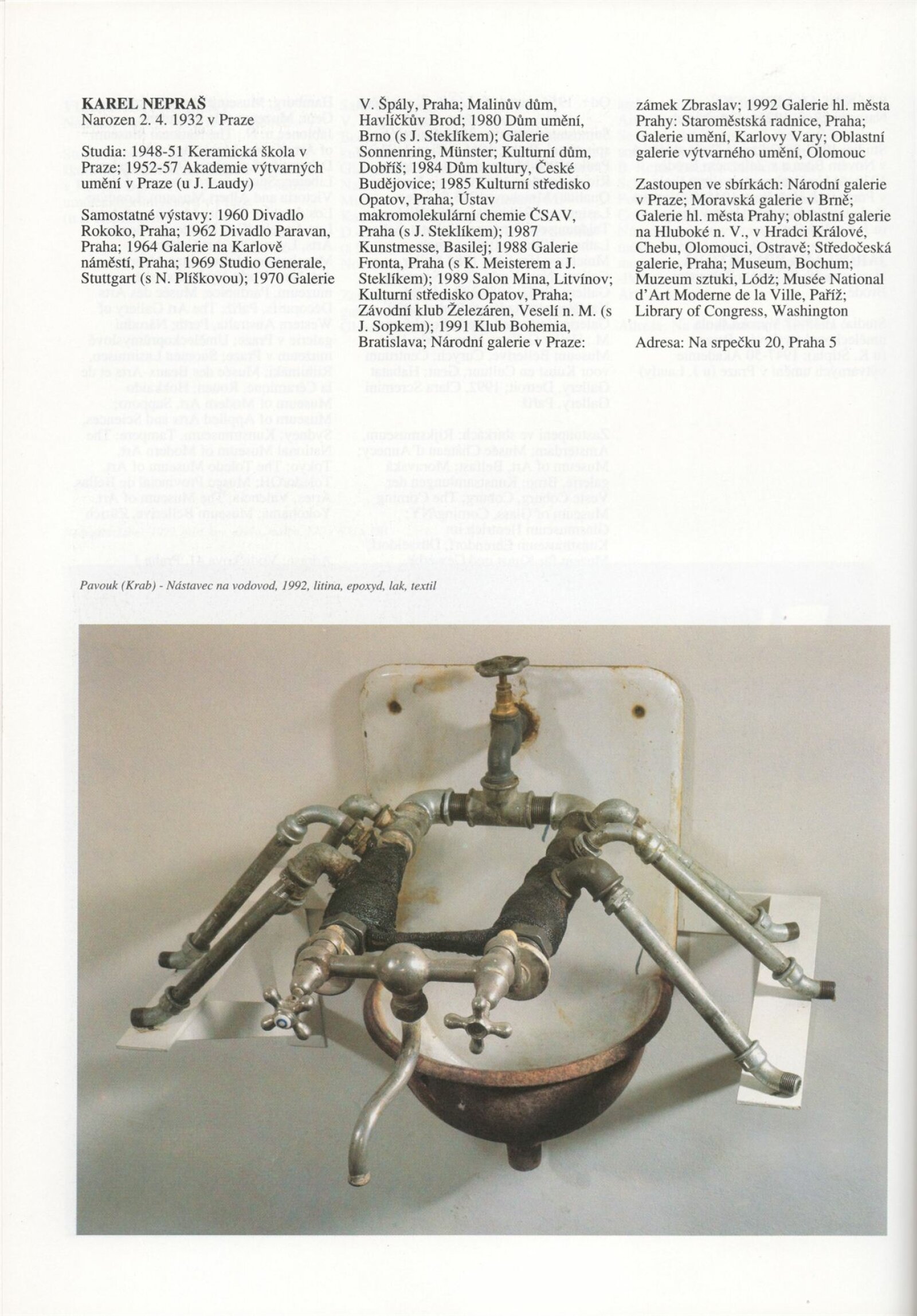 Umělecká beseda 1992: Dům umění města Brna 7. 9. – 10. 10. 1993. Převzatý katalog Umělecká beseda 1. výstava Výtvarného odboru Umělecké besedy po obnovení činnosti: Výstavní sály Mánesa, Praha 15. 12. 1992 – 31. 1. 1993. - Praha: Výtvarný odbor Umělecké besedy, - [46] s., obr.+ Rozmnožený seznam exponátů brněnské výstavy 4 s. Životní data vystavujících DU 952; MG