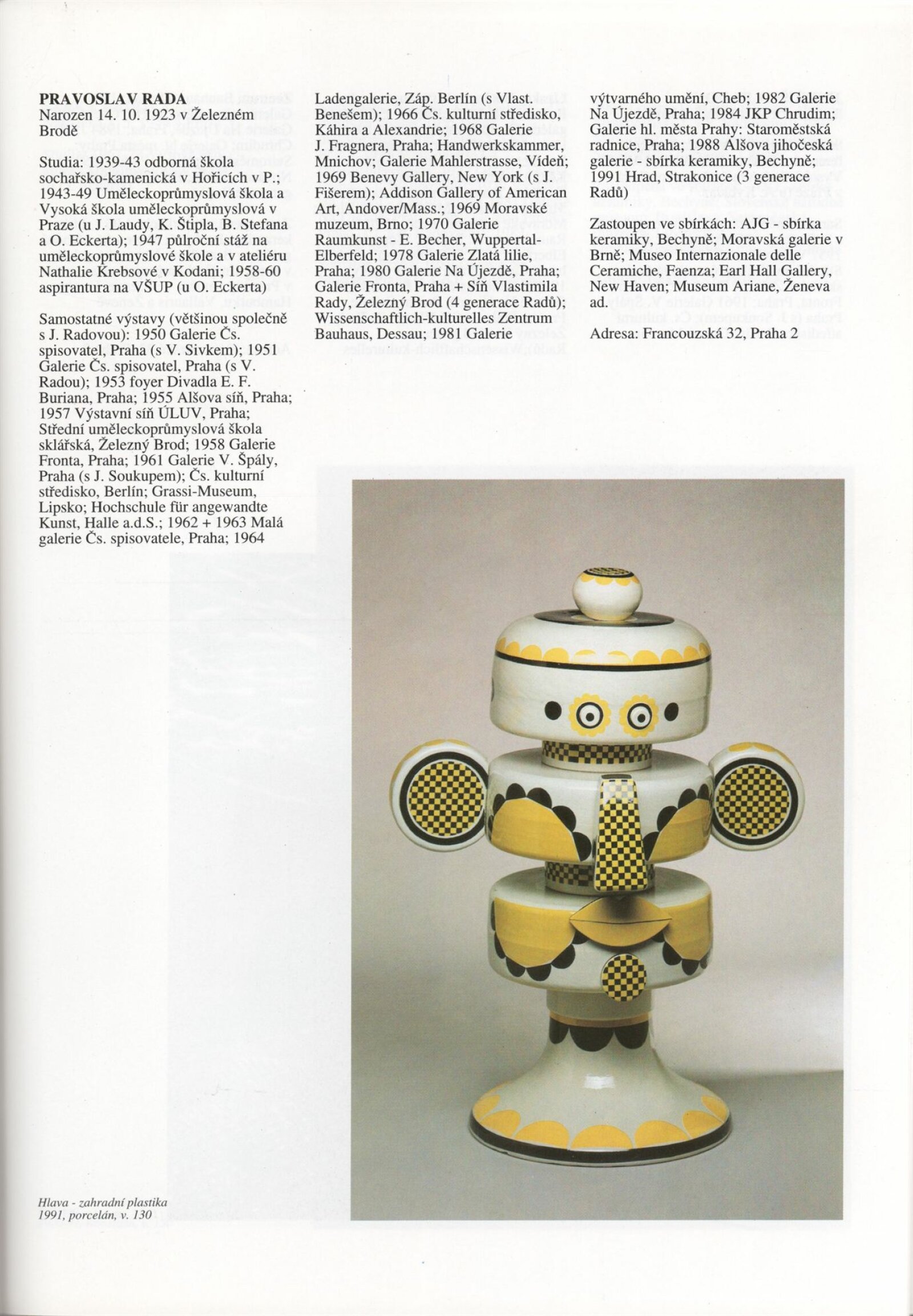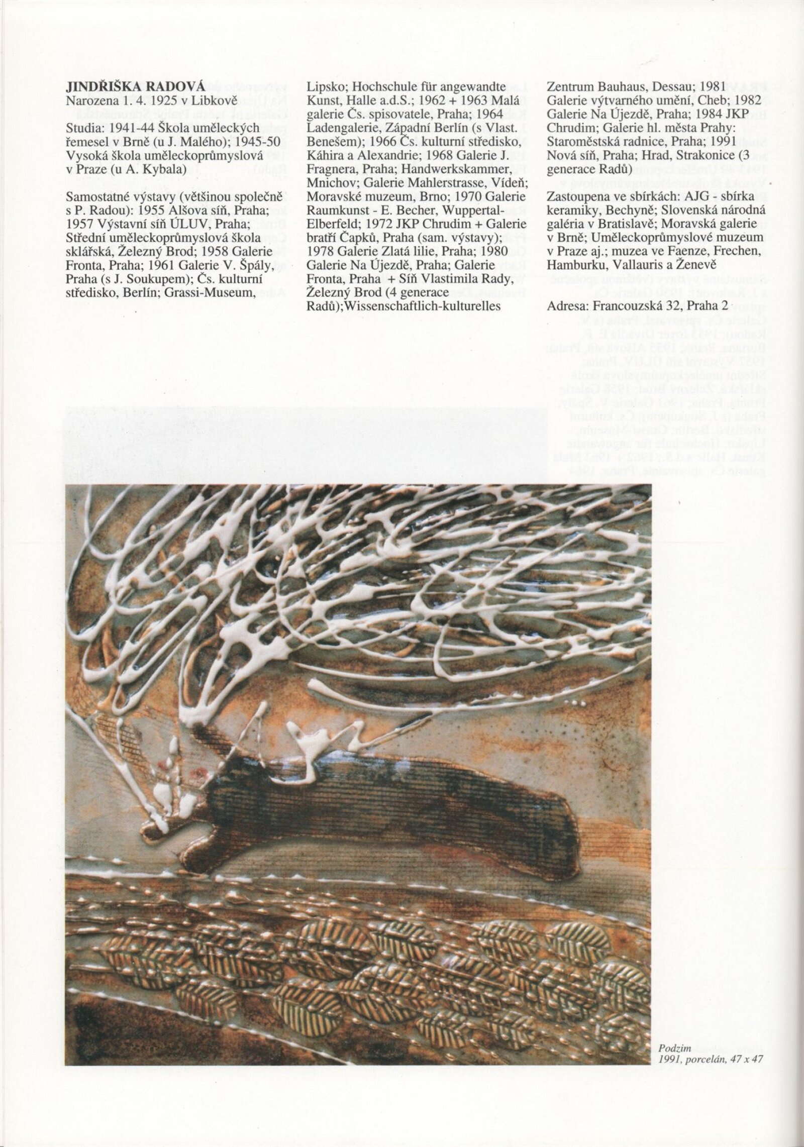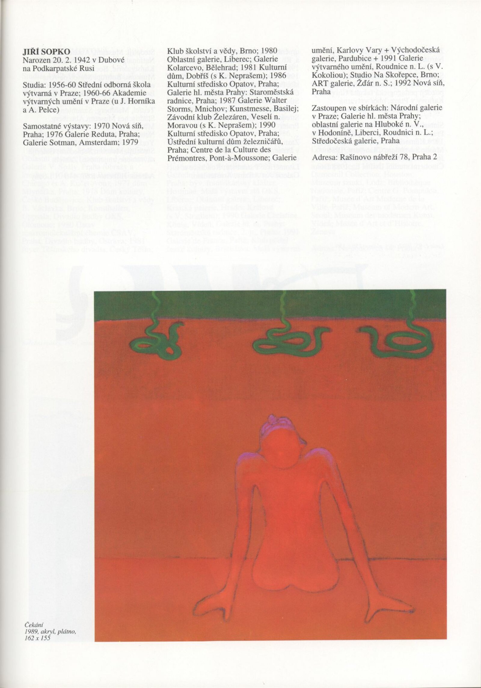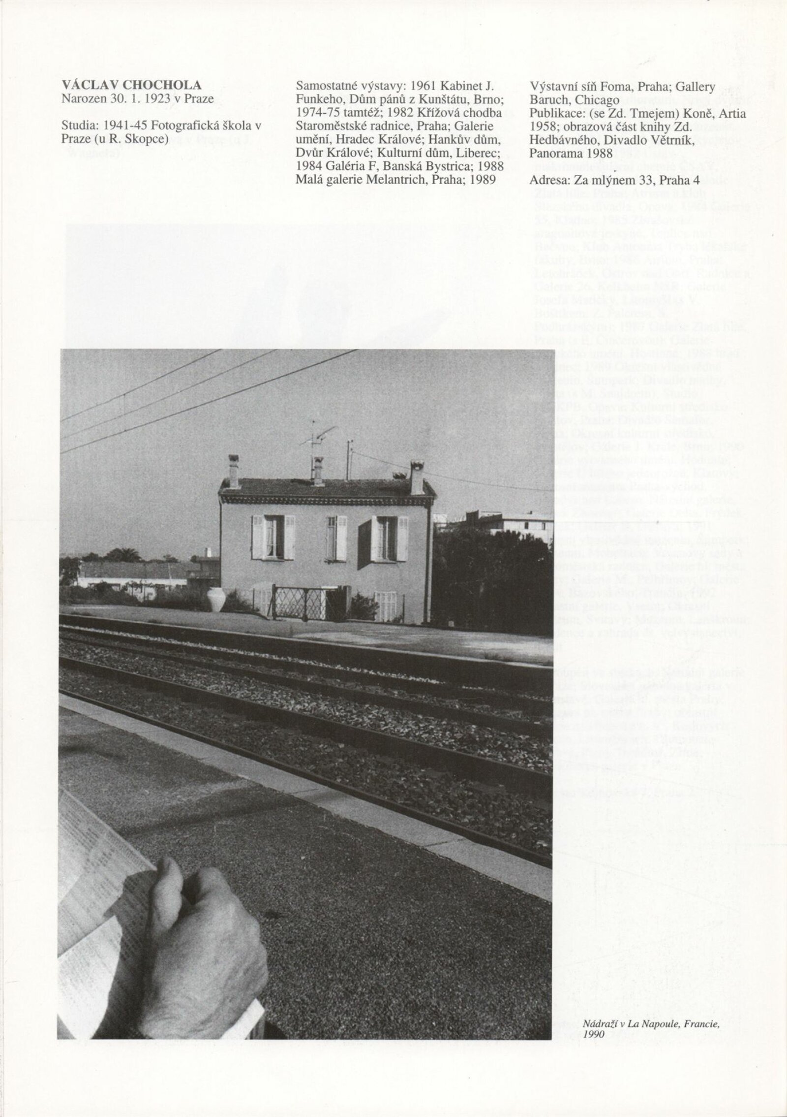 Umělecká beseda 1992: Dům umění města Brna 7. 9. – 10. 10. 1993. Převzatý katalog Umělecká beseda 1. výstava Výtvarného odboru Umělecké besedy po obnovení činnosti: Výstavní sály Mánesa, Praha 15. 12. 1992 – 31. 1. 1993. - Praha: Výtvarný odbor Umělecké besedy, - [46] s., obr.+ Rozmnožený seznam exponátů brněnské výstavy 4 s. Životní data vystavujících DU 952; MG