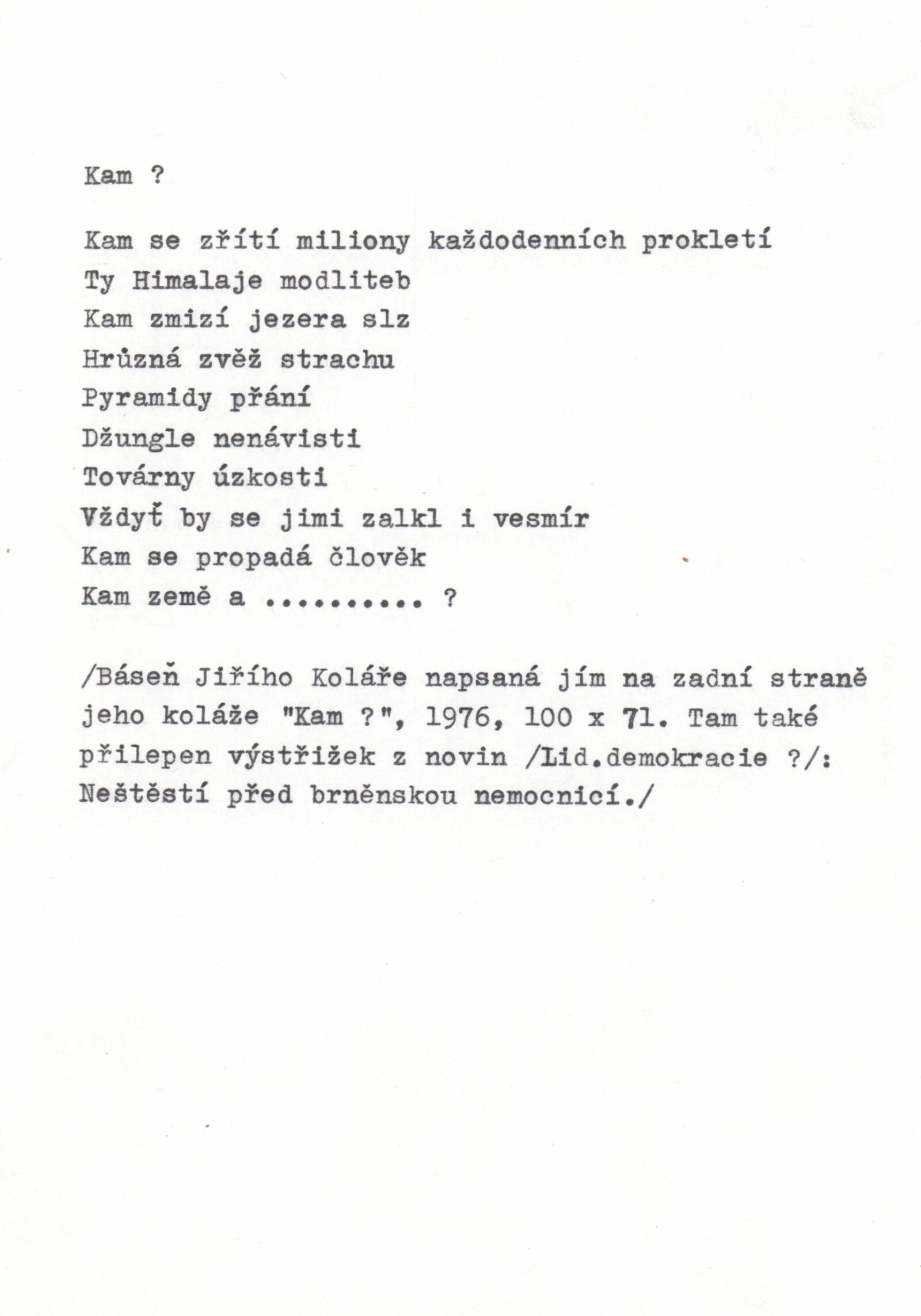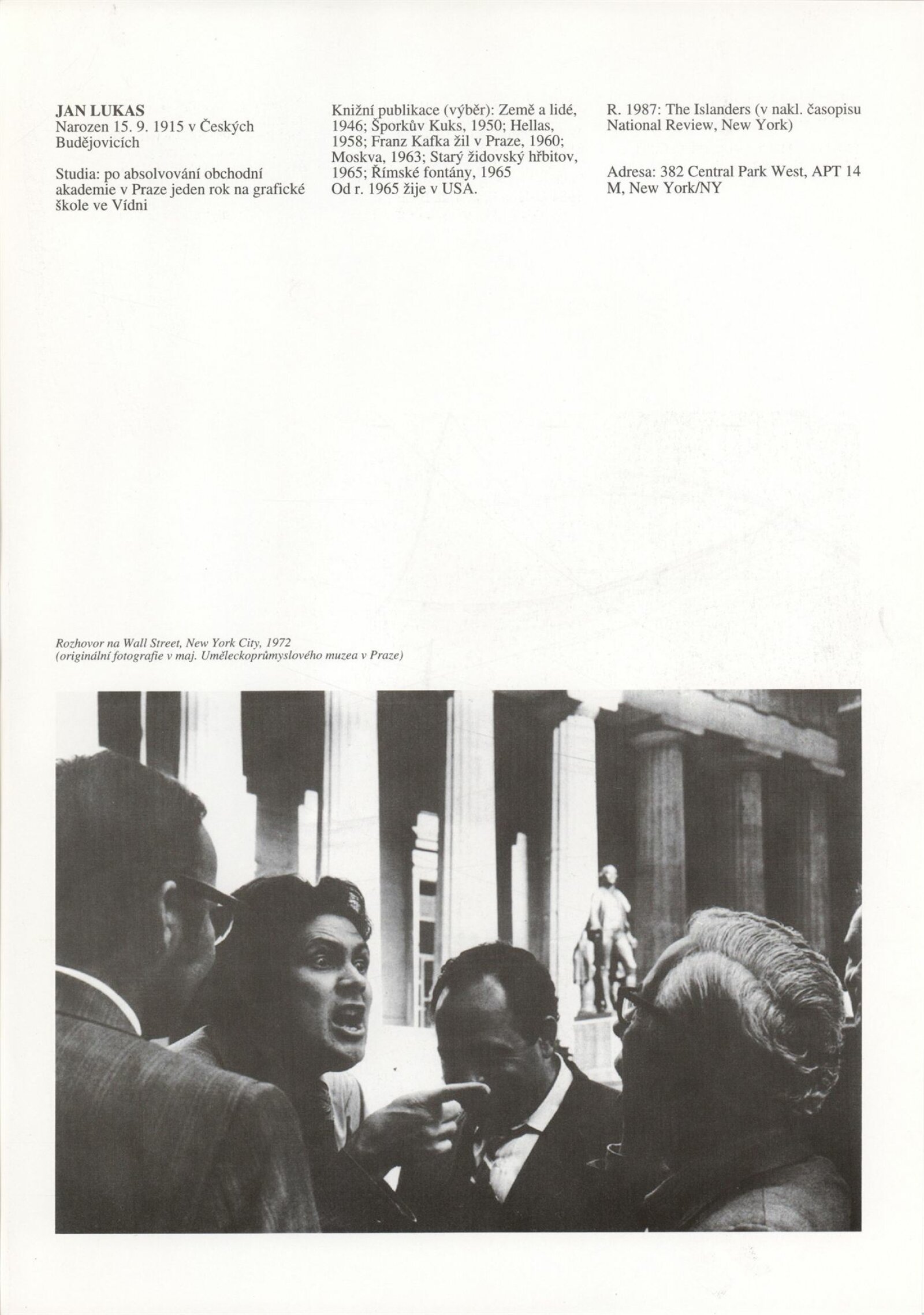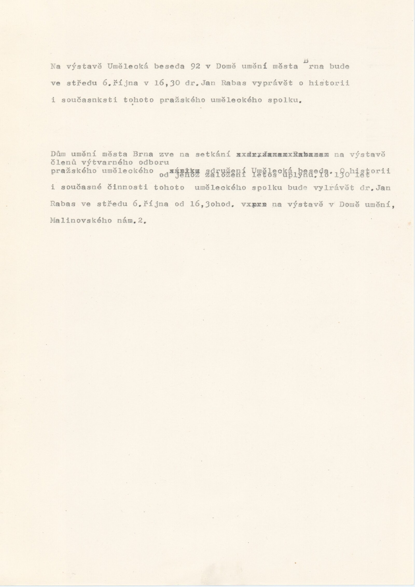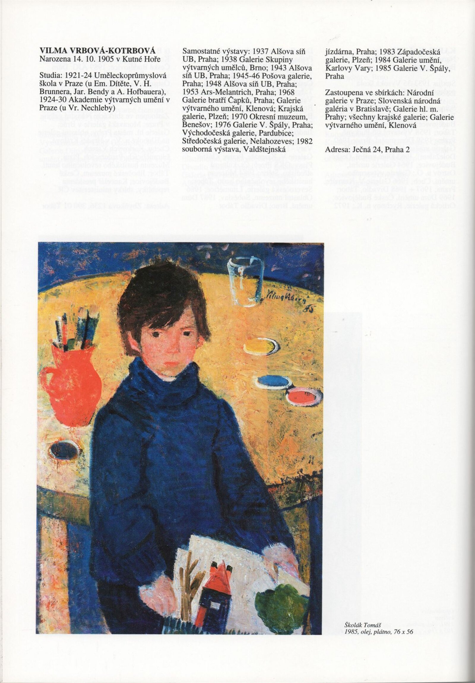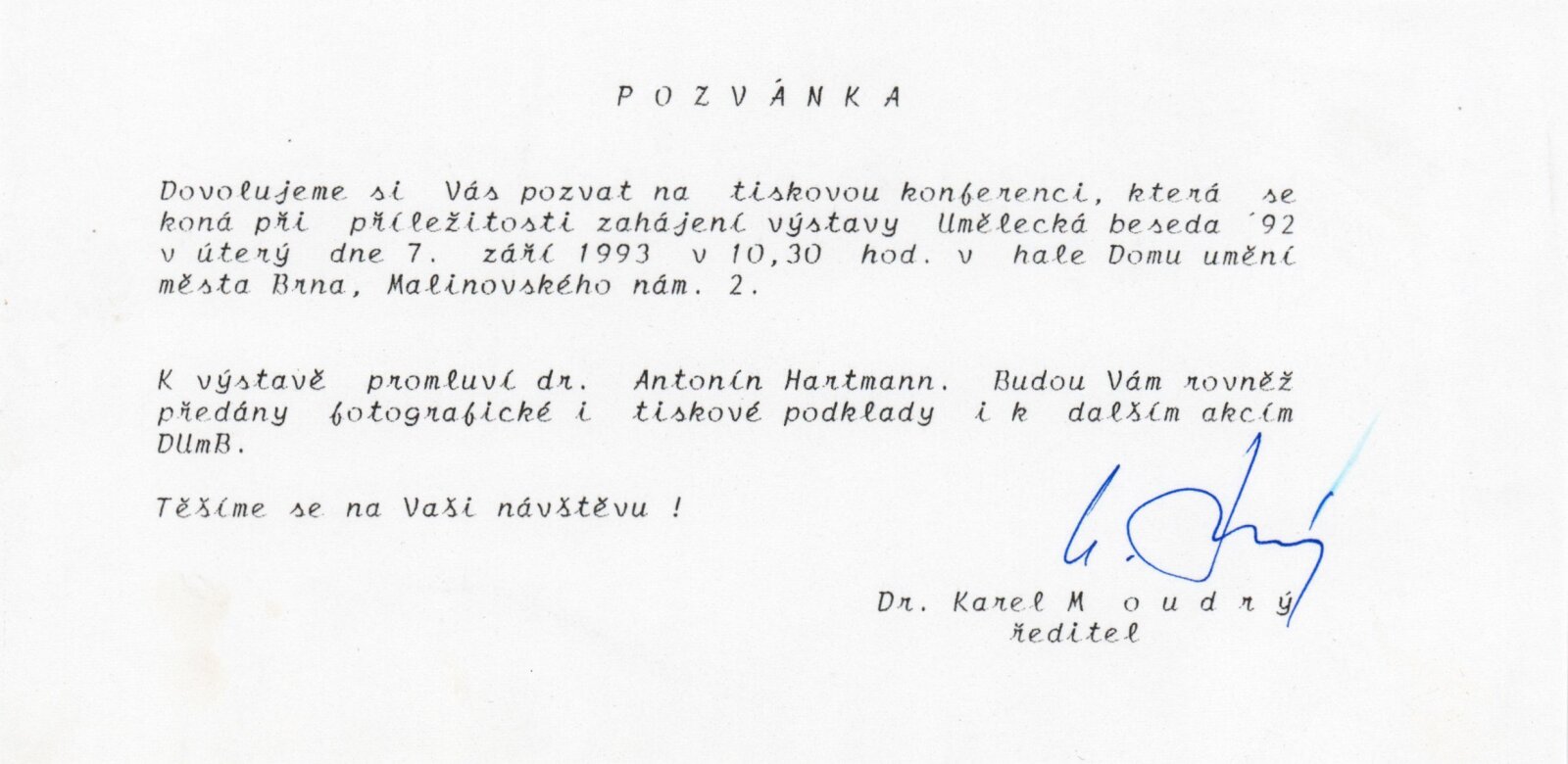 Umělecká beseda 1992: Dům umění města Brna 7. 9. – 10. 10. 1993. Převzatý katalog Umělecká beseda 1. výstava Výtvarného odboru Umělecké besedy po obnovení činnosti: Výstavní sály Mánesa, Praha 15. 12. 1992 – 31. 1. 1993. - Praha: Výtvarný odbor Umělecké besedy, - [46] s., obr.+ Rozmnožený seznam exponátů brněnské výstavy 4 s. Životní data vystavujících DU 952; MG