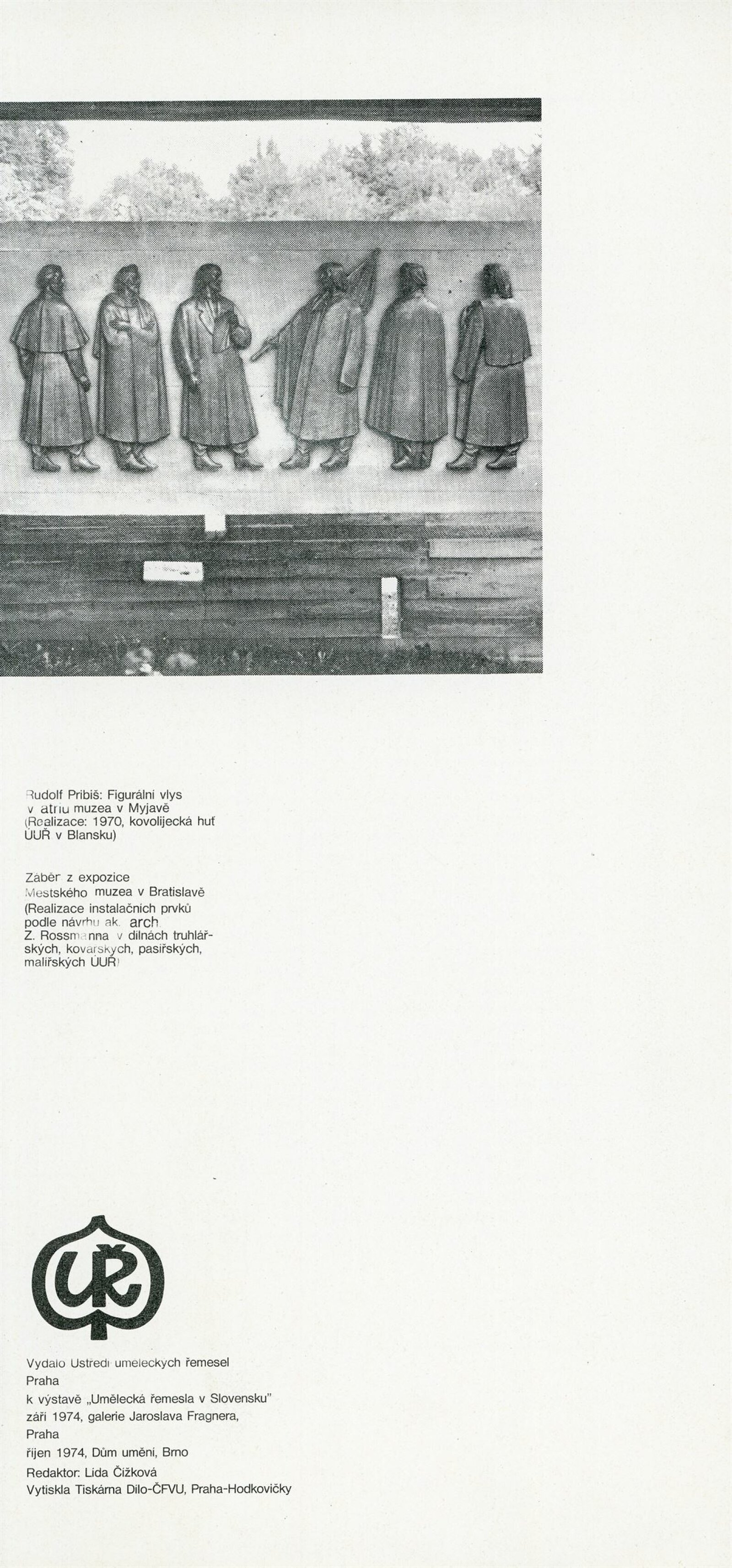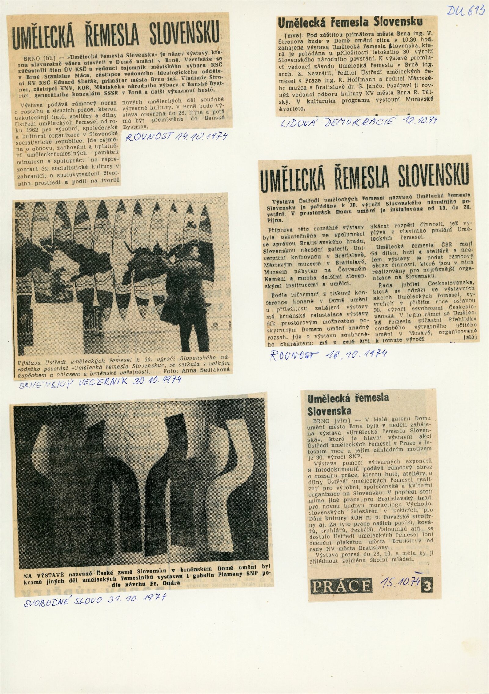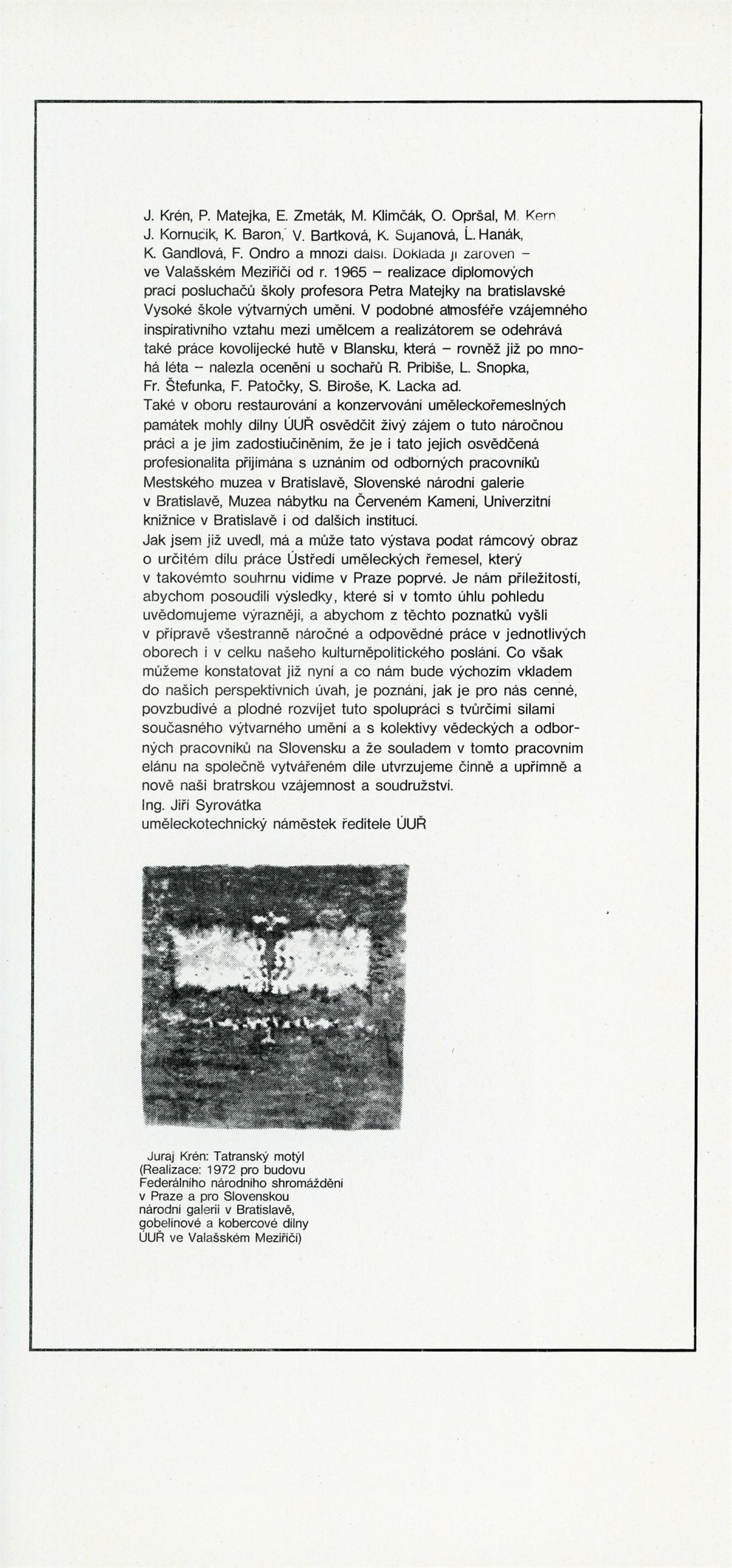 Umělecká řemesla na Slovensku. Dům umění, Brno, 13. 10. – 28. 10. 1974 / Text: Jiří Syrovátka. – Praha: Ústředí uměleckých řemesel, 1974. – skládačka 6 s., obr., DU 613. – MG