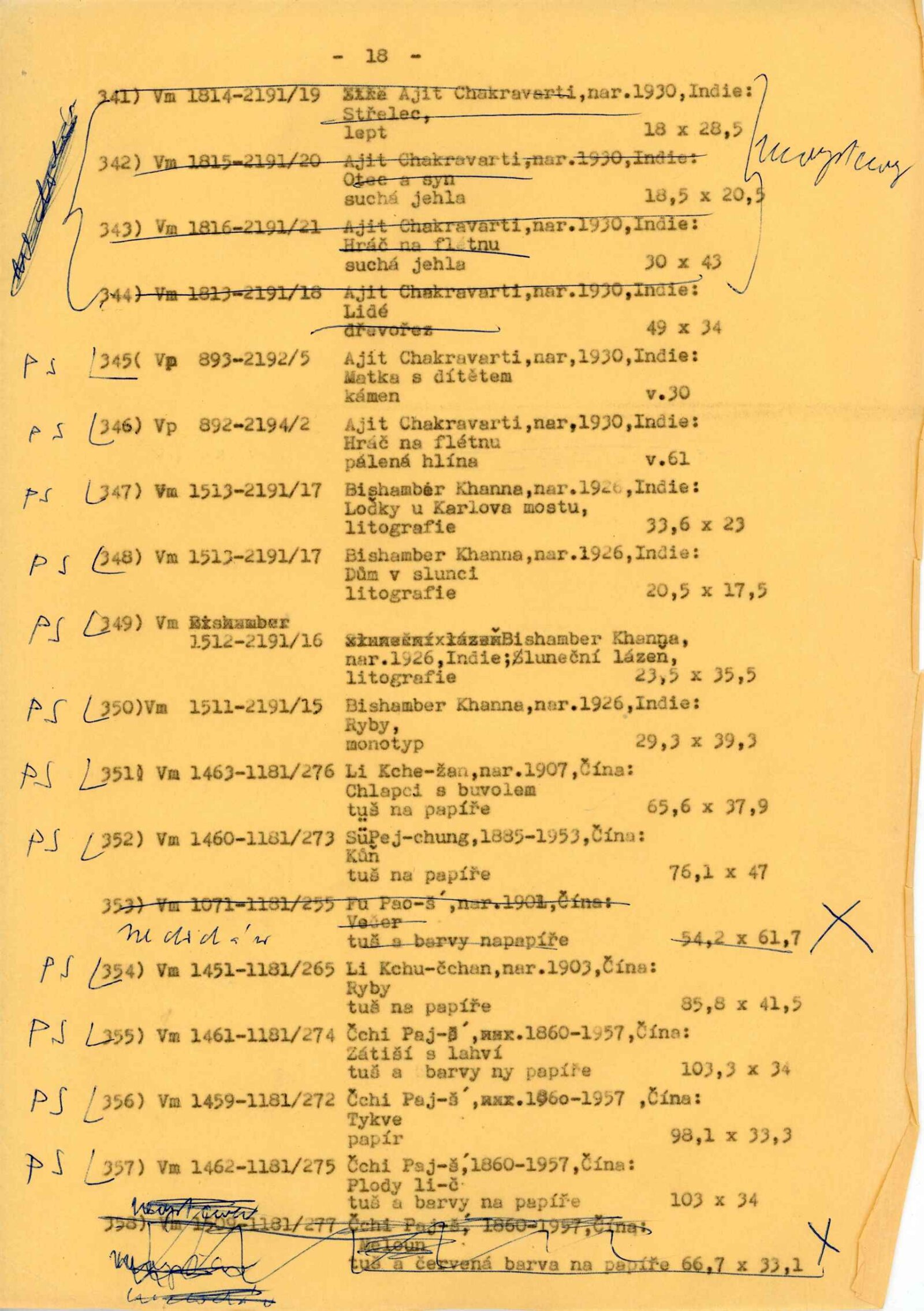 katalog, strojopis Verše psané na vodu, text katalogu, soupis exponátů s rozvržením pro instalaci výstavy, fotografie exponátů a instalace, žádost o povolení výstavy, korespondence (s Náprstkovým muzeem, poděkování řediteli NG J. Kroftovi), seznam pozvaných zemí, dokumentace o instalačním zařízení, reverzy, recenze v tisku