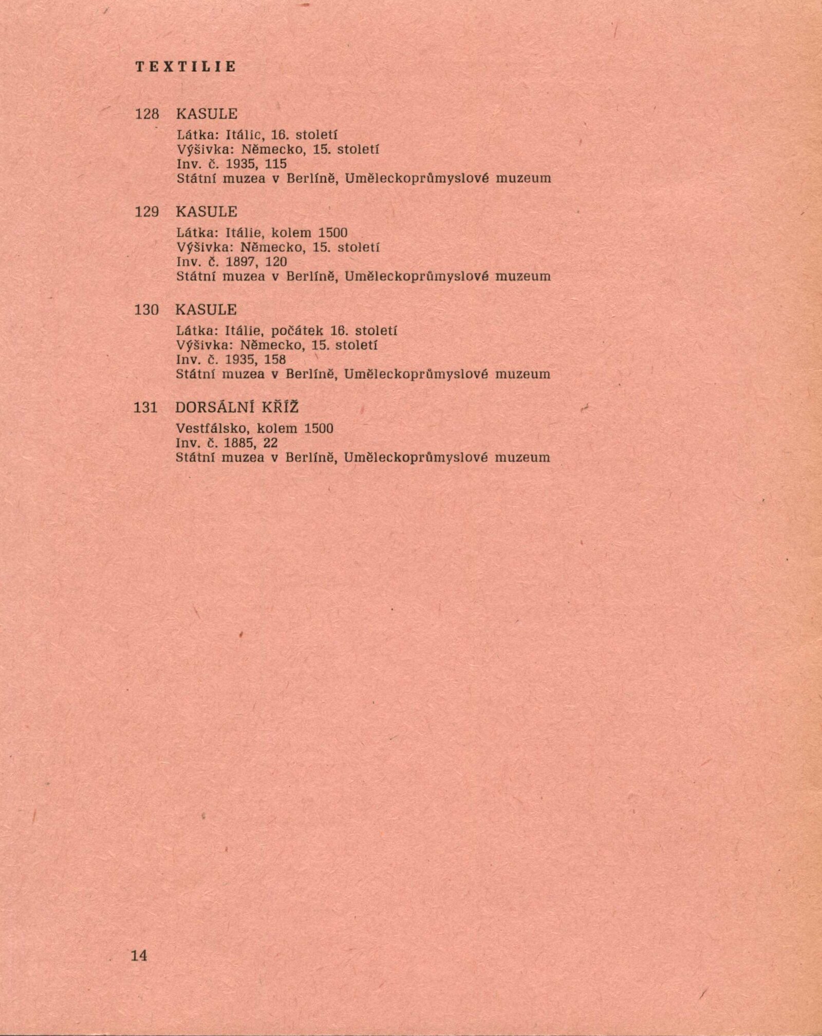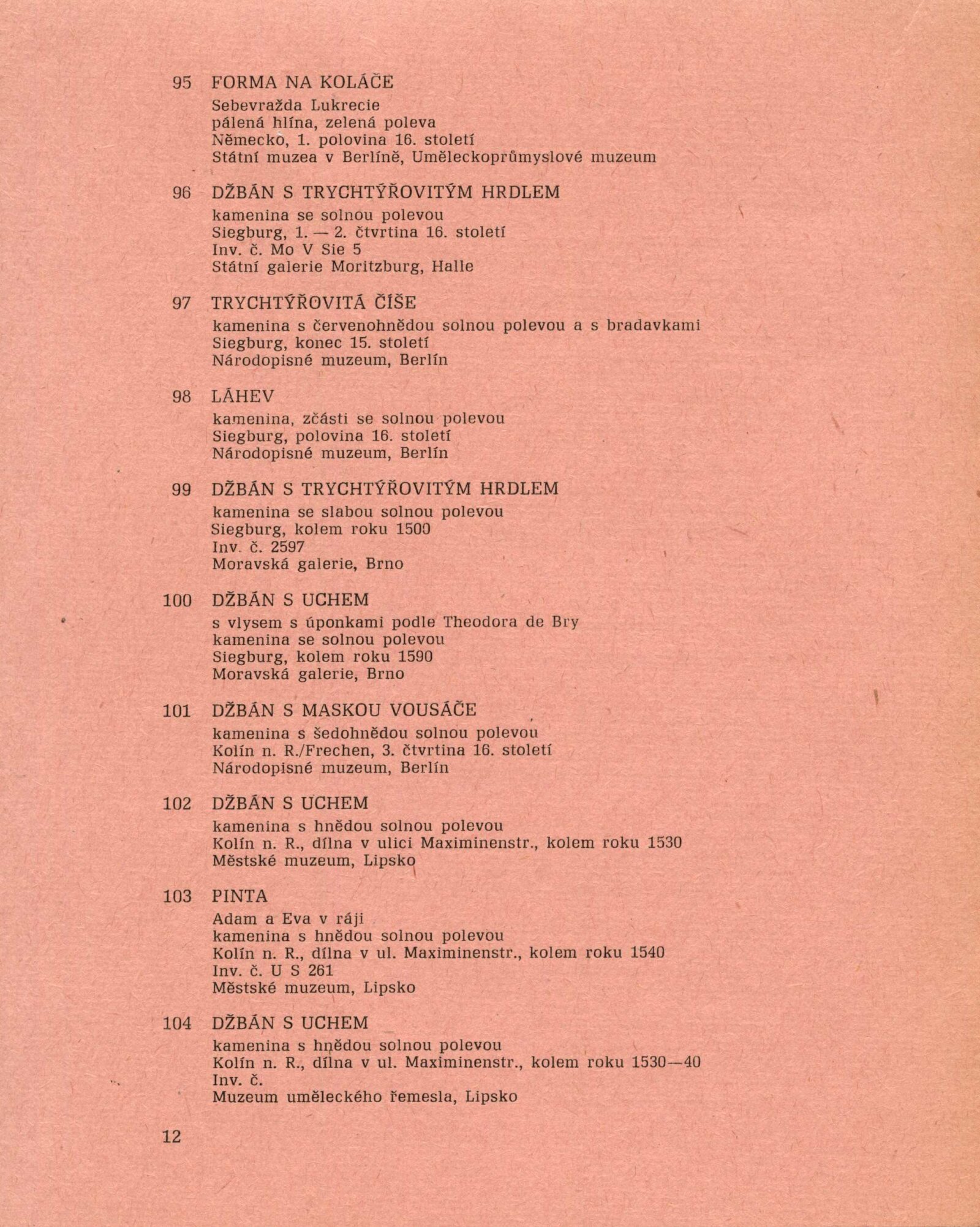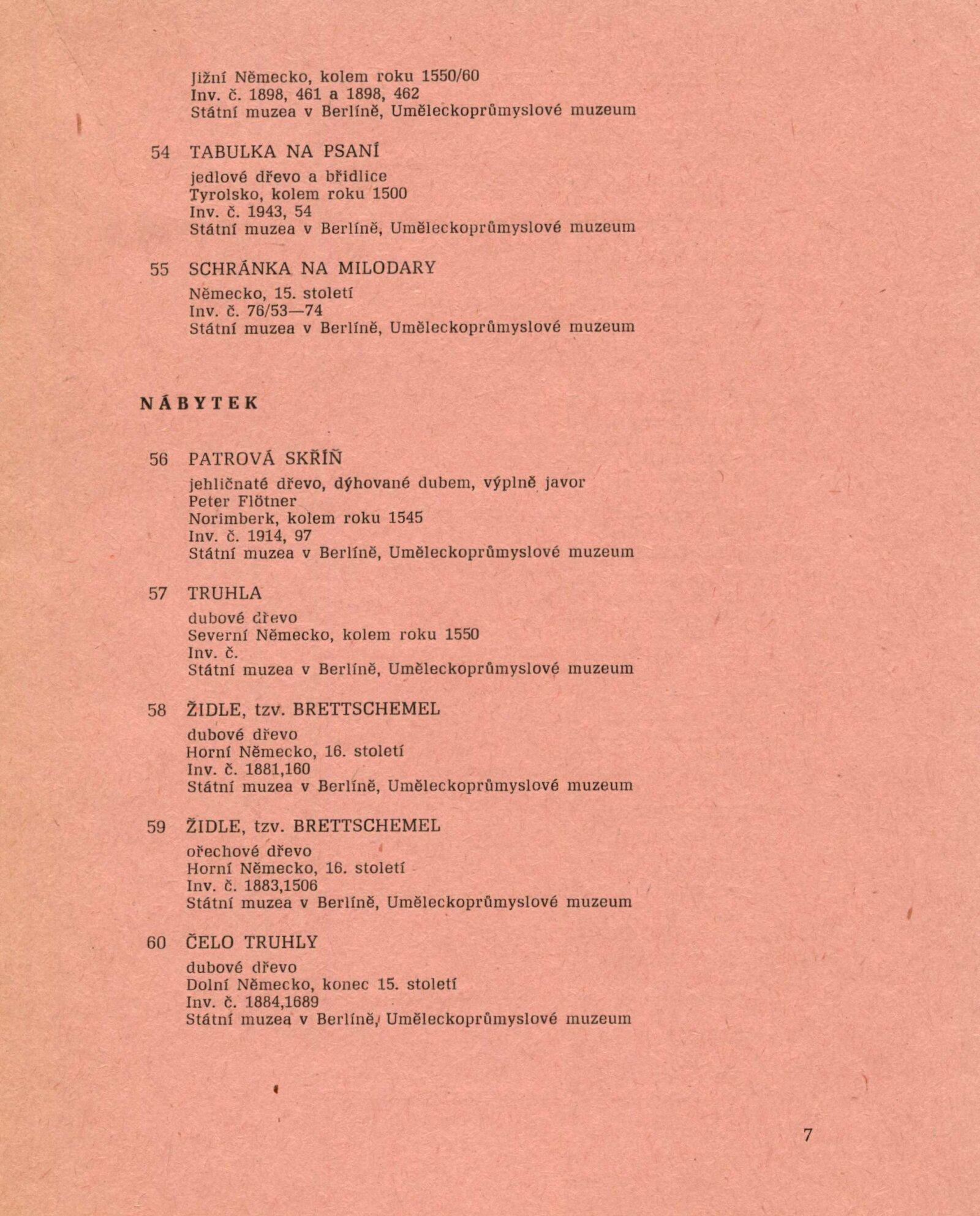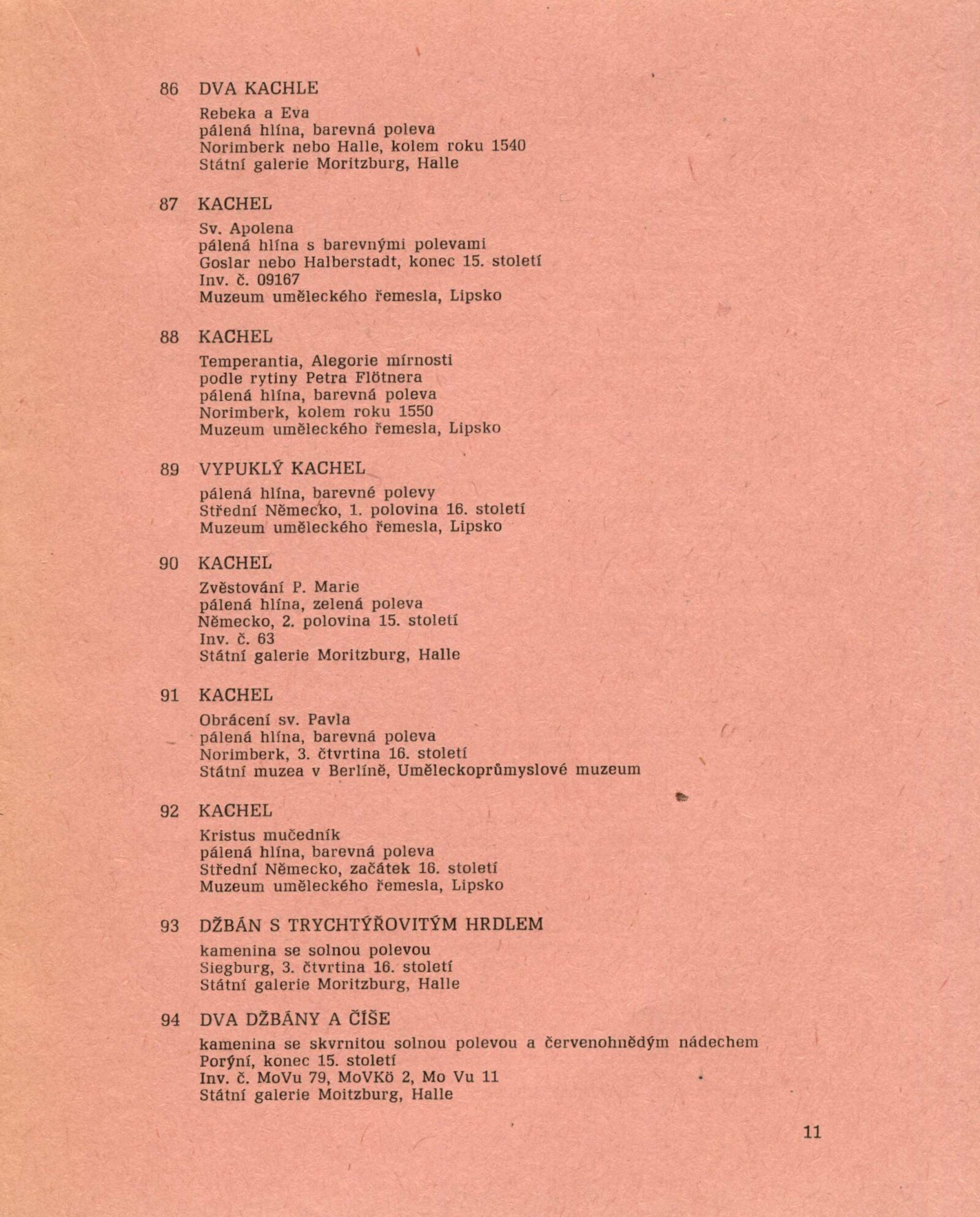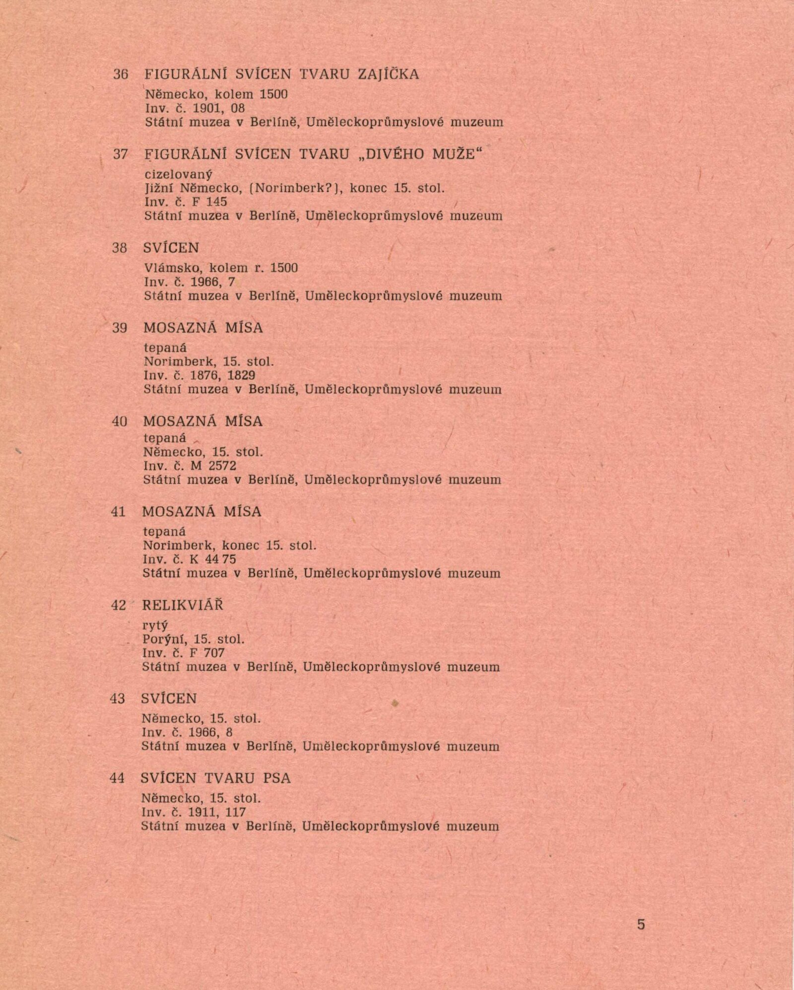 Umělecká řemesla doby Dürerovy a německé renesance: Dům umění / Dům pánů z Kunštátu, 10. 1. – 28. 1. 1973 / Převzatý katalog. Umělecké řemeslo doby Dürera a německé renesance. Výstava u příležitosti pětistého výročí narození Albrechta Dürera: Uměleckoprůmyslové muzeum, 1972 / Text: Günter Schade. – Praha: Uměleckoprůmyslové muzeum, 1972. – 11 s., 16 s., obr. příl., 1 l. bar. obr., seznam exponátů 14 s., DPK 526. – MG