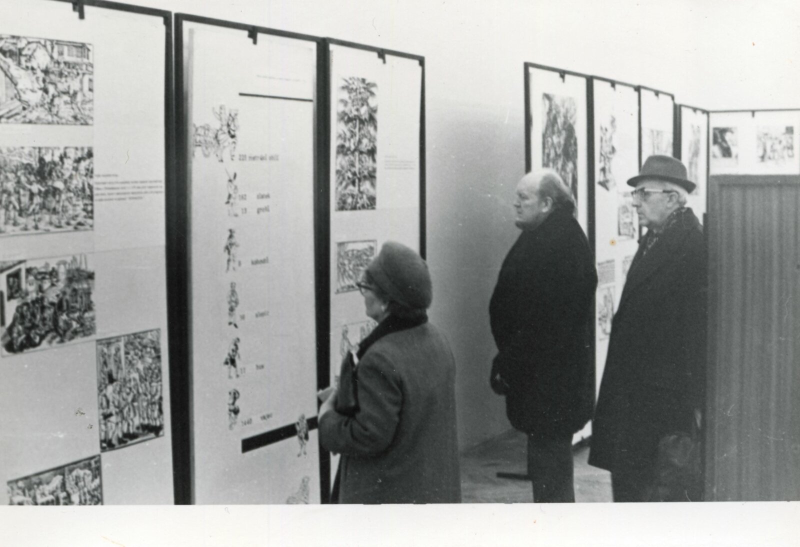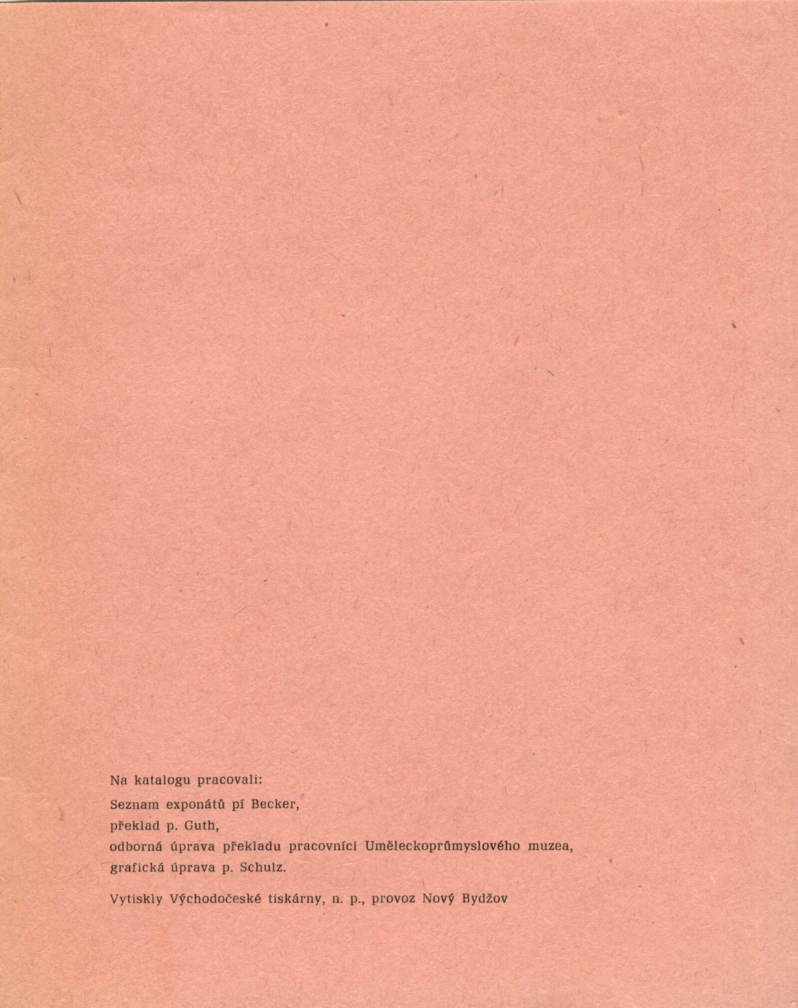 pozvánka, text katalogu, soupis vystavěných exponátů, fotografie z vernisáže, záznam o pobytu Beckerových, smlouva o předání výstavy, provozní korespondence, žádost o povolení výstavy, recenze v tisku