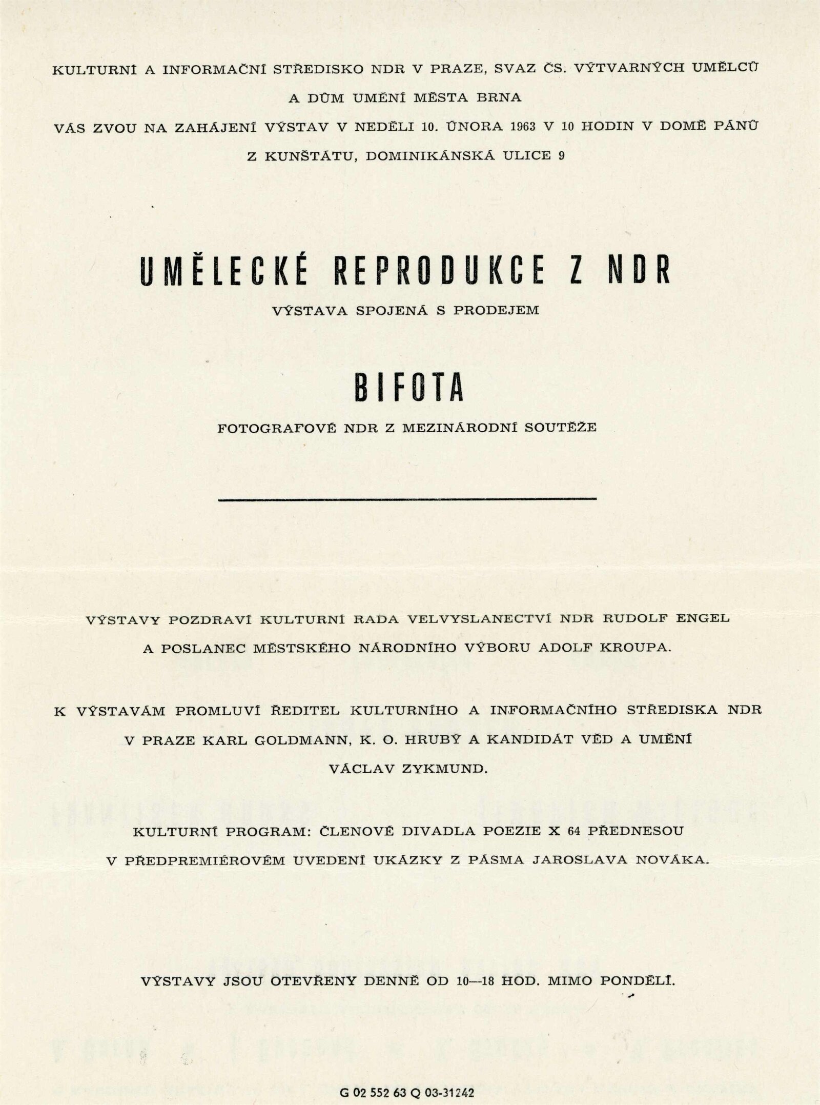 pozvánka, fotografie ze zahájení výstavy, korespondence (s Karlem Goldmannem – ředitelem Kulturního a informačního střediska NDR), dodací listy