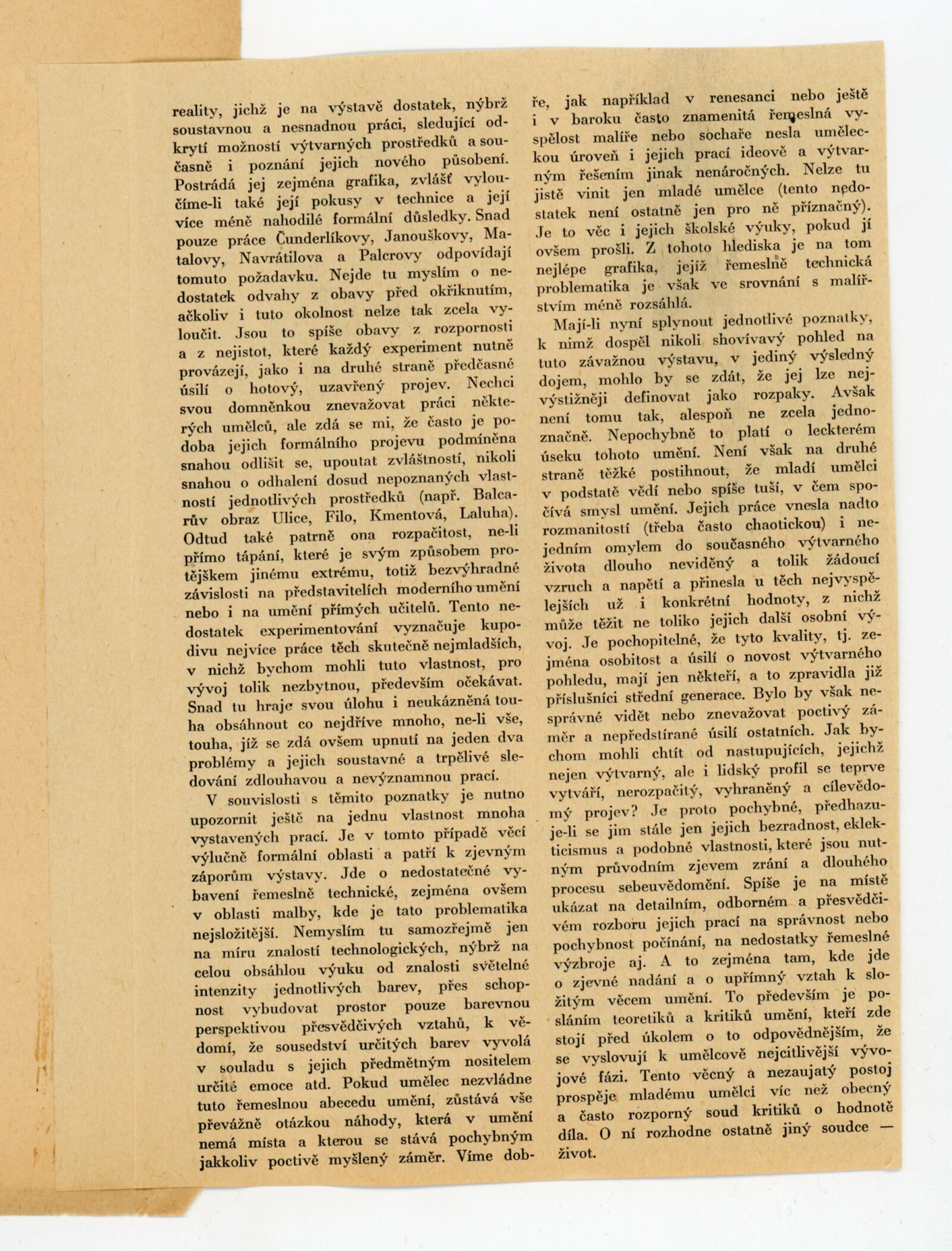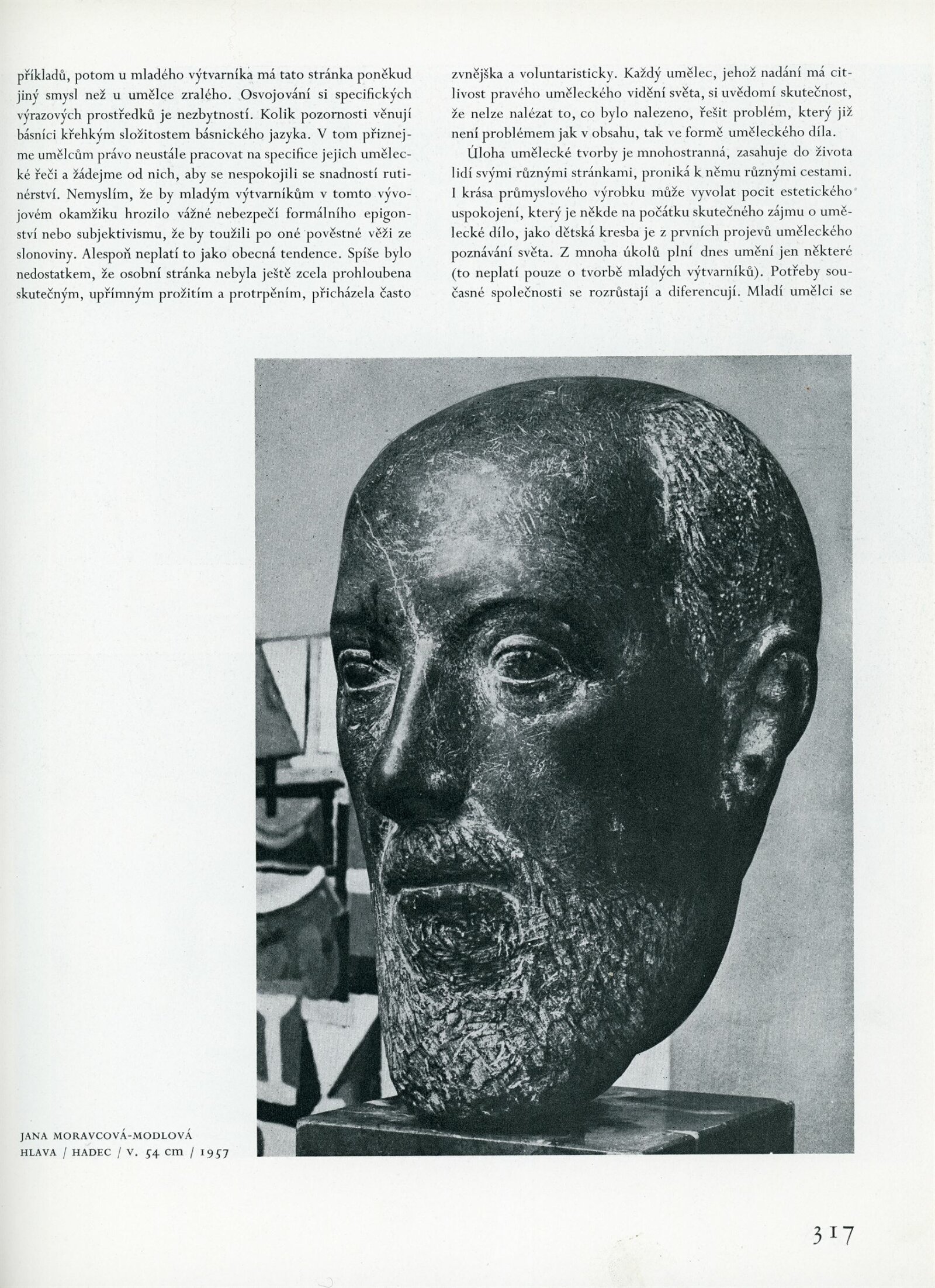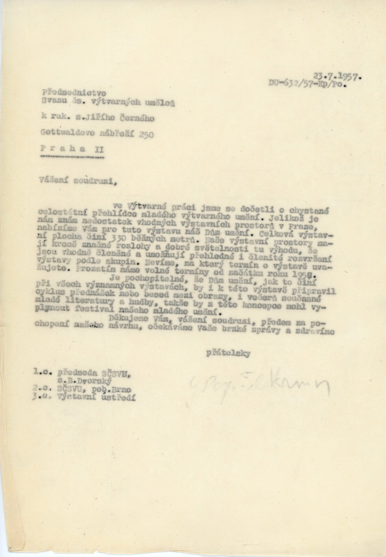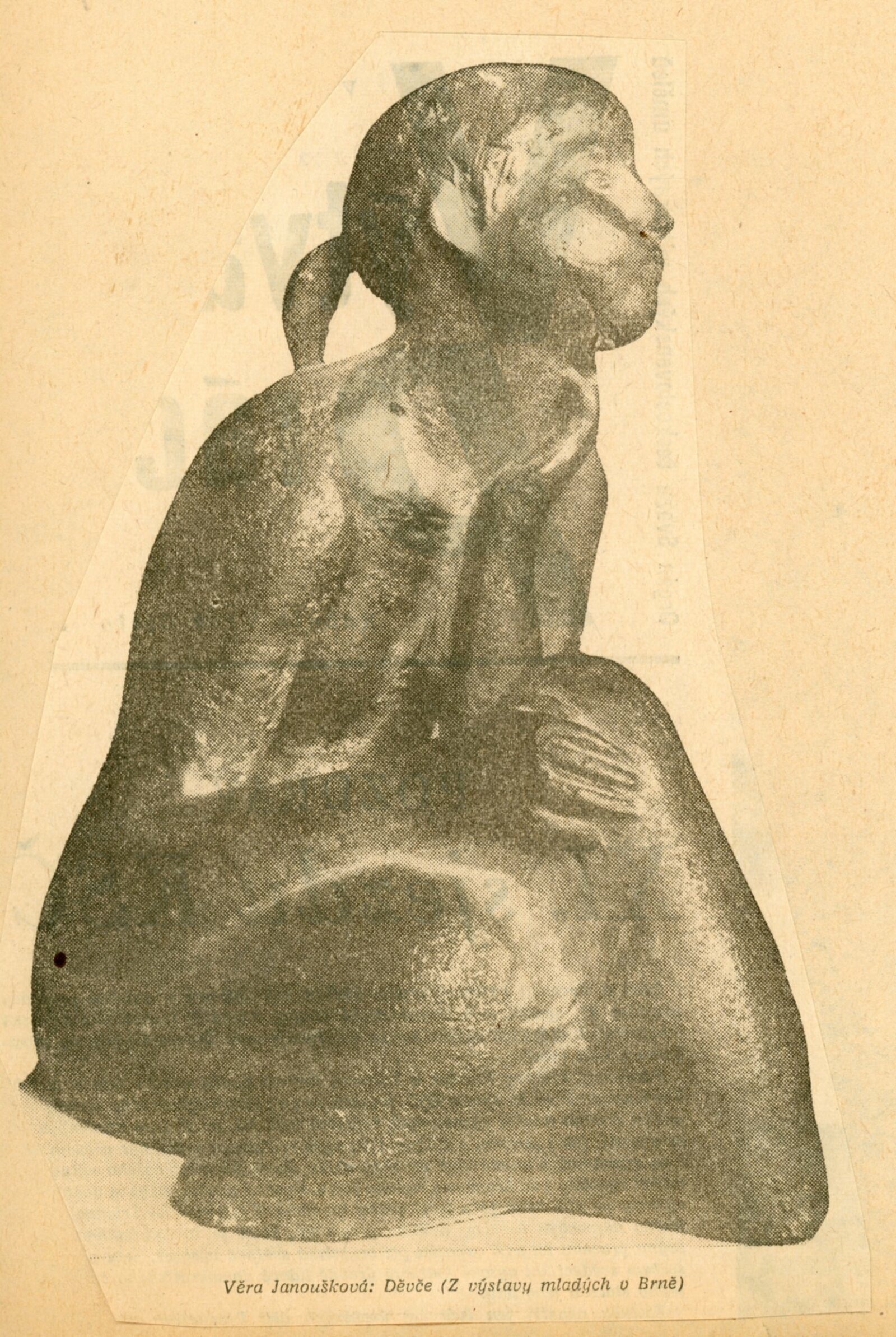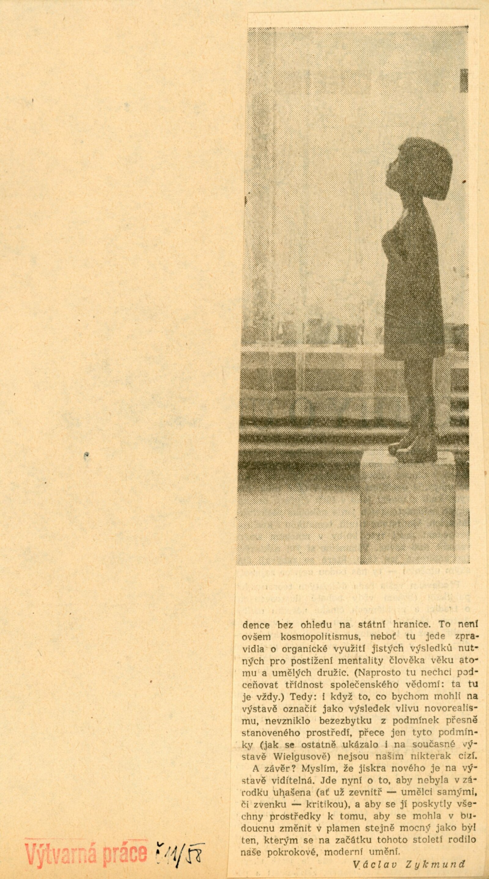 Umění mladých výtvarníků Československa. Obrazy a plastiky: Dům umění / Dům pánů z Poděbrad, I. část Obrazy a plastiky: Dům umění, 18. 5. – 29. 6. 1958, II. část Kresby a grafika: Dům pánů z Poděbrad, 25. 5. – 29. 6. 1958 / Společný katalog pro Brno a Prahu. Umění mladých výtvarníků Československa, 1958 / Text: Josef Císařovský. – Praha: Ústřední výbor ČSM, 1958. – 42 s., DU 310, DPK 6. – MZK; UPM
