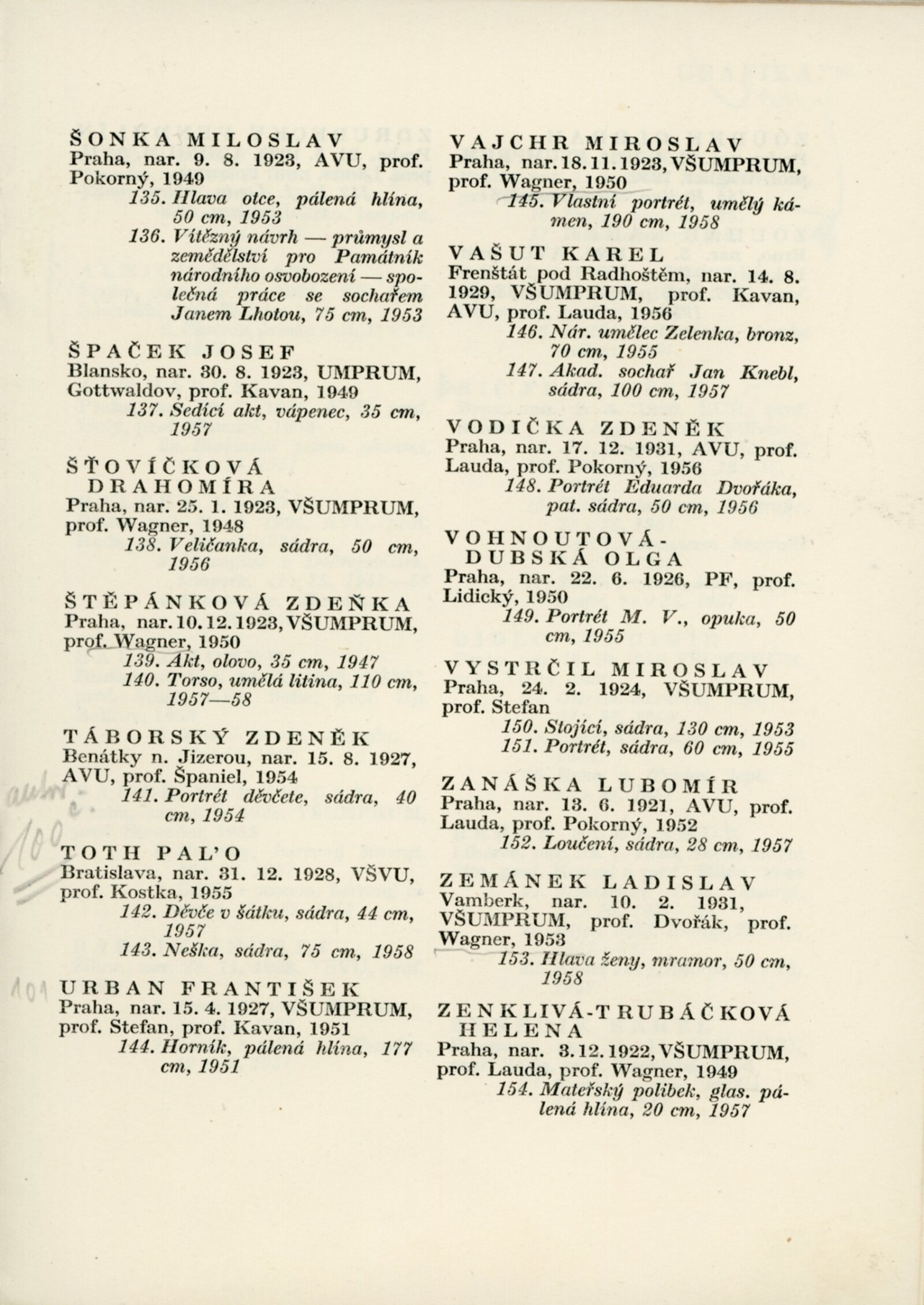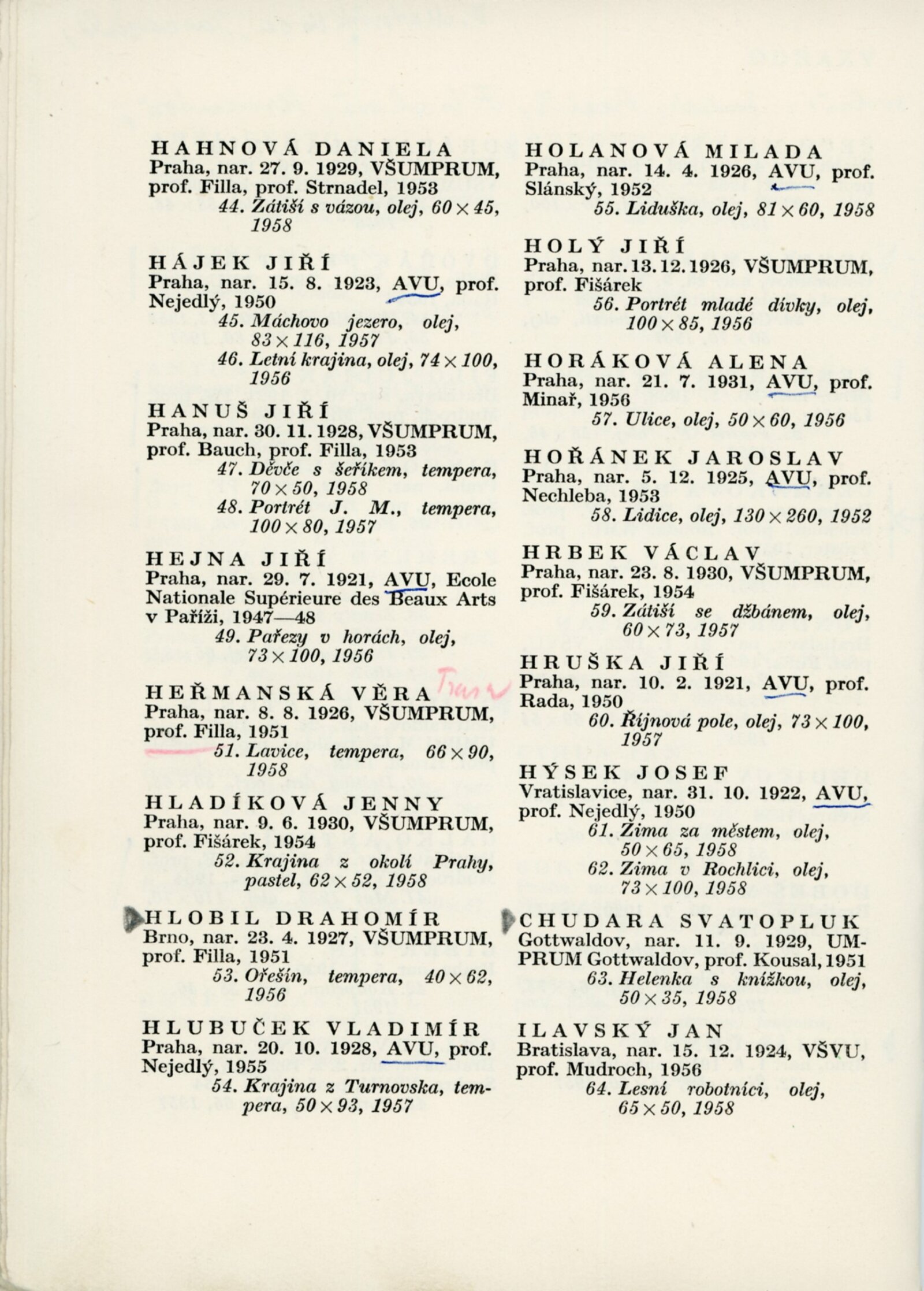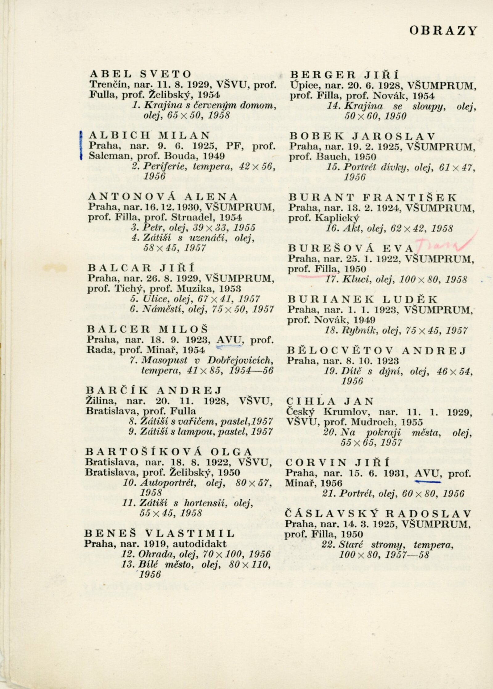 Svetozár Abel, Arno Quido Adamec, Milan Albich, Jaroslav Alt, Alena Antonská, Vojtěch Baďura, Jozef Baláž, Jiří Balcar, Miloš Balcer, Theodor Baník, Andrej Barčík, Igor Bartfaj, Rek Bartoš, Olga Bartošíková, Jana Bartošová-Laštovková, Vladislav Bauer, Věra Bejrová-Růžičková, Karel Beneš, Vlastimil Beneš, Jiří Berger, Vlastimil Berger, František Bič, Vladimír Bidlo, Alexandr Beran, Karel Benedikt, Václav Beránek, Jiří Bíma, Jaroslav Bobek, Svatoslav Böhm, Adolf Born, František Burant, Eva Burešová, Luděk Burianek, Andrej Bělocvětov, Jiří Bradáček, Ladislav Branč, Josef Bravenec, Zdeněk Brdlík, Božena Bruderhansová, Květoslav Bubeník, Zdeněk Budínský, Josef Bulant, František Burant, Eva Burešová, Jitka Buňatová, Otto Cienciala, Jan Cihla, Jiří Corvin, Stanislav Čáp, Vlasta Čančíková, Radoslav Čáslavský, Miloš Čech, lga Čechová, Mojmír Čevela, František Čermák, Běla Čermáková, Stanislava Červenková, Jarmila Čihánková, Marian Čunderlík, Anton Čutek, Olga Daňková, Drahomíra Dařenová, Hugo Demartini, Irena Dědičová, Václav Dlouhý, Milan Dobeš, Čeněk Dobiáš, Vladimír Doležal, Věra Doupníková, Jaroslav Drahokoupil, Oldřich Drahotušský, Vladimír Drápal, R. Dubravec, Rudolf Ducháč, František Dvořák, Ljuba Durďáková, Olga Fejková-Zelinková, Alina Ferdinandyová, Julian Filo, Alena Finková, František Forejt, Vladimír Fortin, Richard Fremund, Václav Frýdecký, Josef Gabánek, Vladislav Gajda, Antonín Gajdušek, Antonín Galko, Anna Galková, Jan Gibek, Aleš Grim, Milan Grygarm, Květa Grygarová, Jiří Hadlač, Daniela Hahnová, Jiří Hájek, Vladimír Hájek, Jiří Hanuš, Jan Hala, Břetislav Hanuš, Jiří Hanzálek, Stanislav Hanzík, Oldřich Hanzl, Marie Havelková-Valentová, Jiří Hejna, Miroslav Hejný, Věra Heřmanská, Květoslav Hísek, Jan Hladík, Jenny Hladíková, Václav Hlavatý, Drahomír Hlobil, Vladimír Hlubuček, Josef Hluchý, Miloslav Hobr, Milada Holanová, Jiří Holý, Alena Honcová, Alena Horáková, Vladimír Hornyak, Jaroslav Hořánek, Bedřich Housa, Juraj Hovorka, Václav Hrbek, Jiří Hruška, Karel Hruška, Věnceslava Hrušková, Otakar Hudeček, Karel Hyliš, Josef Hýsek, Jiří Chadima, Dalibor Chatrný, František Chmelař, Ladislav Chochole, Zdeněk Chotěnovský, Miloslav Chlupáč, Svatopluk Chudara, Jaroslav Chudomel, Jan Ilavský, Ludmila Jamníková, Marie Jančová, Jiří Janeček, František Janula, Michal Jakabčič, Vladimír Janoušek, Věra Janoušková, Vladimír Jarcovják, Oldřich Jelínek, Božena Jelínková, Miroslav Jemelka, Jiří Jílek, Josef Jíra, Miroslav Jirava, Oldřich Jirka, Vladimír Joachimsthal, Jiří John, Břetislav Jüngling, František Jurík, Václav Kabát, Dmitrij Kadrnožka, Zdeňka Kadrnožková-Turková, Čestmír Kafka, Jana Kalinová, Jiří Kalousek, Petr Kameníček, Věra Kanczucká-Tošenovská, Arnošt Karásek, Olga Karlíková, Ladislav Karoušek, Dagmar Kašparová, Tibor Kavecký, Jaroslav Kellar, Jiří Kemr, Václav Kiml, Osvald Klapper, Jaroslav Klápště, Josef Klimeš, Miroslav Klomínek, Sibyla Klumparová, Eva Kmentová-Zoubková, Bohuslav Knobloch, Milan Knobloch, Jiří Kodym, Jindřich Kohout, Miroslav Kolář, Radomír Kolář, Zdeněk Kolářský, Stanislav Kolíbal, Karel Kolumek, Jaroslav Koliha, Jitka Kolínská, Vladimír Komárek, Vladimír Kompánek, Pavel Kopáček, Bohdan Kopecký, Jaroslav Kopecký, Jiří Korec, Ludvík Korkoš, Slavoj Kovařík, Věra Kraicová, Ladislav Krám, Josef Krejčiřík, Rudolf Krivoš, Jaroslav Krouz, Karel Kryl, Eva Křížová-Brýdová, Dagmar Křováková, Jánuš Kubíček, Jan Kubíček, Josef Kulička, Jan Kulich, Radoslav Kutra, Václav Kyselka, Milan Lahoda, Milan Laluha, Bohuslav Lamač, Zdeňka Landová, Jiří Lang, Jan Lebiš, Josef Lehoučka, Jiří Lendr, Marie Leotovyčová, Jan Lhota, Zdeněk Linka, Libuše Loskotová, Ivan Lošák, Miroslav Ludvíček, Josef Luňák, Zdeněk Majzner, Radim Malát, Karel Malich, Jiří Malý, Miroslav Marček, Jindřich Marek, Erna Masarovičová, Bohumír Matal, Bohumil Matějíček, Dalibor Matouš, Josef Meduna, Milan Mejstřík, Josef Menš, Zdeněk Menšík, Václav Menšík, Věra Mervartová, Anastazie Miertušová, Jiří Michálek, Olga Michálková-Pavelková, Bohumil Míra, Miroslav Mirkovič, Věra Mlezivová, Jana Moravcová-Modlová, Luboš Moravec, Jiří Morávek, Vladimír Moťovský, Jaroslava Mozerová, J. Mráčková, Jiří Mrázek, Daisy Mrázková, Jaroslav Mrva, Helena Müllerová-Bubeníková, Leopold Musil, Pavel Navrátil, Jan Neckař, František Nedvěd, Slavoj Nejdl, Miroslav Netík, Jiří Nikolovský-Pavlata, Jindřich Novák, Jiří Novák, Oldřich Oplt, František Pacík, Zdeněk Palcr, Miroslav Pangrác, Jaroslav Papoušek, Milan Paštéka, Josef Paleček, Karel Paták, Klara Pataki, Jiří Patera, František Patočka, Josef Pavlíček, František Pašek, Jarmila Pavlíčková, Josef Peca, Oldřich Peč, Miroslav Pečínka, František Peterka, Pavel Petráž, Otakar Petroš, Robert Piesen, Radomír Pilař, Stanislav Podhrázský, Dalibor Pokorný, Imrich Polakovič, Břetislav Polišenský, Přemysl Pospíšil, Miloš Pošar, Jiří Prádler, Vlasta Prachatická-Kolíbalová, Mojmír Preclík, Vladimír Preclík, Zdenka Preclíková-Fibichová, Otakar Procházka, Ladislav Pros, Miroslav Prošek, Ivan Racek, Jiří Rada, Ladislav Rada, Miroslav Rada, Vladimír Relich, Dan Richter, Eva Richterová-Hanušová, Vladimír Rocman, Přemysl Rolčík, Vladimír Románek, Zdena Roubalová, Zdeněk Roudnický, Aleš Rozehnal, V. B. Růžička, Jan Sedláček, Václav Sedláček, Dagmar Sedláčková, Zdeněk Sigmund, Ivo Sedlinský, Zbyněk Sekal, Lucie Schönfeldová, Karel Slabý-Kareš, Otakar Slavík, Oldřich Smutný, Jan Solovjev, Lubomír Schneider, Gabriela Schillerová, Zdeněk Skřivan, Ladislav Snopek, Emil Solařík, Jan Solov