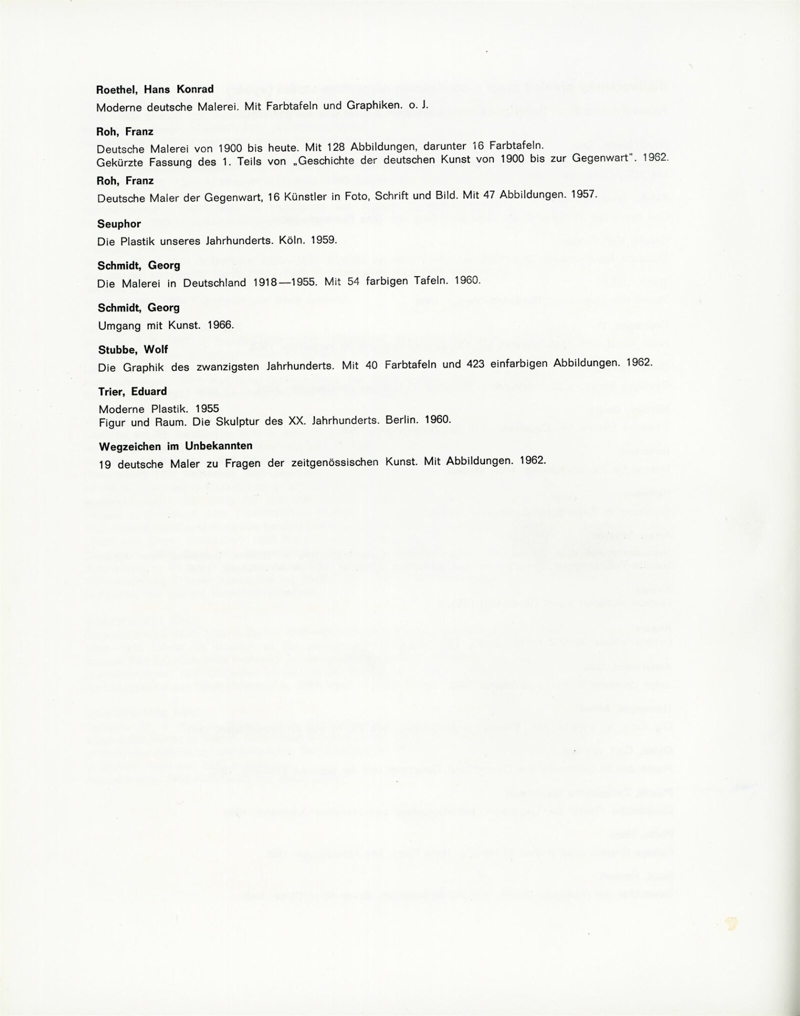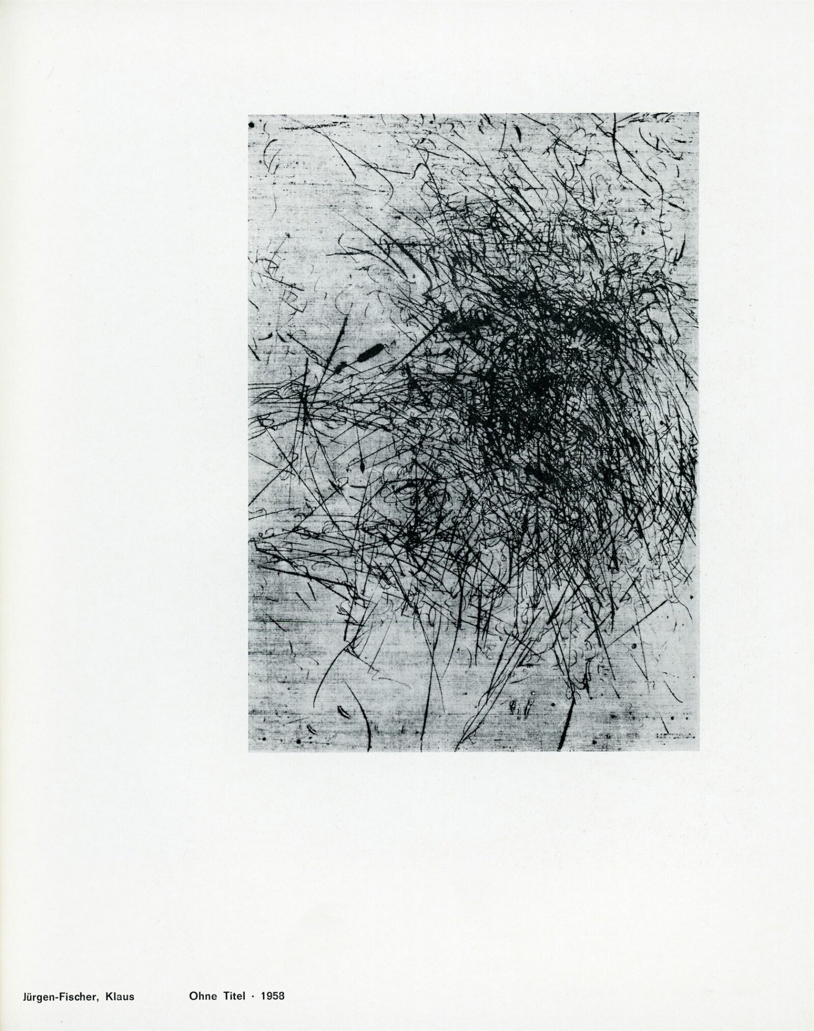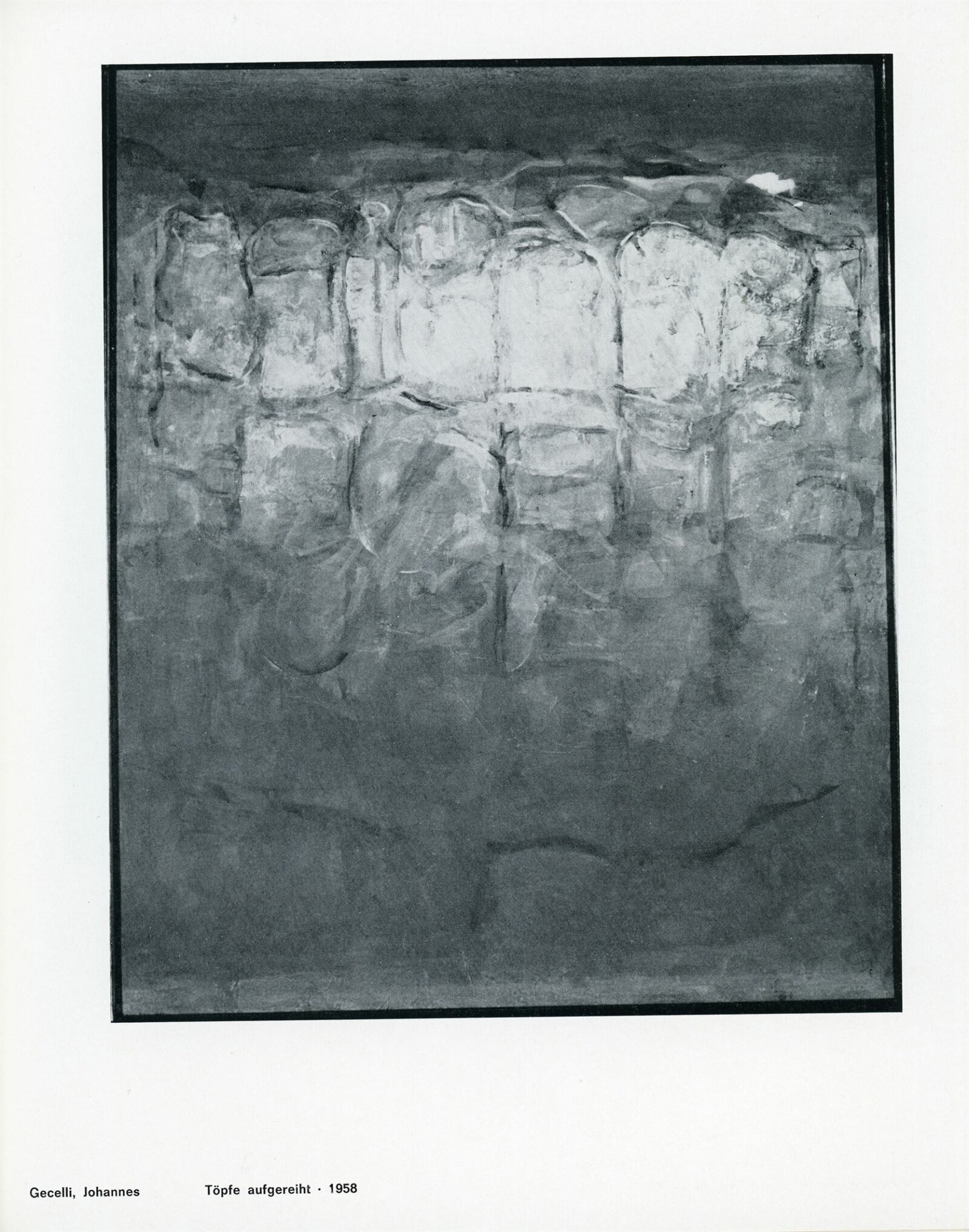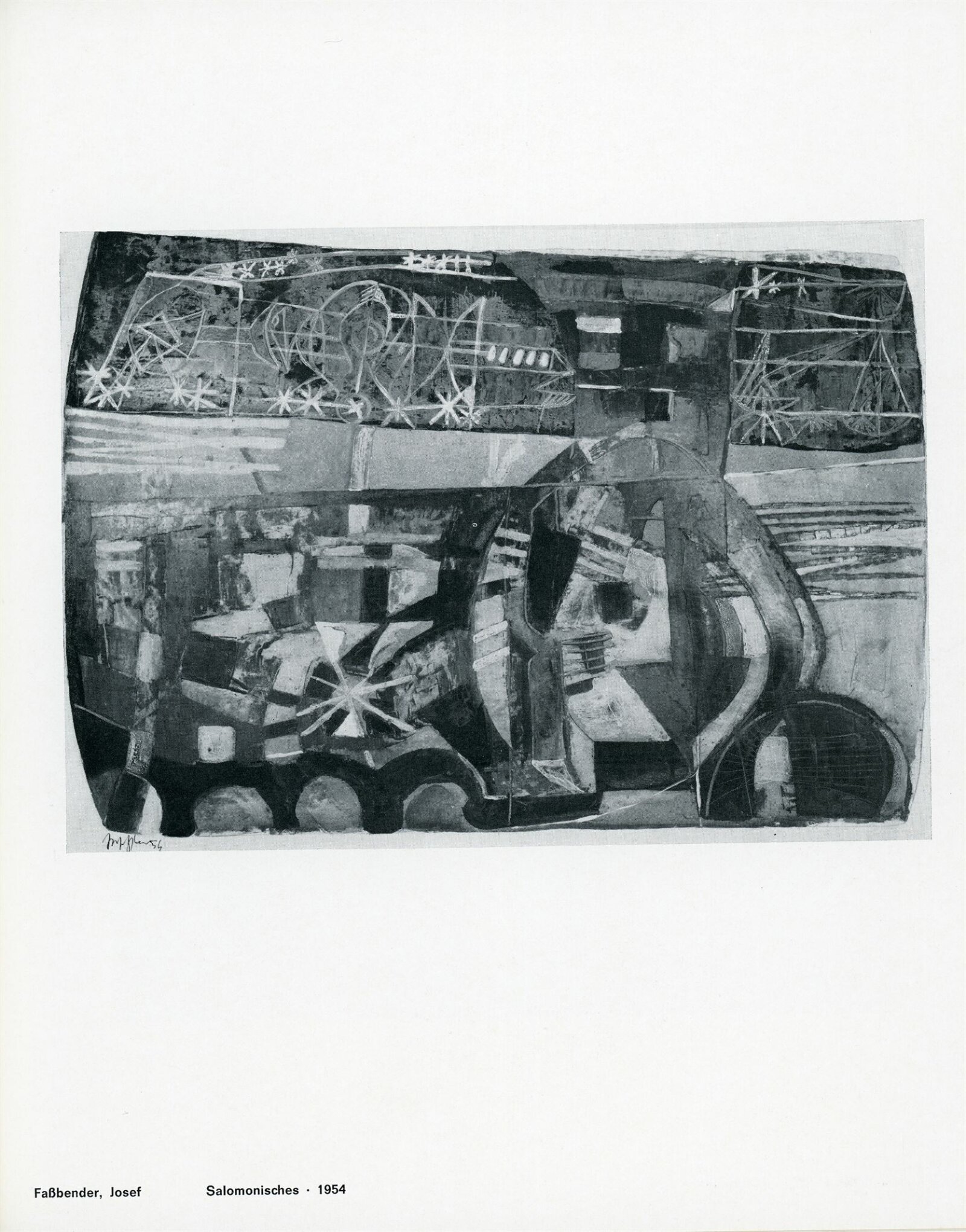 Antes Horst, Eduard Bargheer, Hans Baschang, Heinz Battke, Willi Baumeister, Rudolf Belling, Hubert Berke, Bernd Berner, Josef Beuys, Julius Bissier, Peter Brüning, Carl Buchheister, Wolff Buchholz, Emil Cimiotti, Karl Fred Dahmen, Gustav Deppe, Roland Dörfler, Günter Drebusch, Karl Ehlers, Joseph Fassbender, Lothar Fischer, Günter Fruhtrunk, Winfred Gaul, Johannes Geelli, Rupprecht Geiger, Werner Gilles, Raimund Girke, Karl-Otto Götz, Bruno Goller, Gerhard von Graevenitz, Hap Grieshaber, Thomas Grochowiak, Dieter Haack, Günter Haese, Otto Herbert Hajek, Erich Hauser, Peter Herkenrath, Ernst Hermanns, Jochen Hiltmann, Gerhard Hoehme, Oskar Holweck, Horst Janssen, Guido Jendritzko, Klaus Jürgen-Fischer, Horst-Egon Kalinowski, Herbert Kaufmann, Günter C. Kirchberger, Herbert Kitzel, Konrad Klapheck, Axel Knopp, Reinhold Köhler, Fritz Koenig, Harry Kramer, Norbert Kricke, Dieter Krieg, Rainer Küchenmeister, Jens Lausen, Arnold Leissler, Kaspar-Thomas Lenk, Alfred Lörcher, Wilhelm Loth, Konrad Lueg, Heinz Mack, Almir Mavignier, Friedrich Meckseper, Brigitte Meier-Denninghoff, Georg Meistermann, Ernst Wilhelm Nay, E. R. Nele (Bode), Richard Oelze, Bruno Pelz, Georg Karl Pfahler, Otto Piene, Hubertus von Pilgrim, Heimrad Prem, Lothar Quinte, Josua Reichert, Werner Reichhold, Gerhard Richter, Ferdinand Gunther, Otto Ritschl, Emy Roeder, Rolf Sackenheim, Armin Sandig, Gustav Seitz, Sonderborg (K. R. Hoffmann), Edwin Scharff, Hans-Jürgen Schlieker, Michael Schoenholtz, Rudolf Schoofs, Johannes Schreiter, Bernard Schultze, Emil Schumacher, Toni Stadler, Walter Stöhrer, Norbert Tadeusz, Hans Thiemann, Heinz Thökes, Günter Uecker, Bernd Völkle, Wolf Vostell, Hans Werdehausen, Werthmann Friedrich, Wilhelm Wessel, Irmgart Wessel-Zumloch, Fritz Winter, Paul Wunderlich, Mac Zimmermann