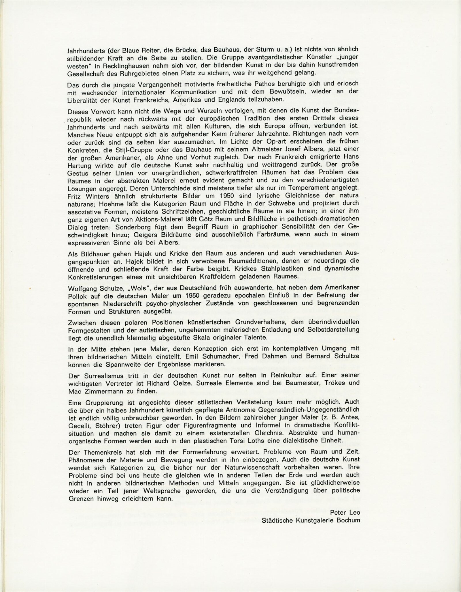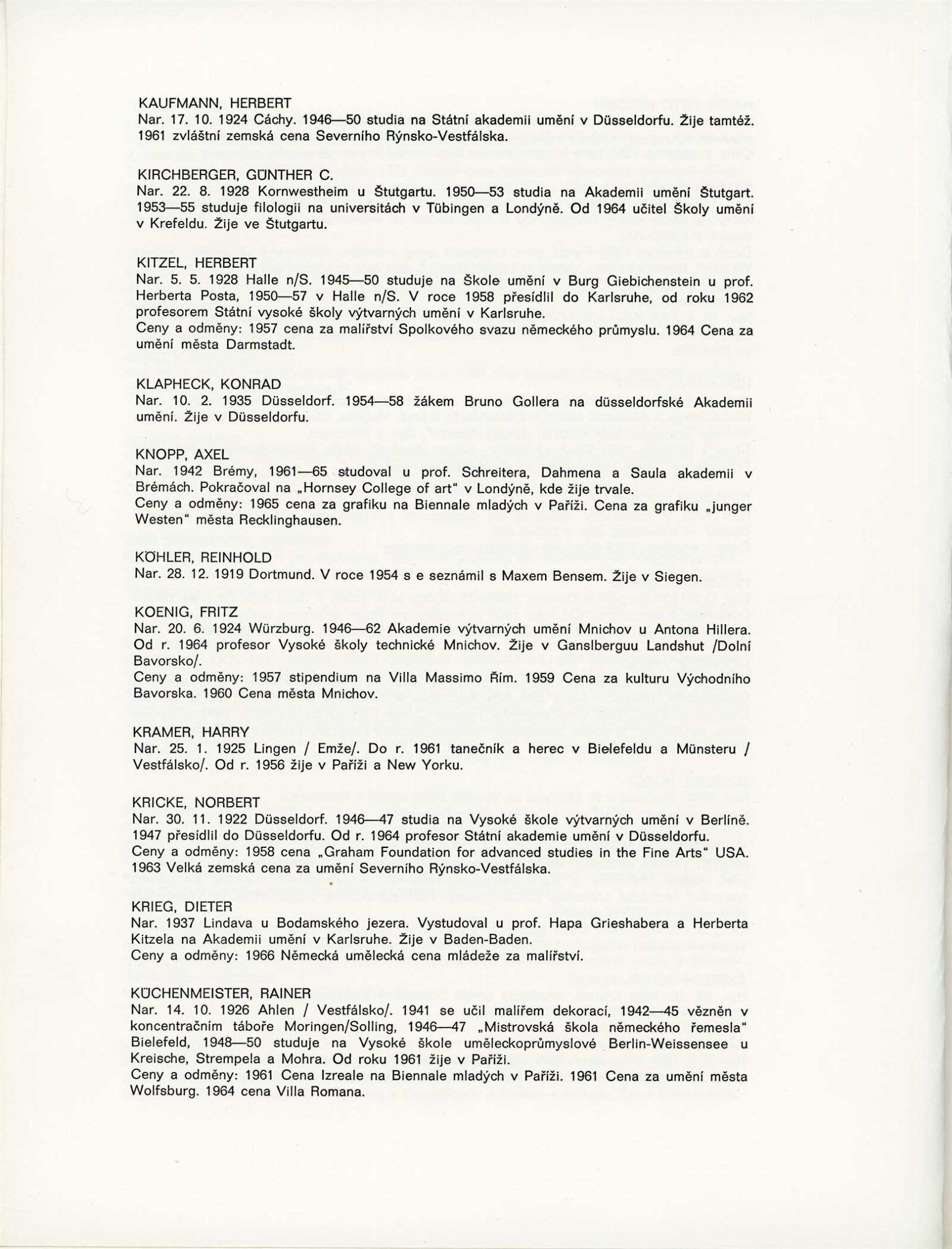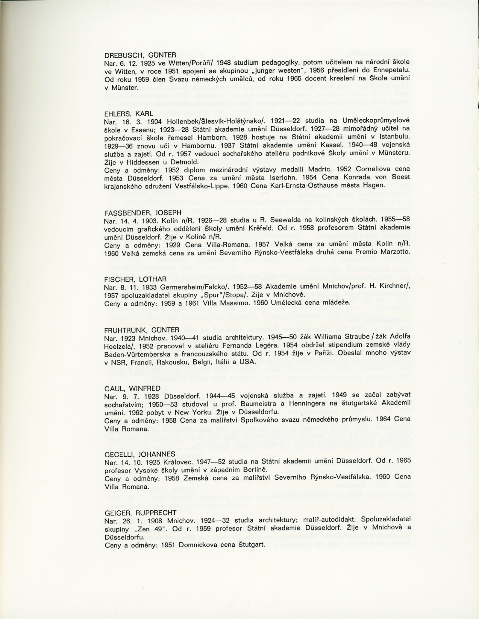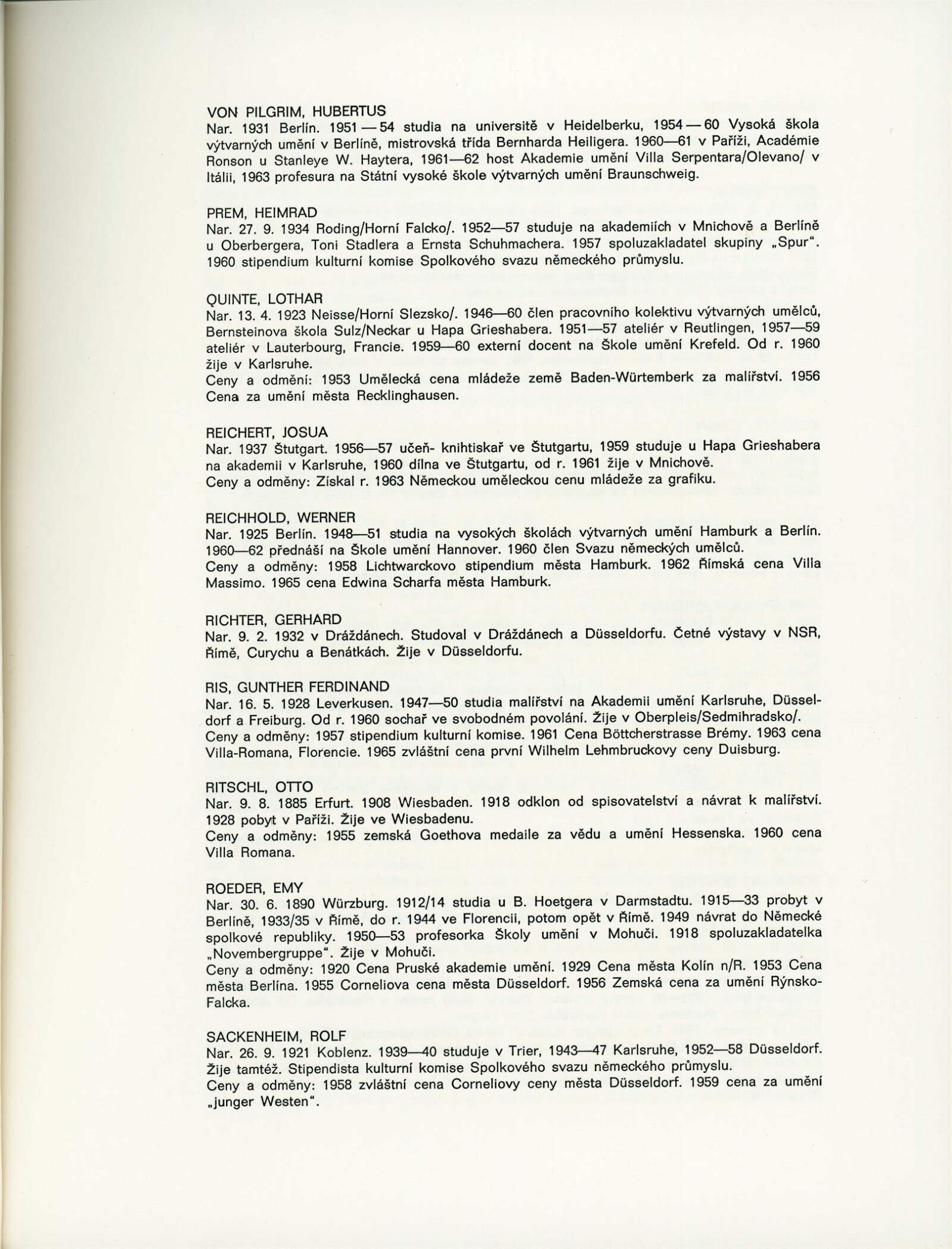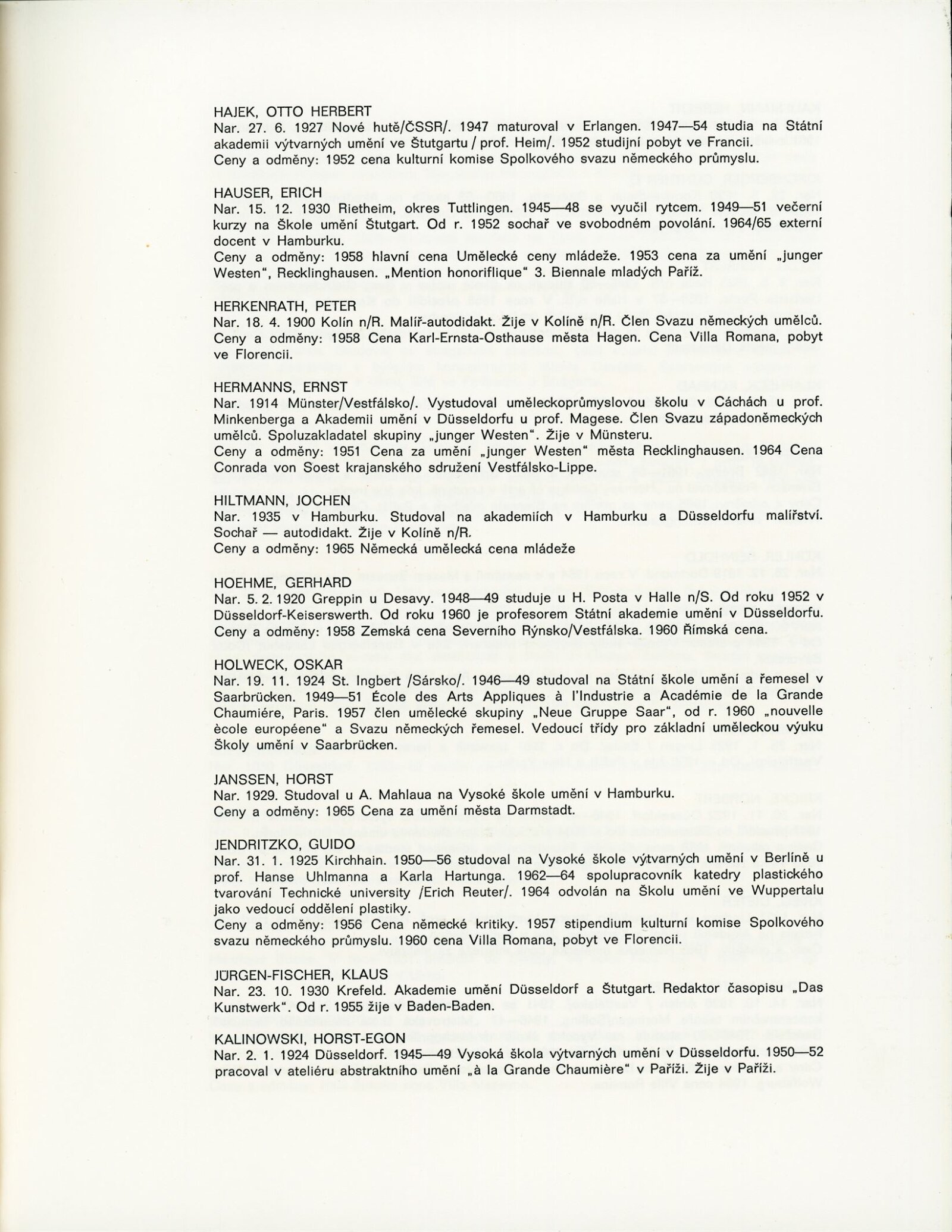 Umění Německé spolkové republiky. Kunst der Bundesrepublik Deutschland: Dům umění, 1. patro, 30. 3. – 30. 4. 1967 / Text: Petr Leo. – Bochum: Städtische Kunstgalerie, 1967. – 42 s., 92 s. obr. příl., DU 480