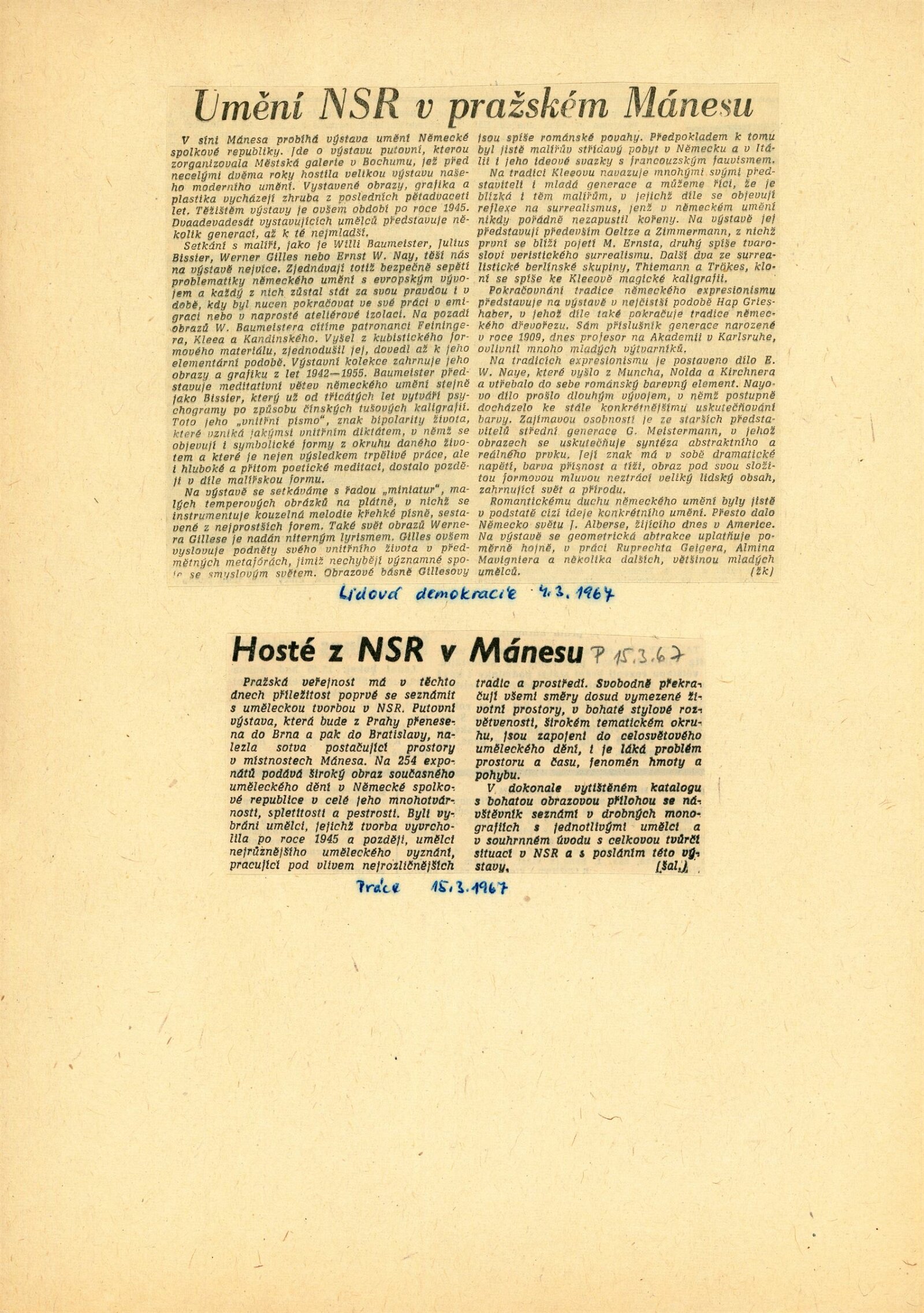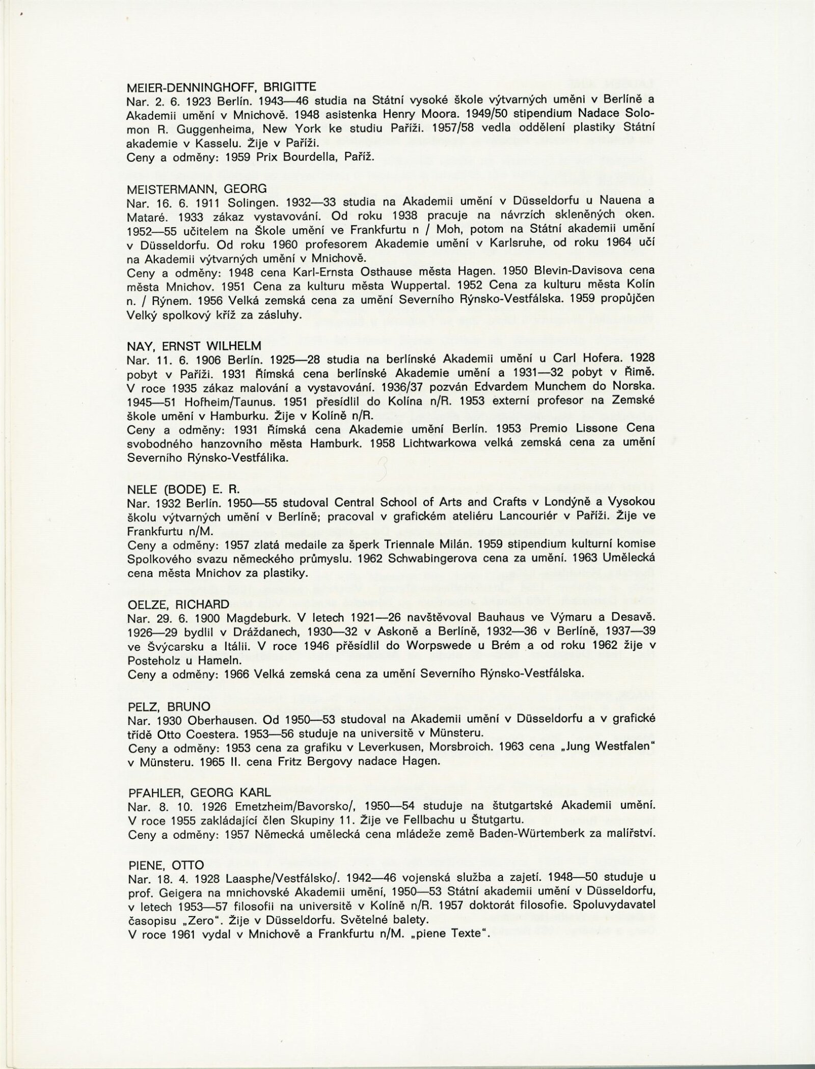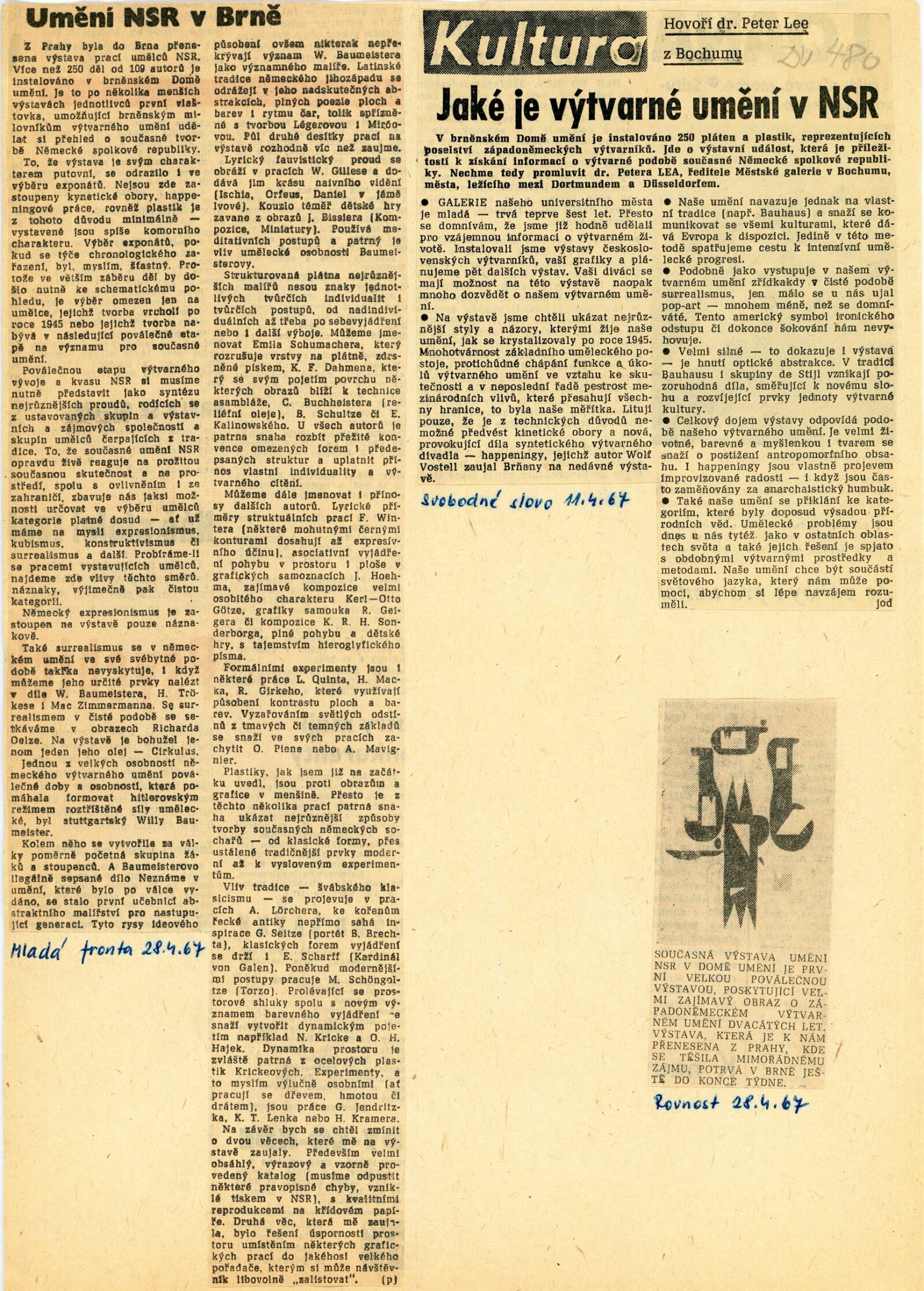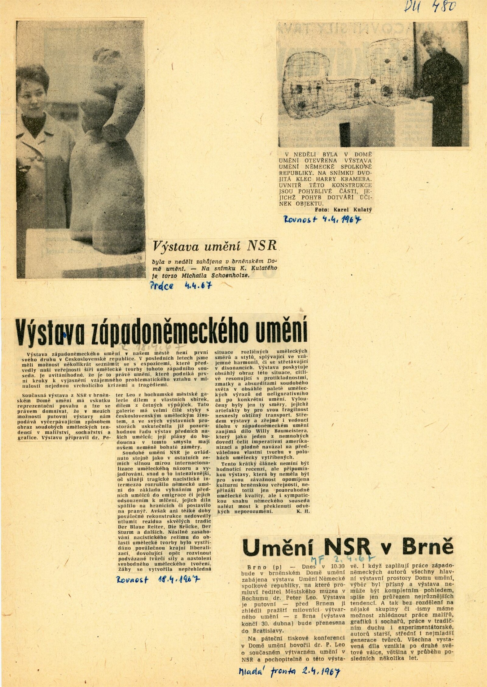 Umění Německé spolkové republiky. Kunst der Bundesrepublik Deutschland: Dům umění, 1. patro, 30. 3. – 30. 4. 1967 / Text: Petr Leo. – Bochum: Städtische Kunstgalerie, 1967. – 42 s., 92 s. obr. příl., DU 480