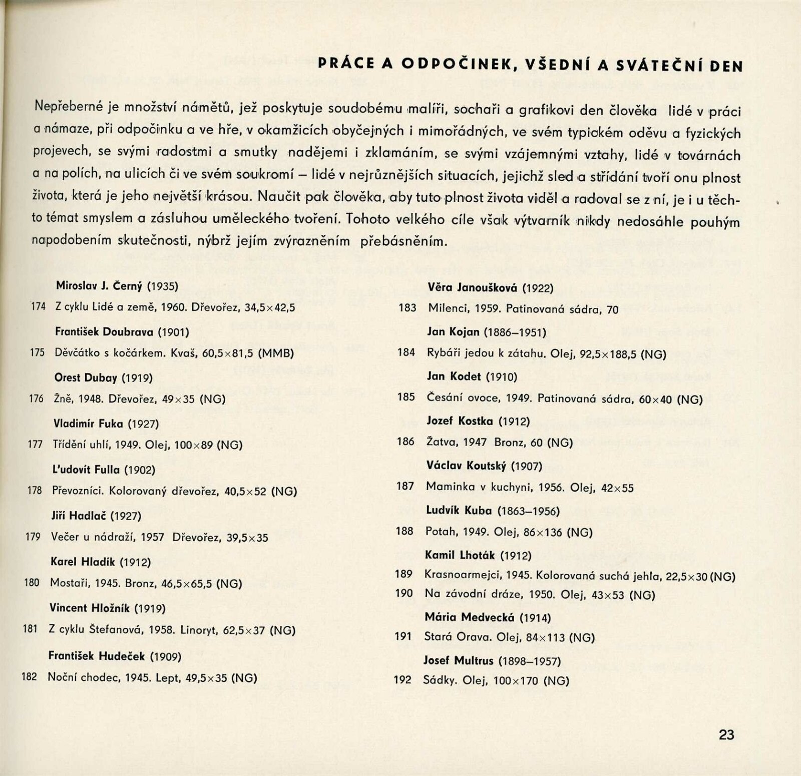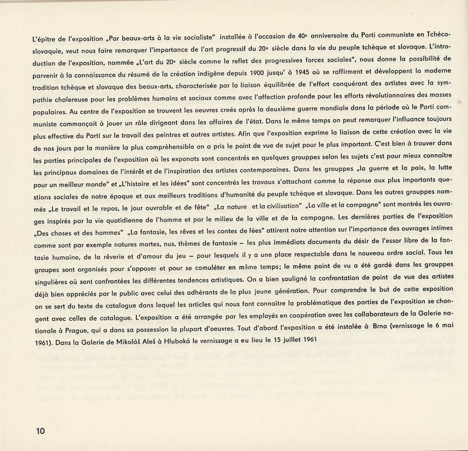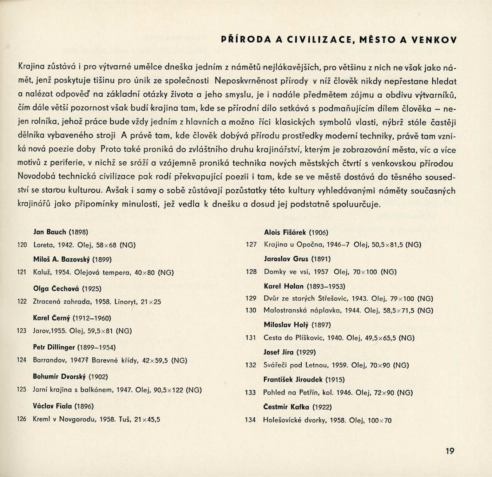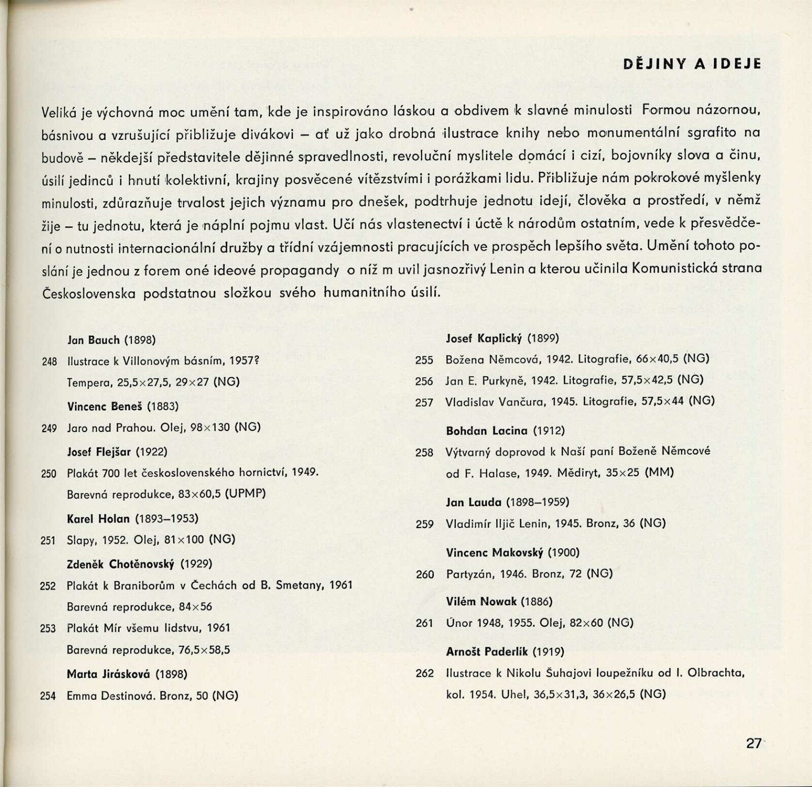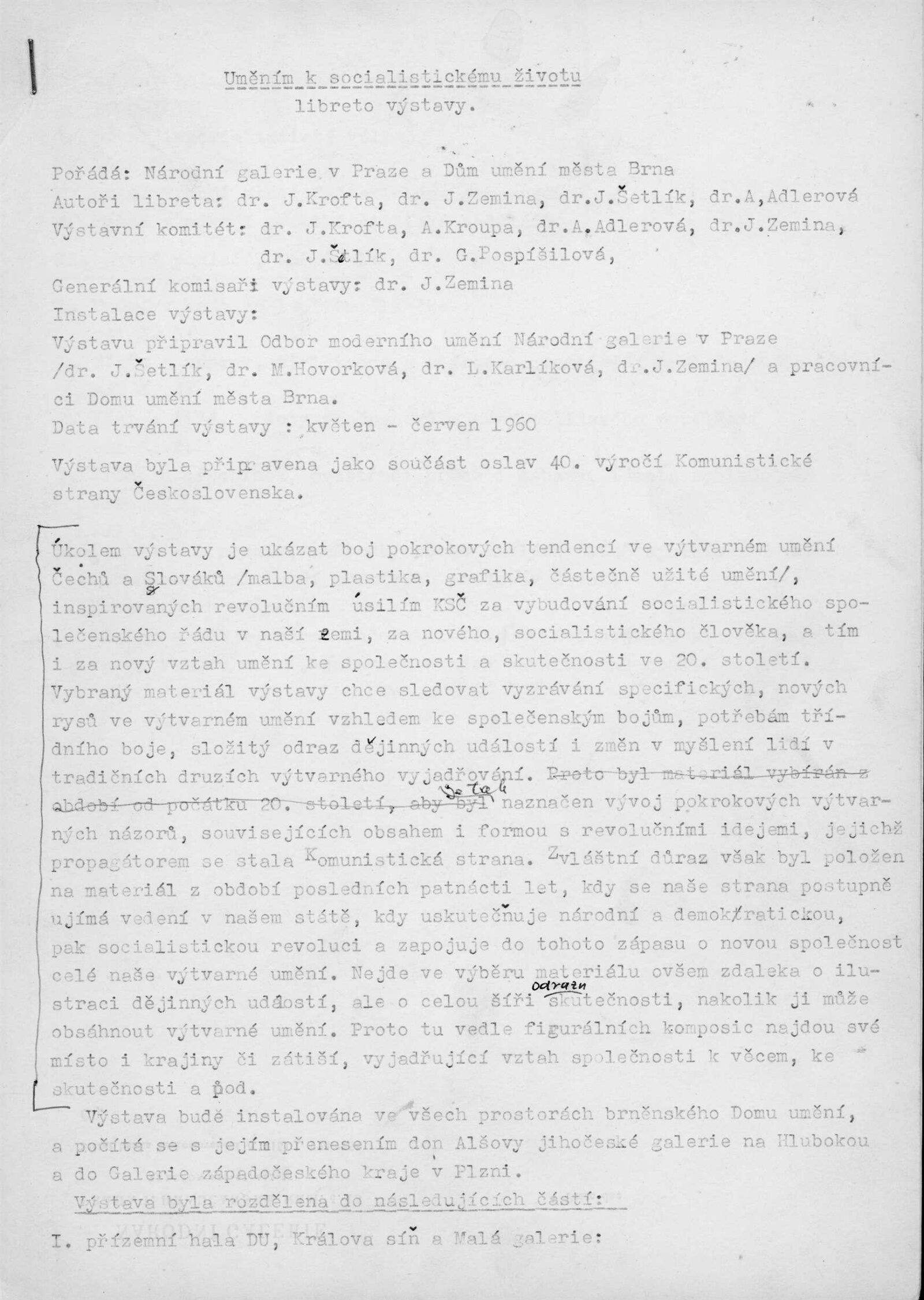 Uměním k socialistickému životu. K 40. výročí založení KSČ: Dům umění, 6. 5. – 2. 7. 1961 / Společný katalog výstavy pořádané Národní galerií v Praze, Domem umění města Brna a Alšovou jihočeskou galerií v Hluboké nad Vltavou. Výtvarným uměním k socialistickému životu: Hluboká, 1961 / Texty: Oldřich Pavlovský, Jiří Šetlík, Jaromír Zemina. – Hluboká nad Vltavou: Alšova jihočeská galerie, 1961. – 28 s., 48 s. obr. příl., DU 397. – MZK; MG