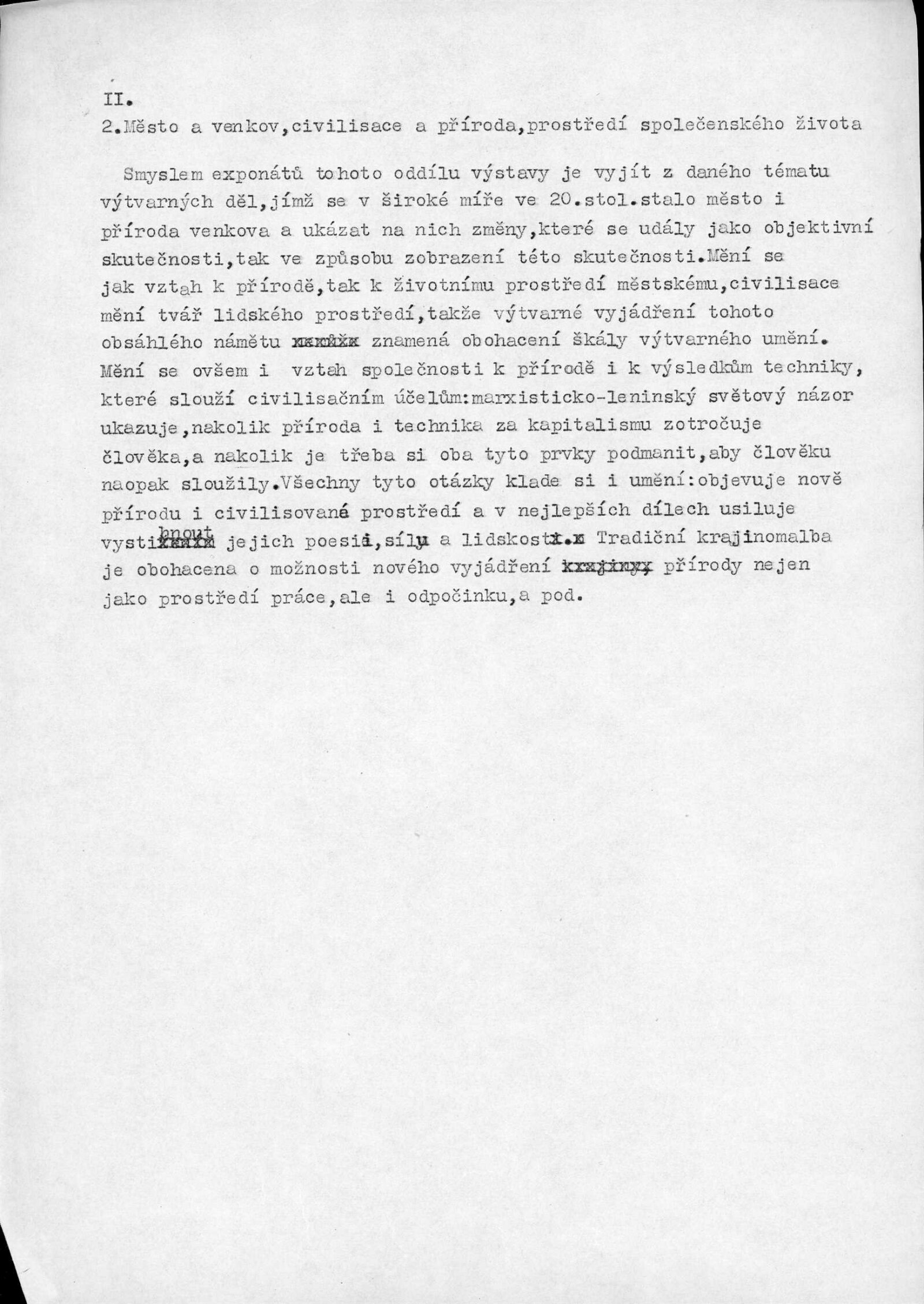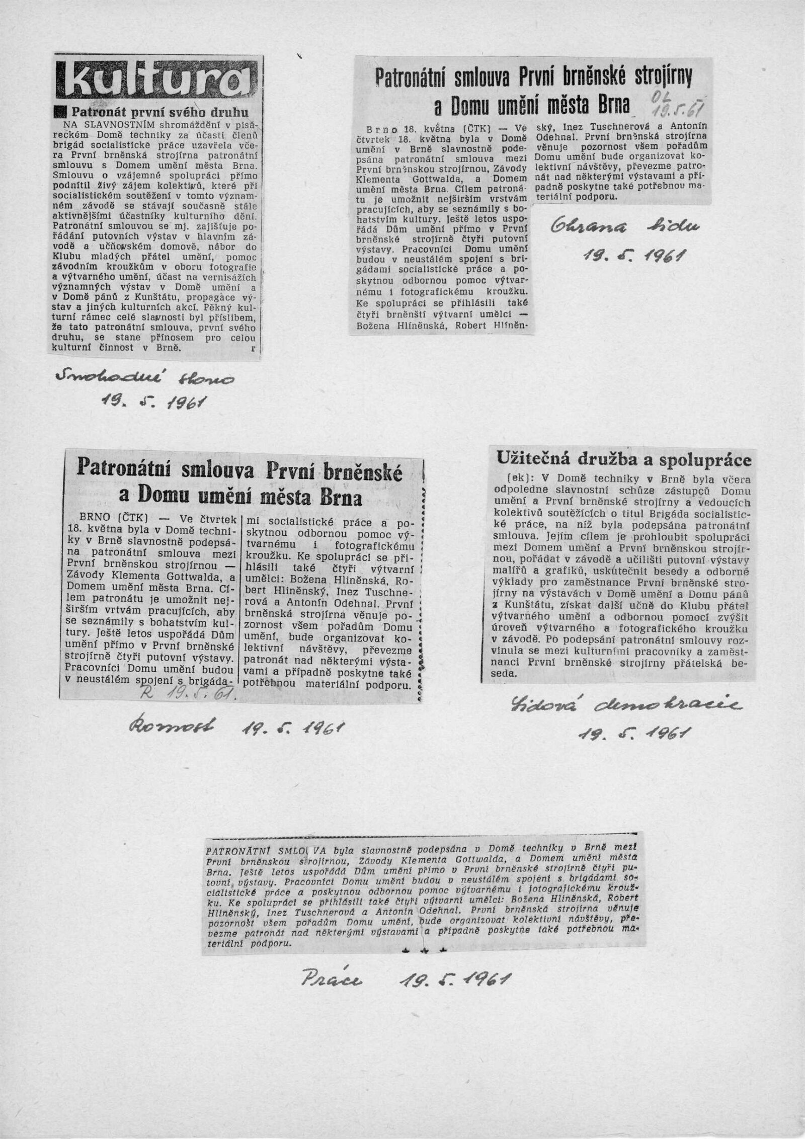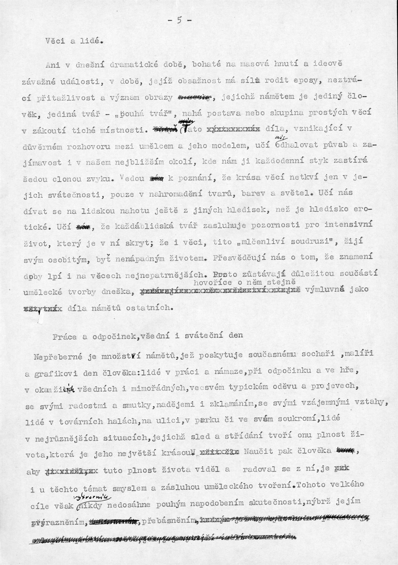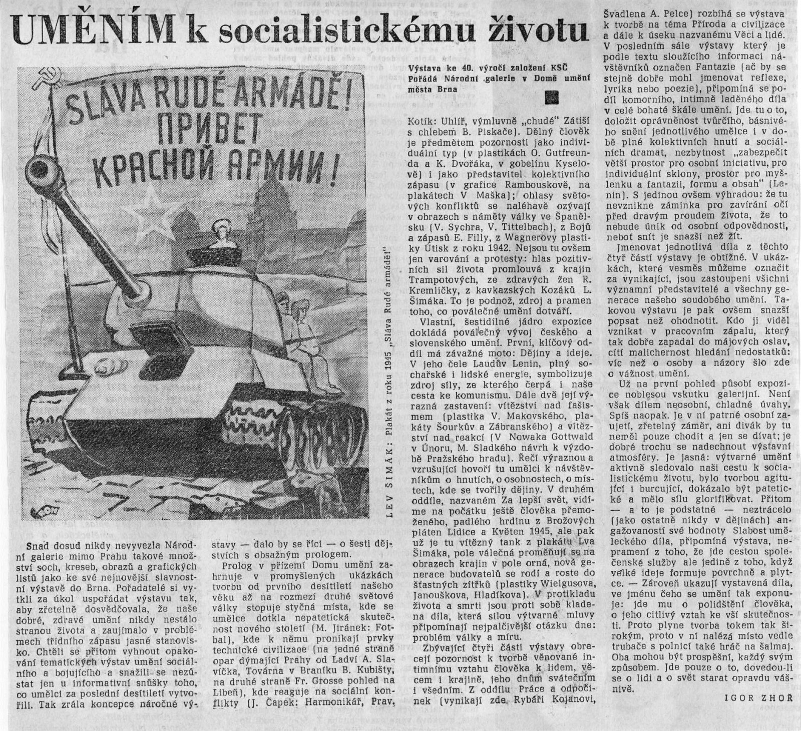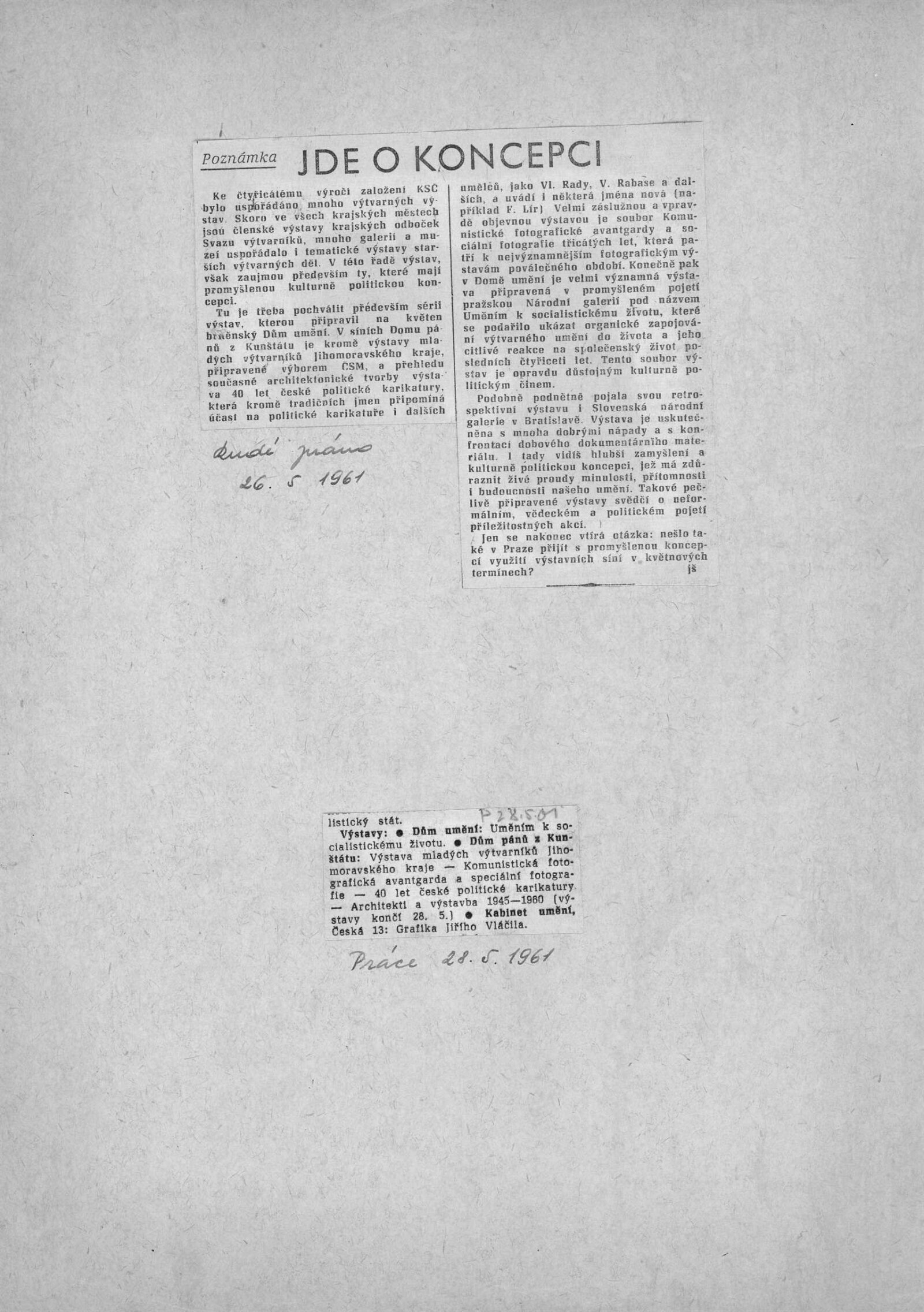 Uměním k socialistickému životu. K 40. výročí založení KSČ: Dům umění, 6. 5. – 2. 7. 1961 / Společný katalog výstavy pořádané Národní galerií v Praze, Domem umění města Brna a Alšovou jihočeskou galerií v Hluboké nad Vltavou. Výtvarným uměním k socialistickému životu: Hluboká, 1961 / Texty: Oldřich Pavlovský, Jiří Šetlík, Jaromír Zemina. – Hluboká nad Vltavou: Alšova jihočeská galerie, 1961. – 28 s., 48 s. obr. příl., DU 397. – MZK; MG