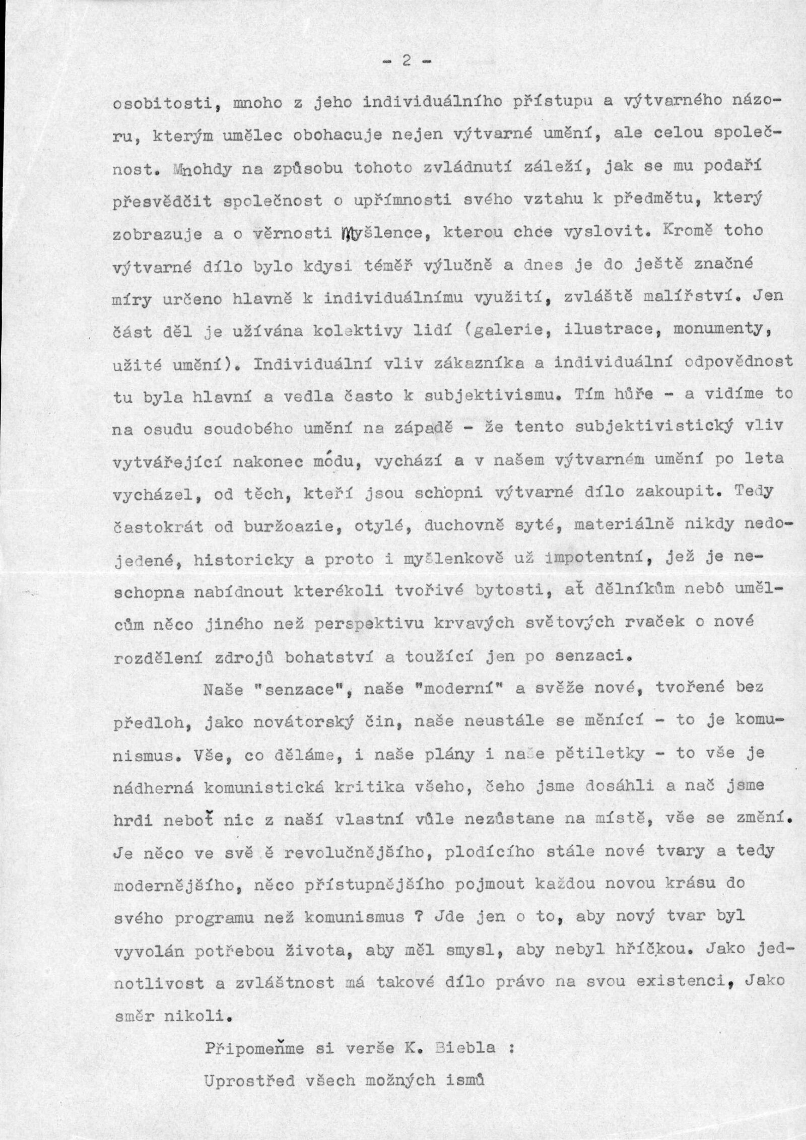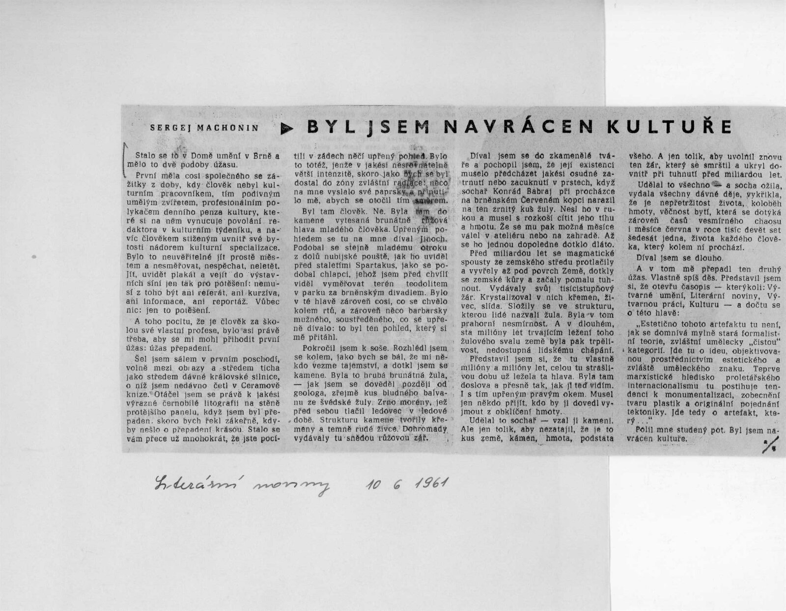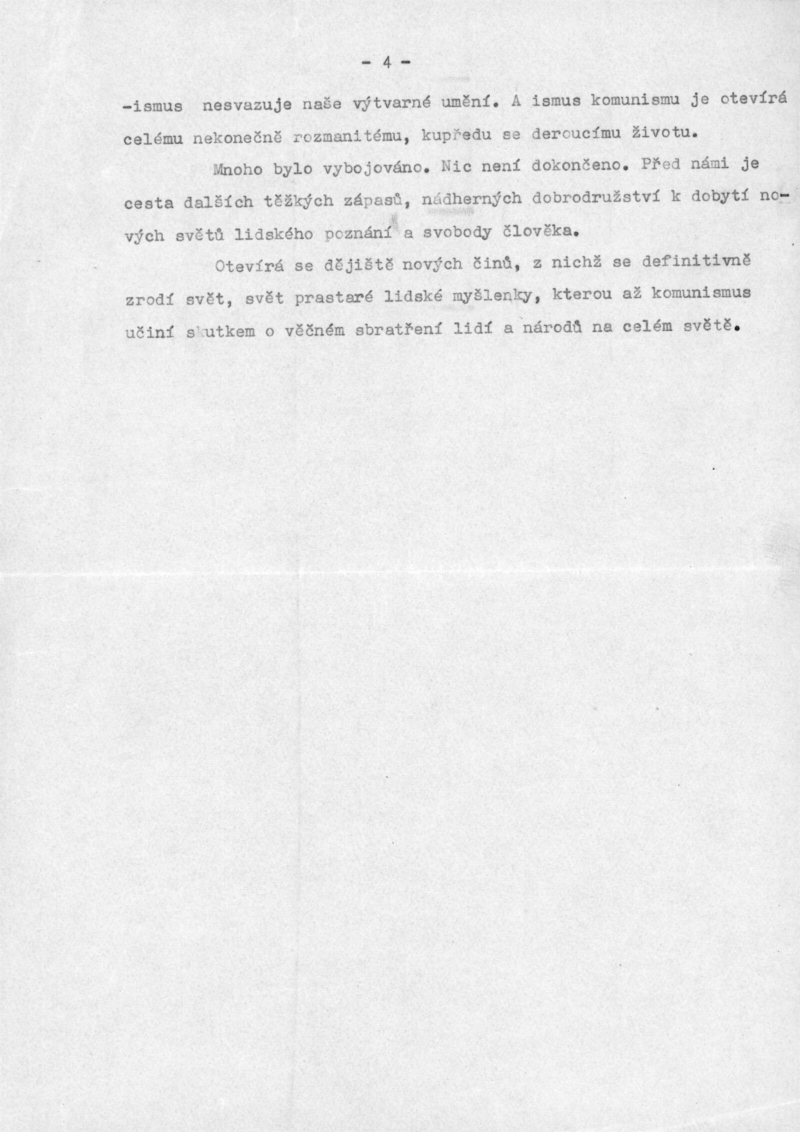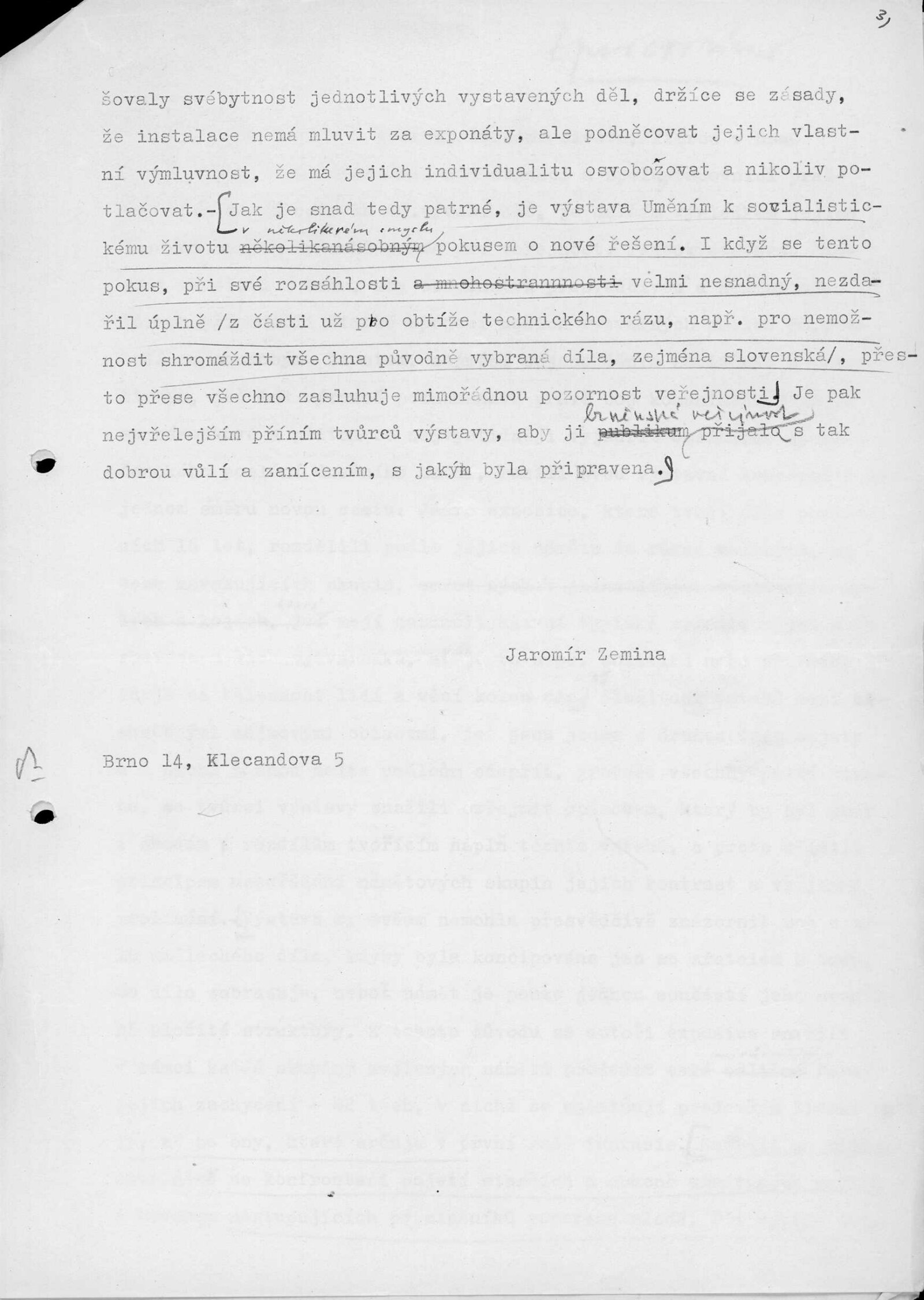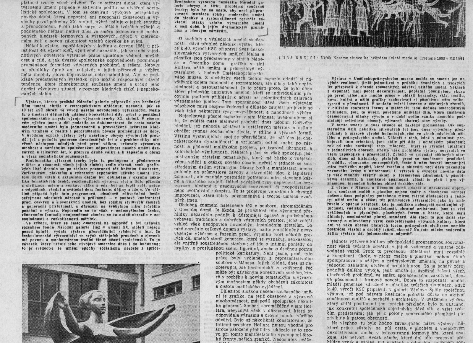 Uměním k socialistickému životu. K 40. výročí založení KSČ: Dům umění, 6. 5. – 2. 7. 1961 / Společný katalog výstavy pořádané Národní galerií v Praze, Domem umění města Brna a Alšovou jihočeskou galerií v Hluboké nad Vltavou. Výtvarným uměním k socialistickému životu: Hluboká, 1961 / Texty: Oldřich Pavlovský, Jiří Šetlík, Jaromír Zemina. – Hluboká nad Vltavou: Alšova jihočeská galerie, 1961. – 28 s., 48 s. obr. příl., DU 397. – MZK; MG