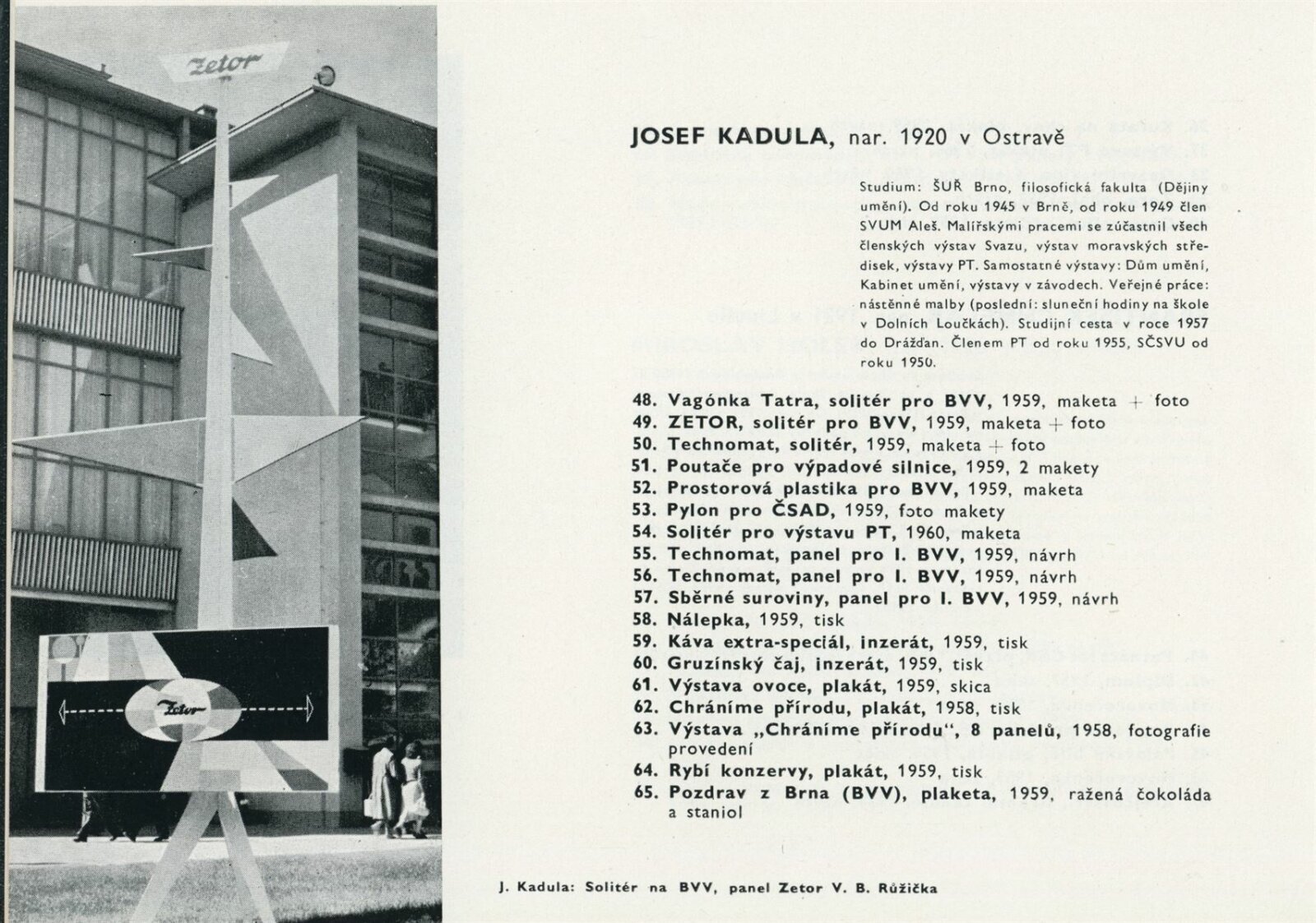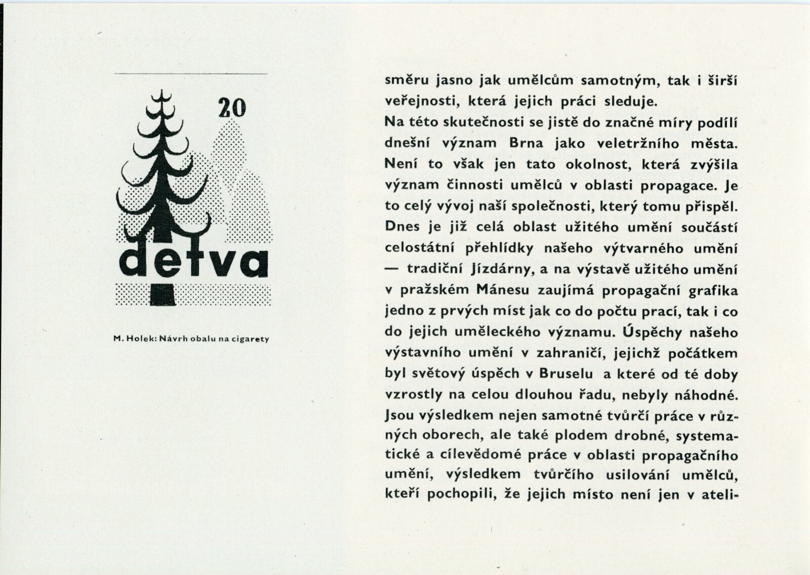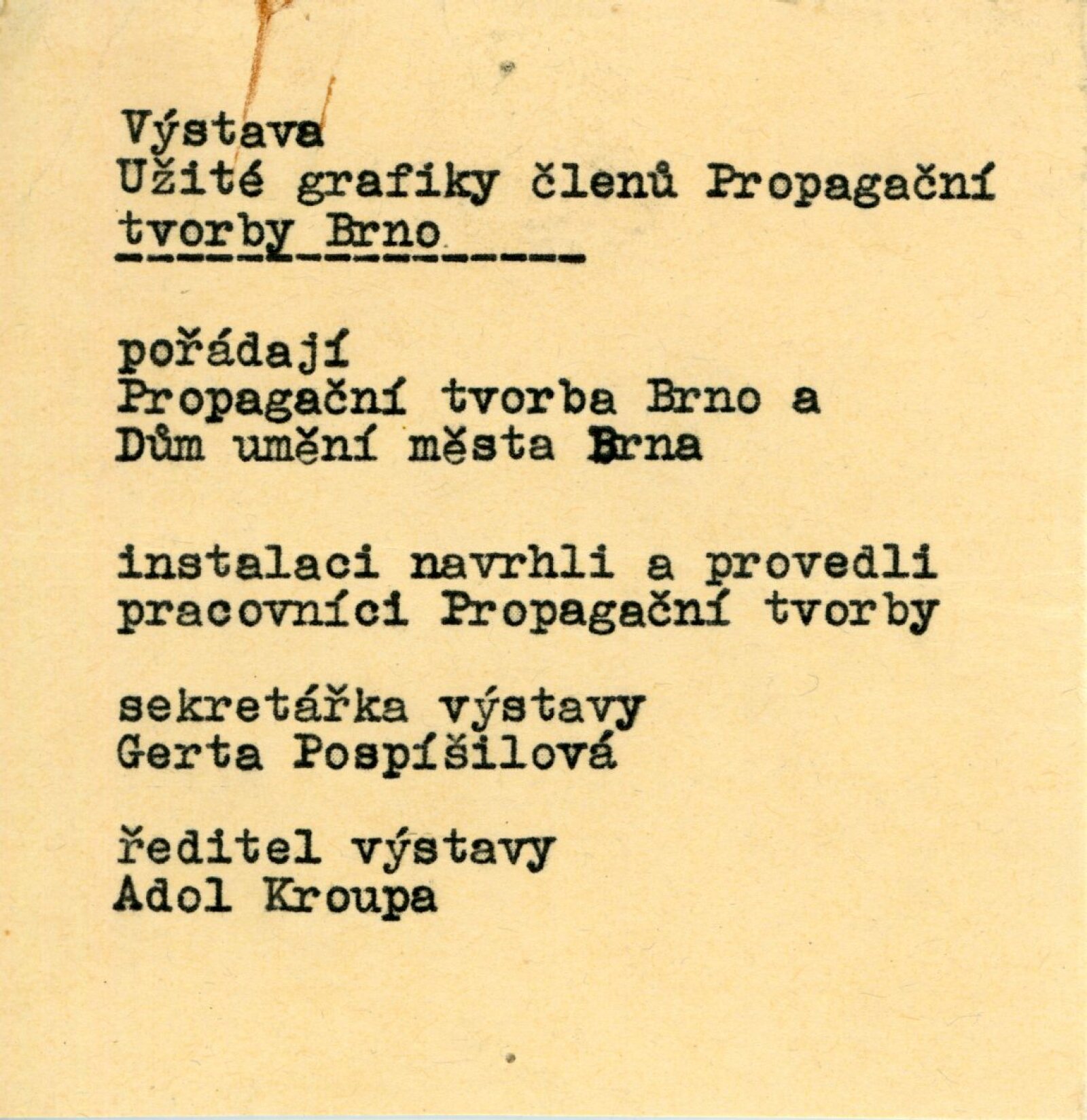 Výstava užité grafiky členů Propagační tvorby Brno: Dům umění města Brna / Dům pánů z Kunštátu, 10. výstava Kabinetu grafiky, 11. 2. – 6. 3. 1960 / Text: Josef Raban. – Brno: DUmB, 1960. – 20 s., obr., životopisy vystavujících, DPK 55. – MZK; MG