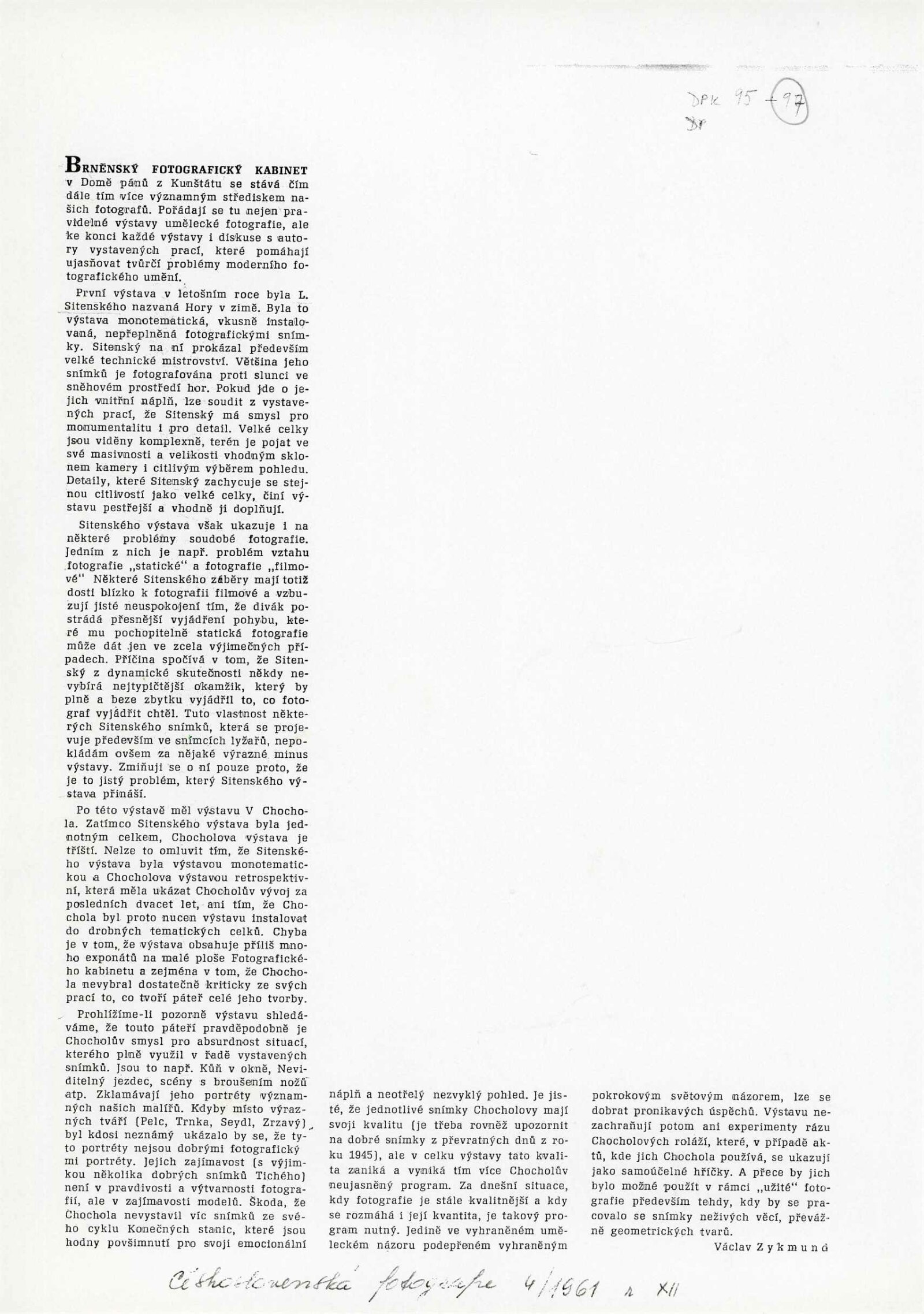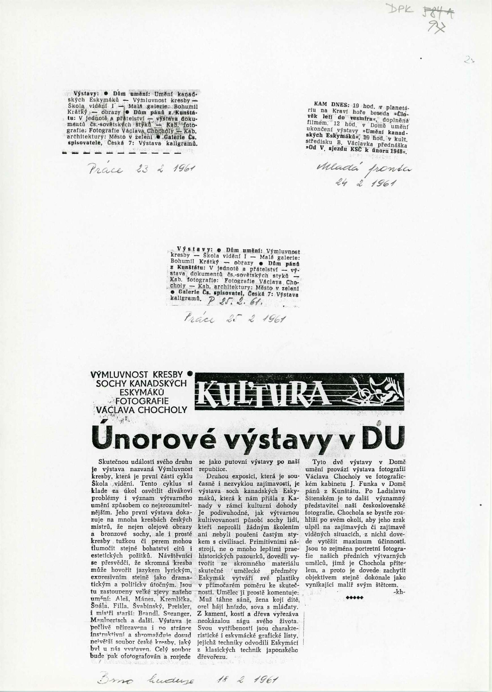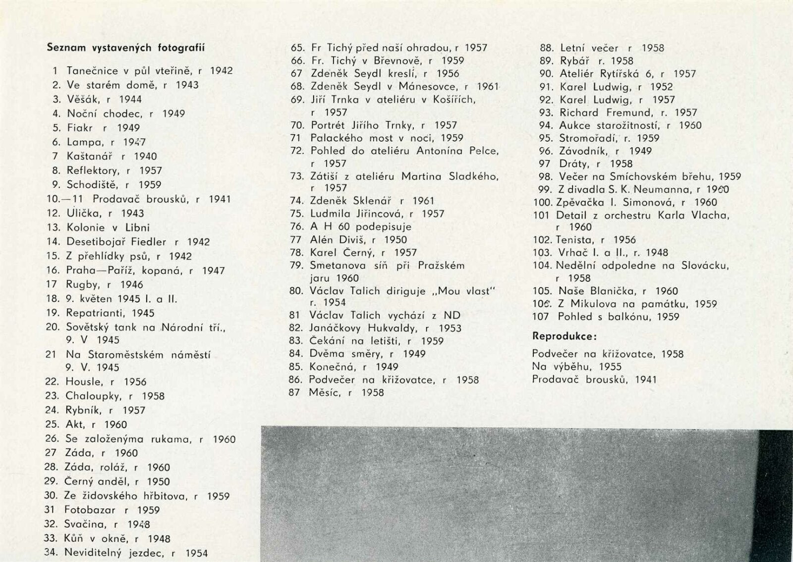 Václav Chochola: Dům umění města Brna / Dům pánů z Kunštátu, 20. výstava Kabinetu fotografie Jaromíra Funka, 2. 2. – 26. 2. 1961 / Text: Luboš Hlaváček. – Brno: DUmB, 1961. – skládačka, 6 s., obr., DPK 97. – MG