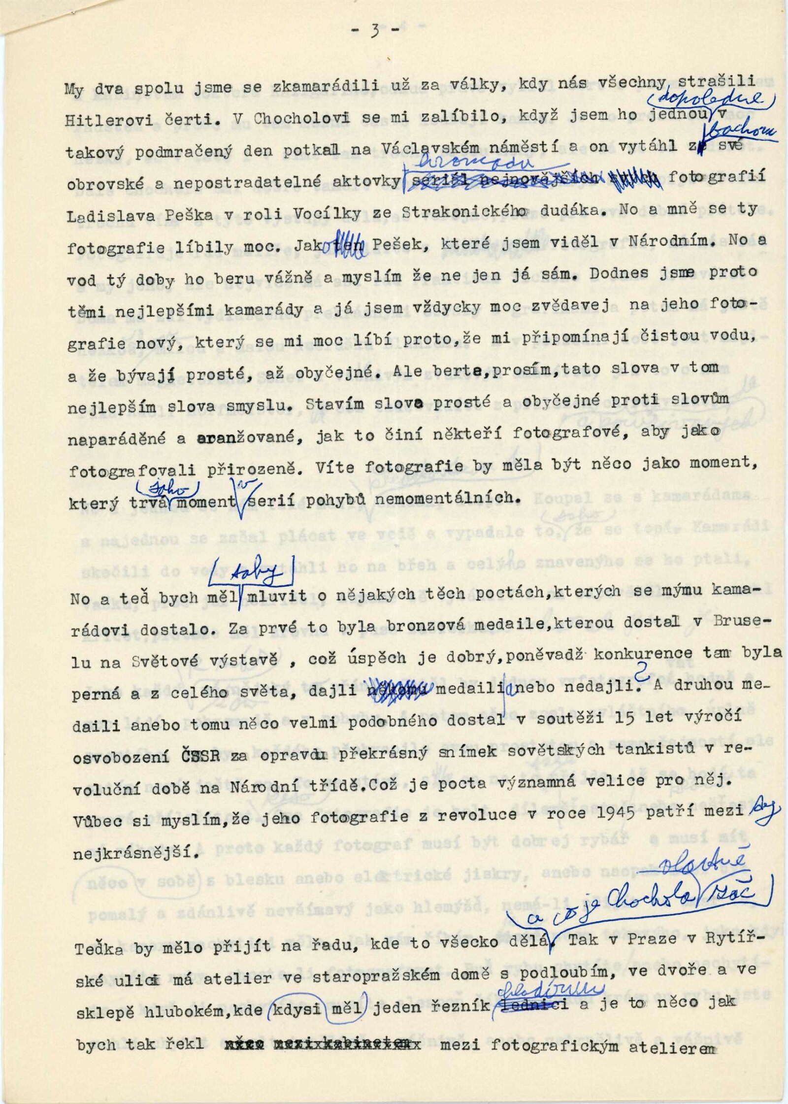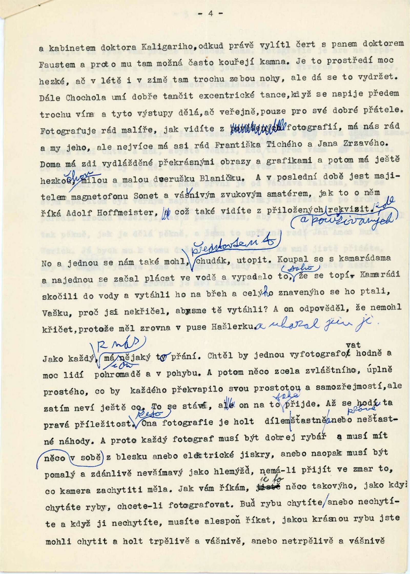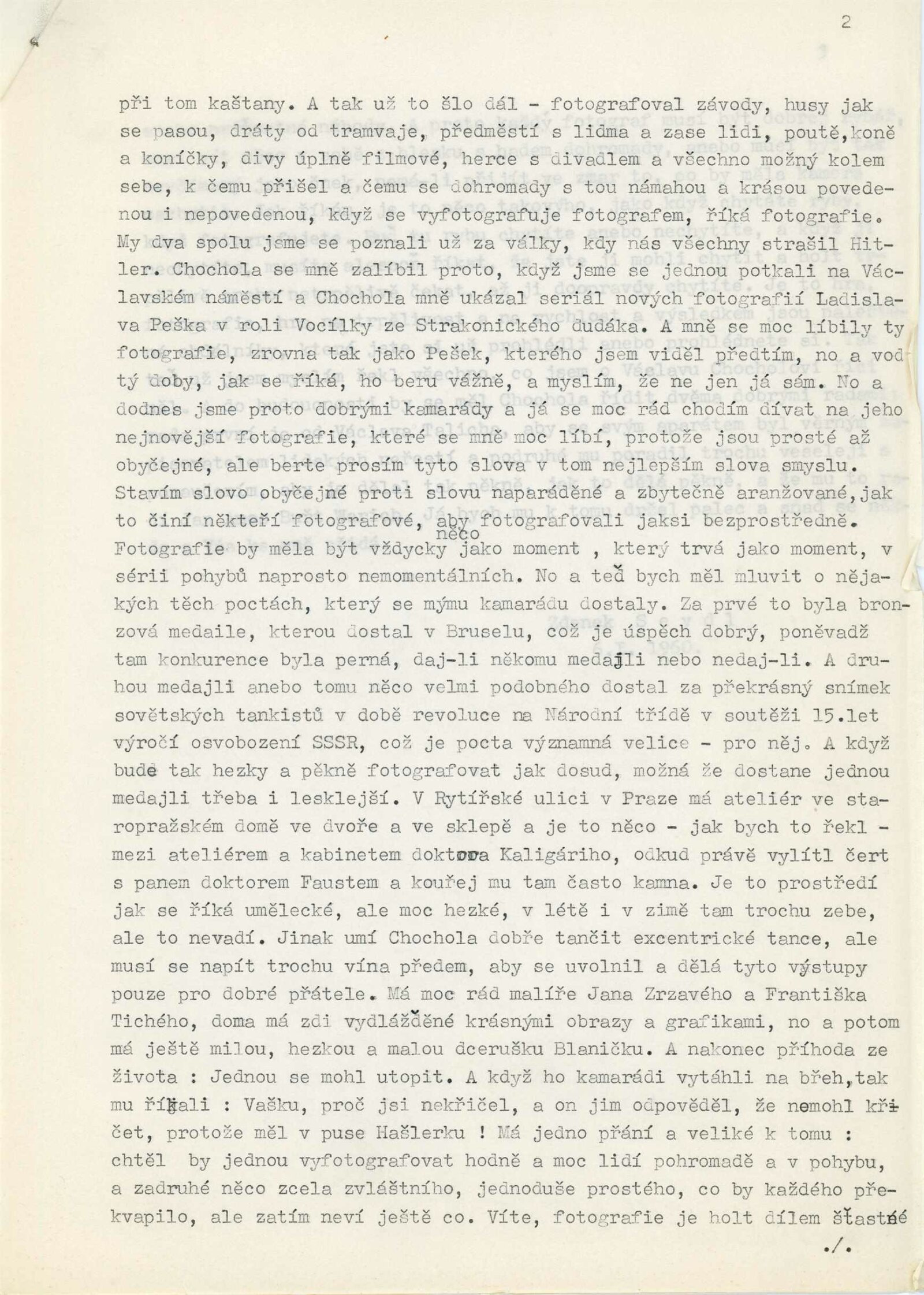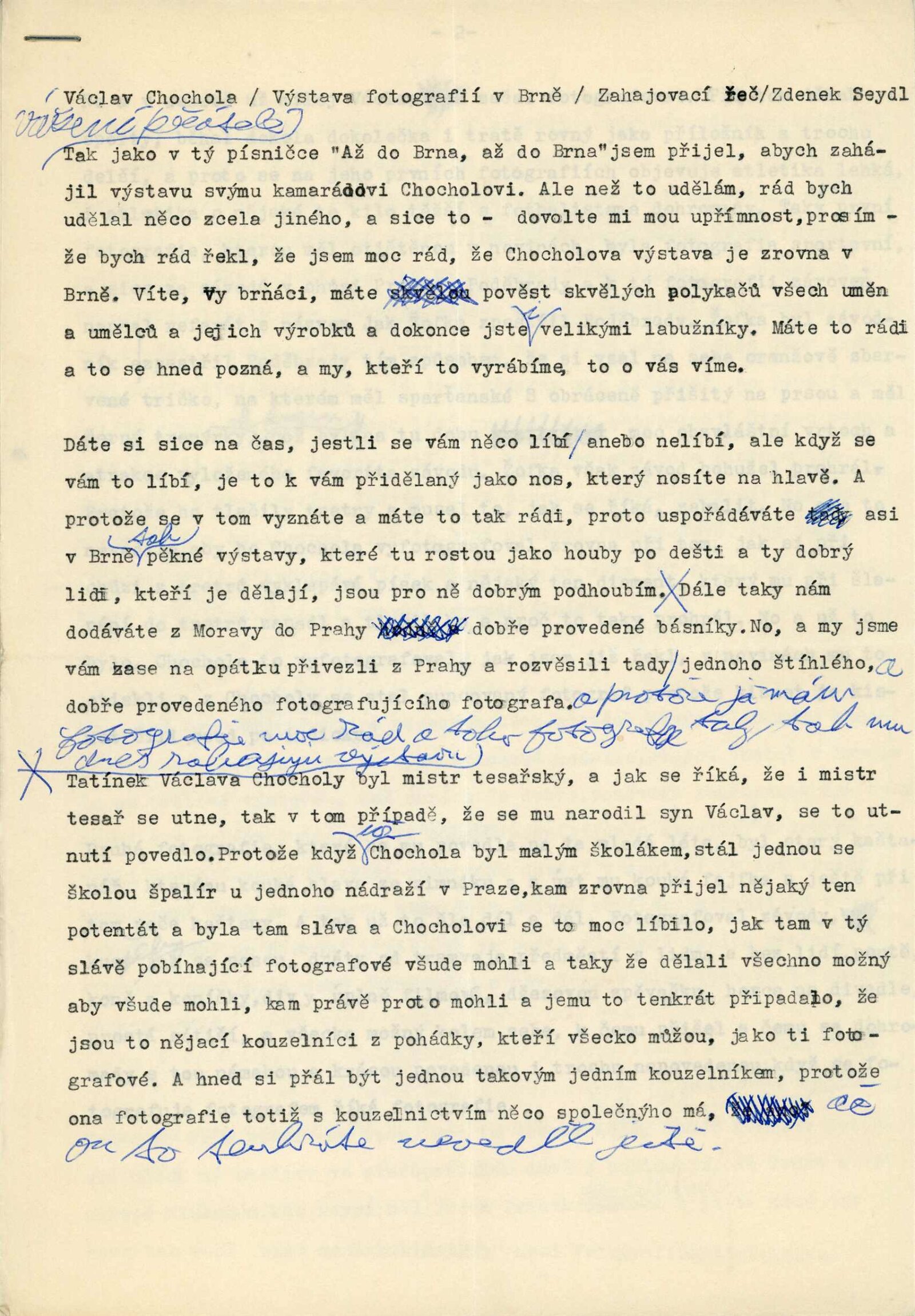 Václav Chochola: Dům umění města Brna / Dům pánů z Kunštátu, 20. výstava Kabinetu fotografie Jaromíra Funka, 2. 2. – 26. 2. 1961 / Text: Luboš Hlaváček. – Brno: DUmB, 1961. – skládačka, 6 s., obr., DPK 97. – MG