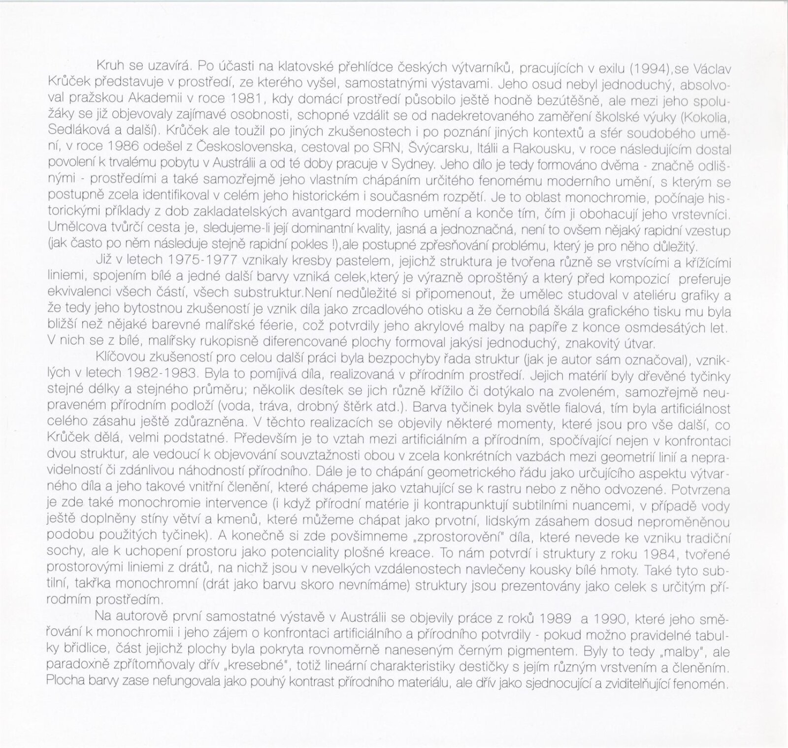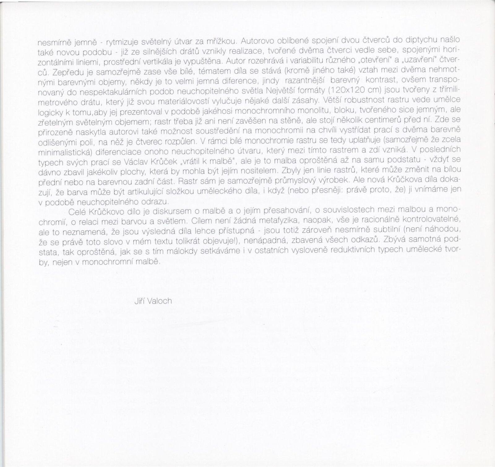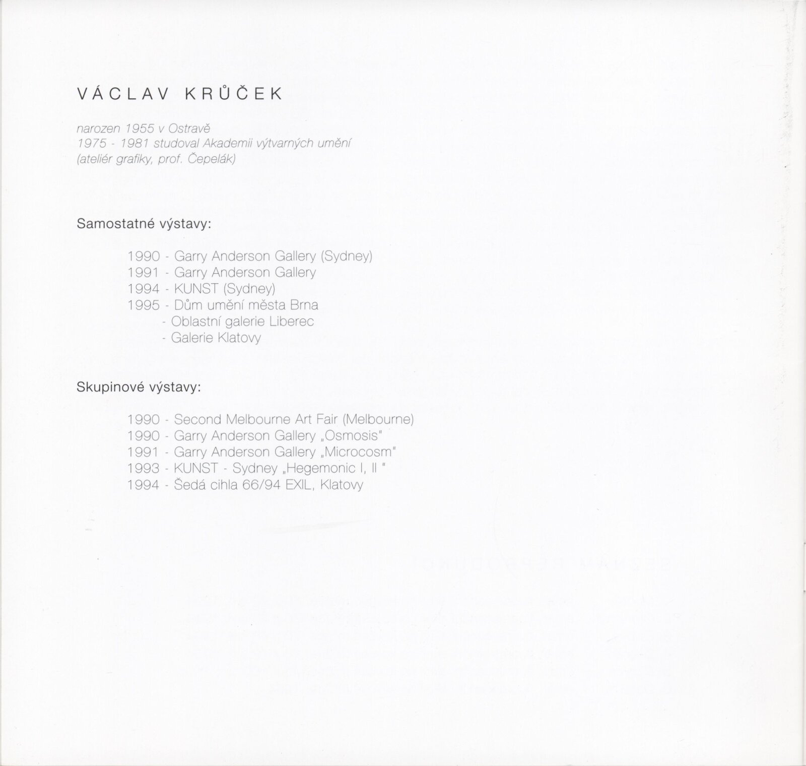 Václav Krůček: ... Galerie Jaroslava Krále, Dům umění města Brna 25. 5. – 25. 6. 1995 ... / Text Jiří Valoch. - Liberec: Oblastní galerie, - [20] s., obr. Životní data, výstavy DU 998; MZK; MG
