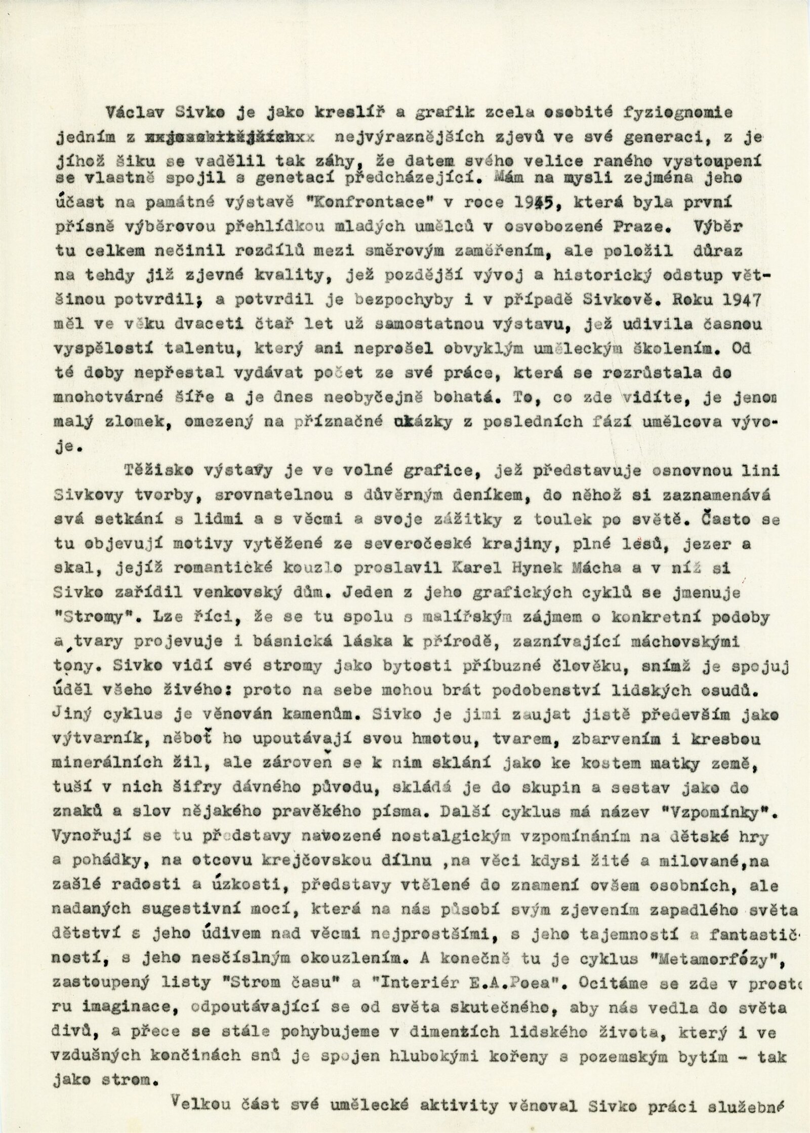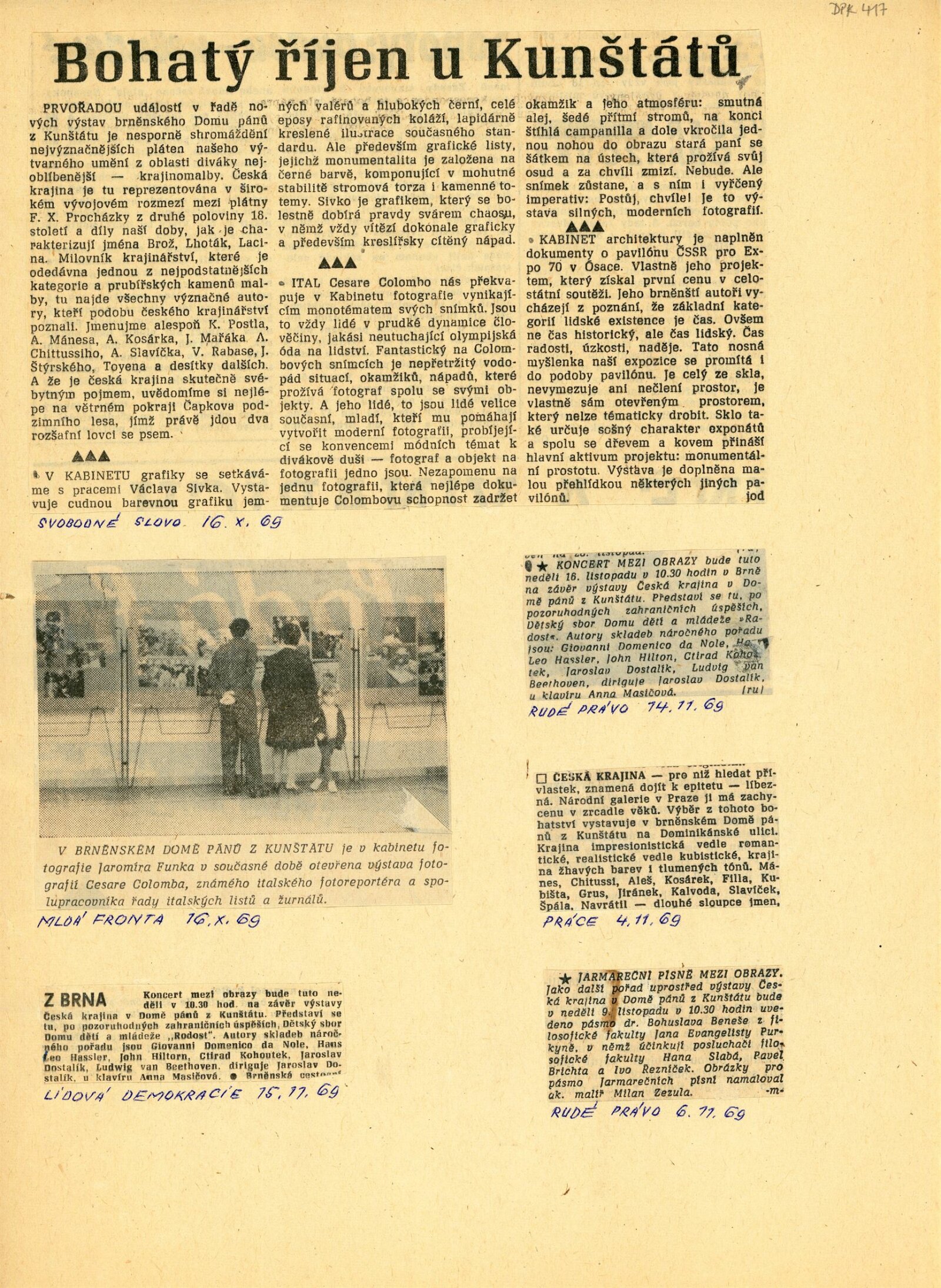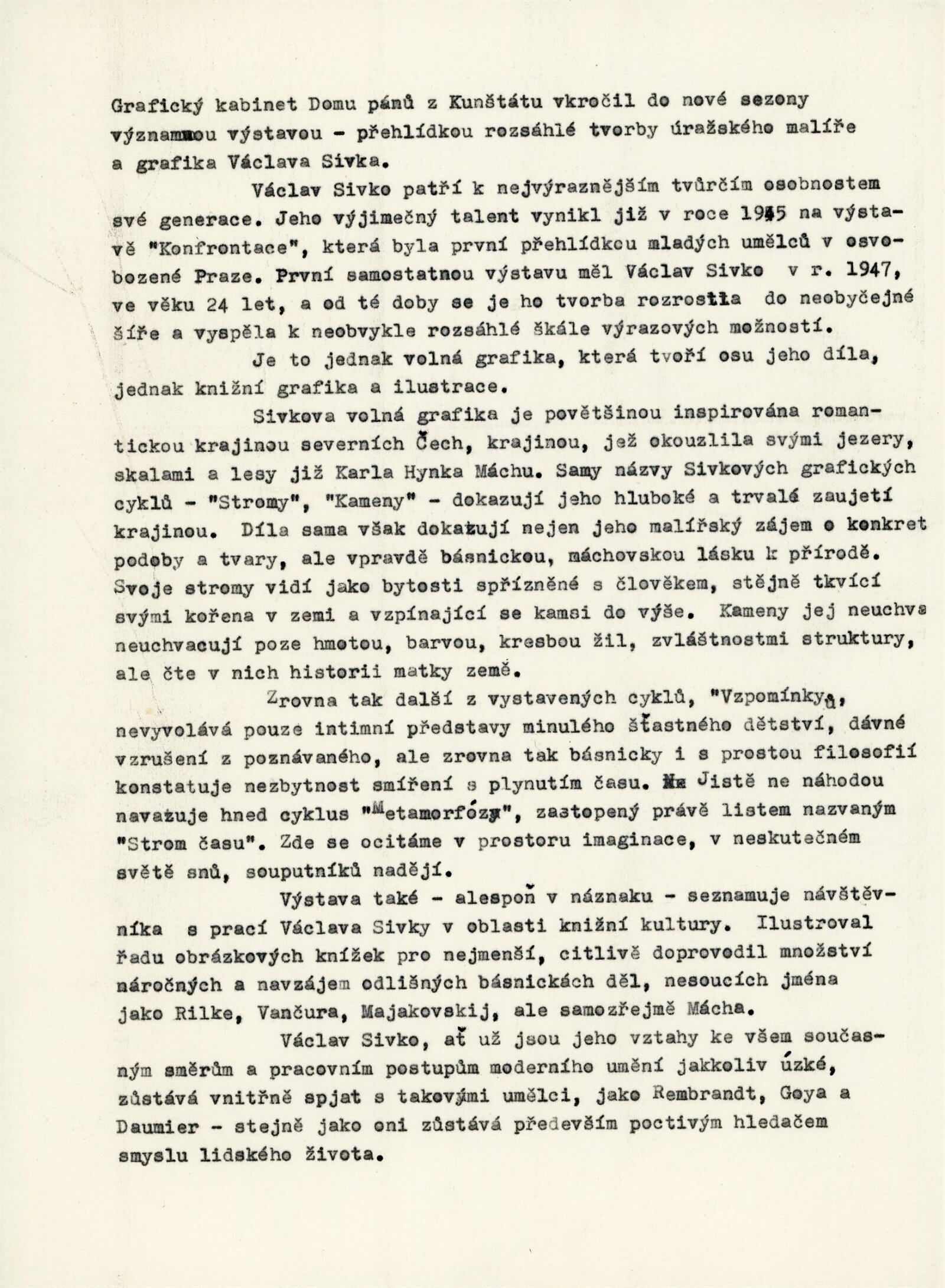 společná pozvánka DPK 417–419, strojopis katalogu Miroslav Míčko, strojopis textu pro rozhlas, korespondence (příprava výstavy, změna termínu výstavy, dopisy Václav Sivko, provozní korespondence), smlouva k výstavě, recenze v tisku