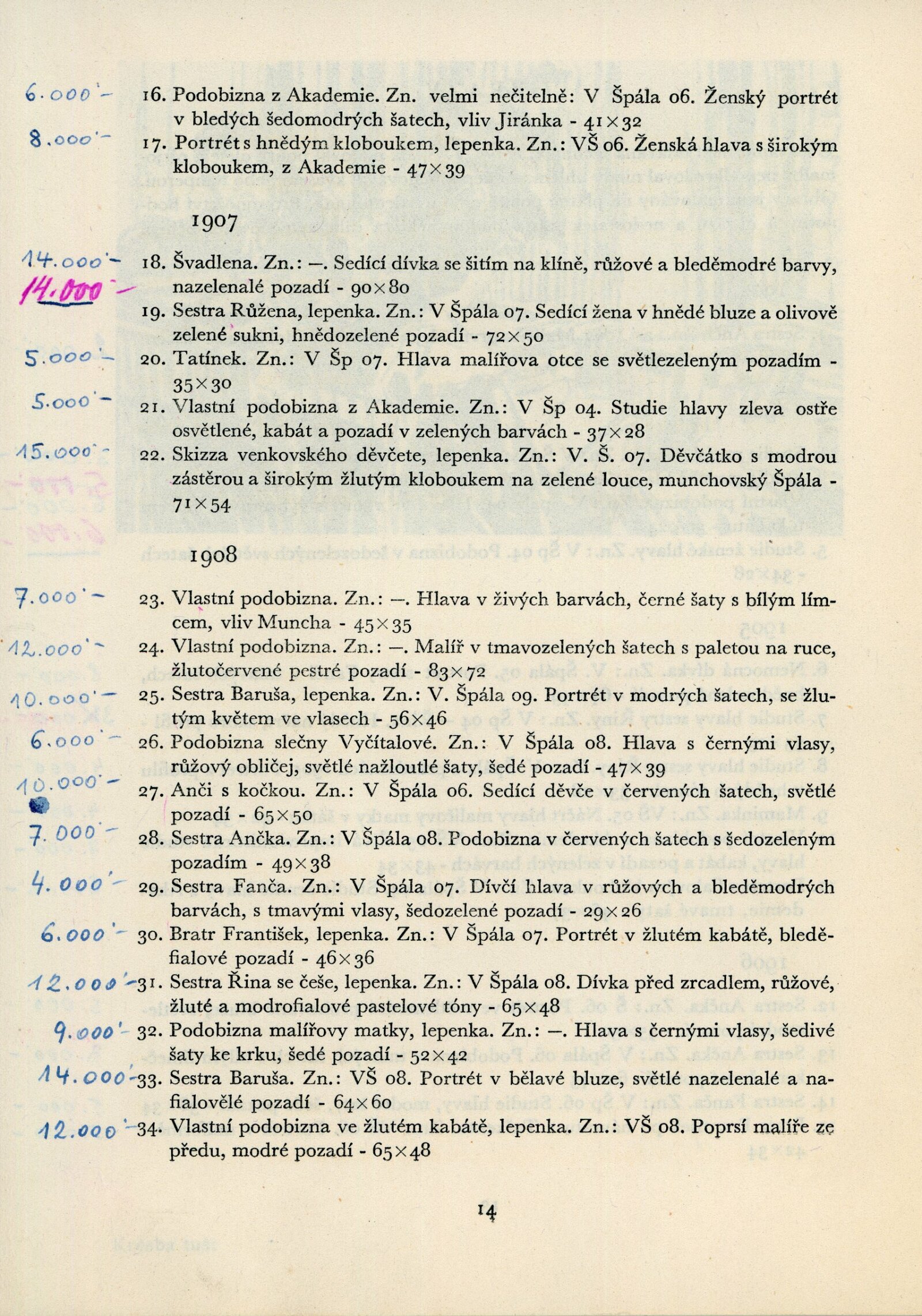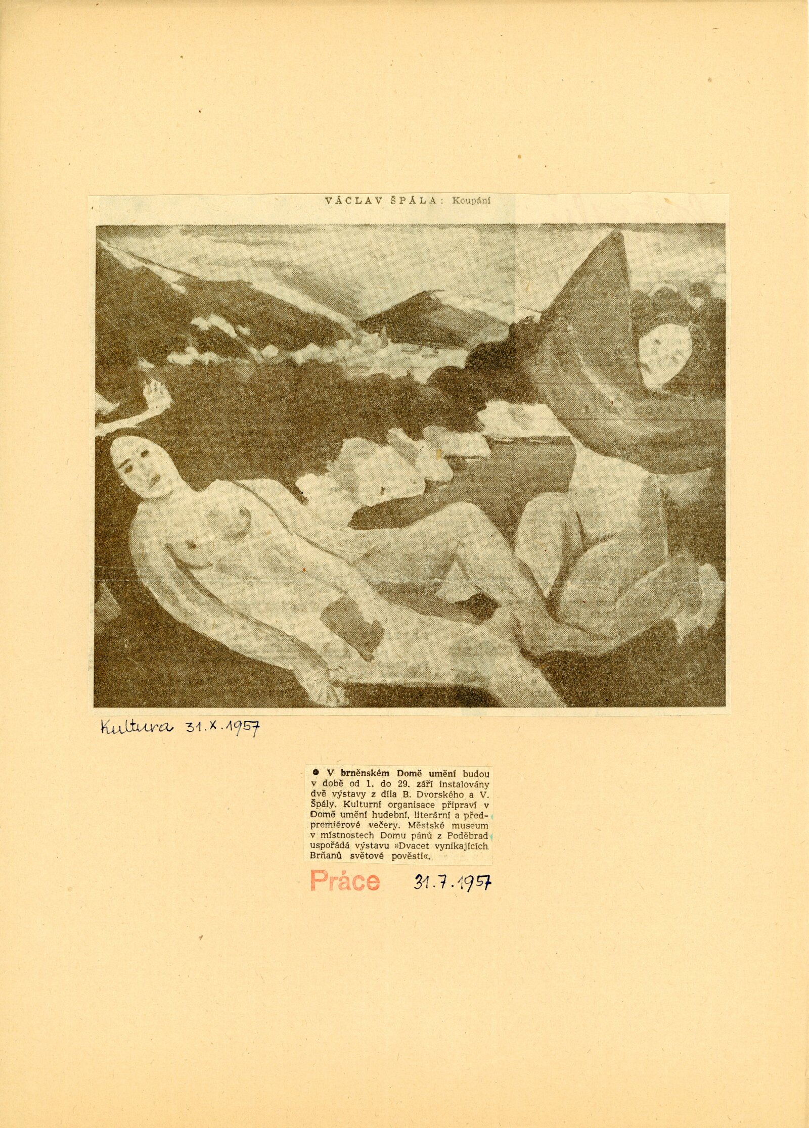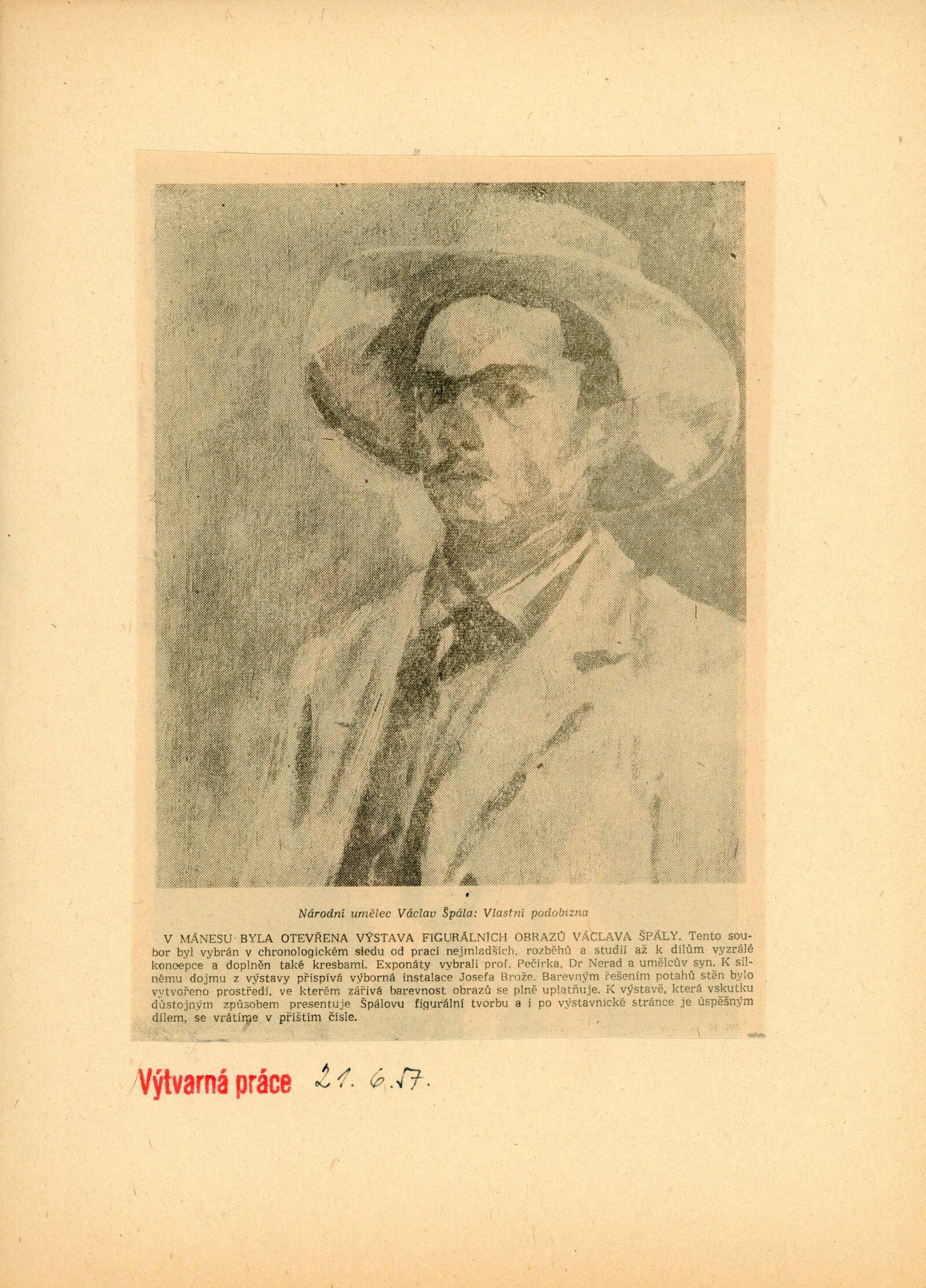 Václav Špála: Dům umění, 1. 9. – 29. 9. 1957 / Převzatý katalog. Národní umělec Václav Špála. Figurální obrazy: Výstavní síň Mánes, červen–srpen 1957 / Text: Jaromír Pečírka. – Praha: SČSVU, 1957. – 21 s., 16 s. obr. příl., DU 292. – MZK