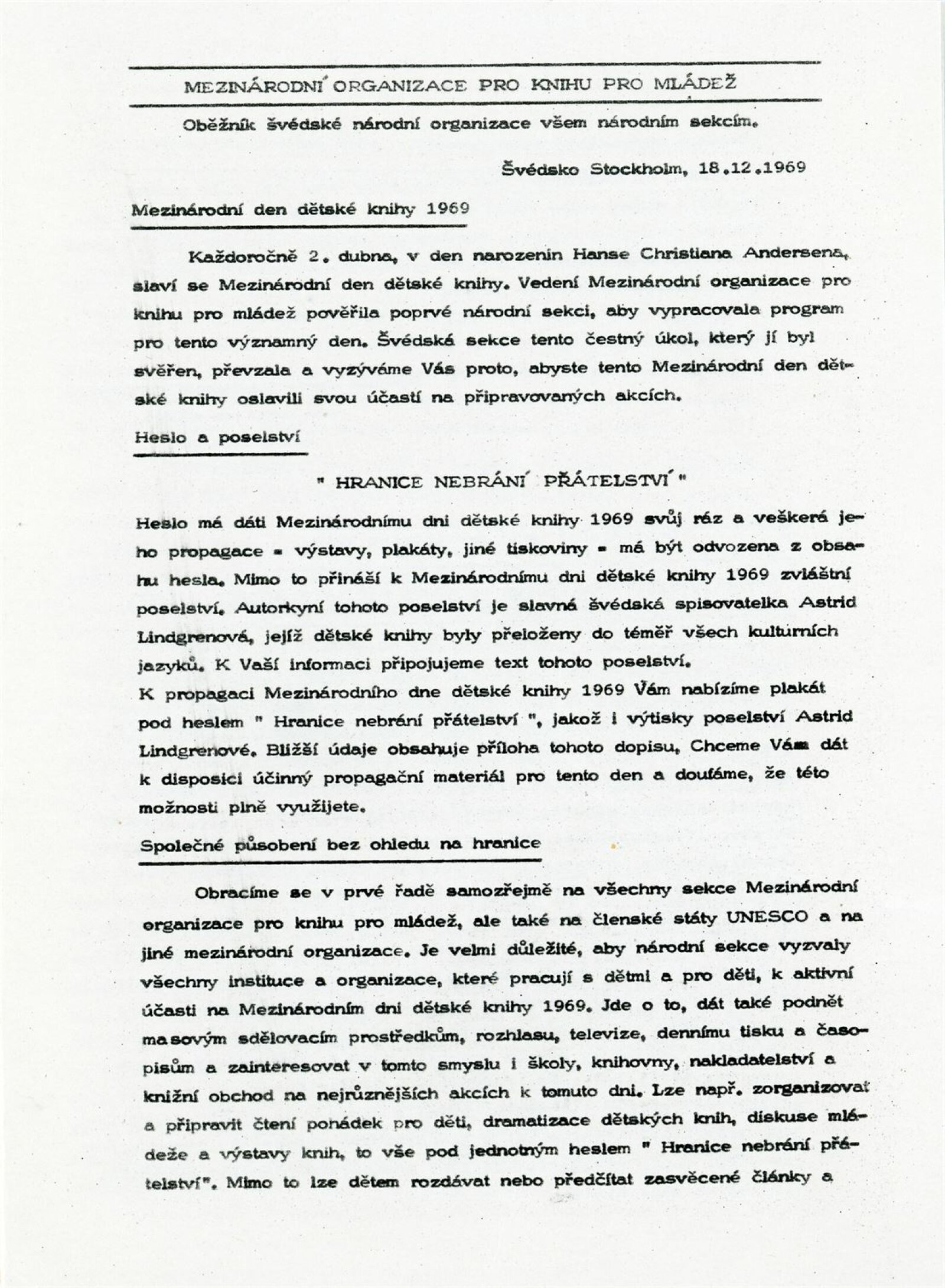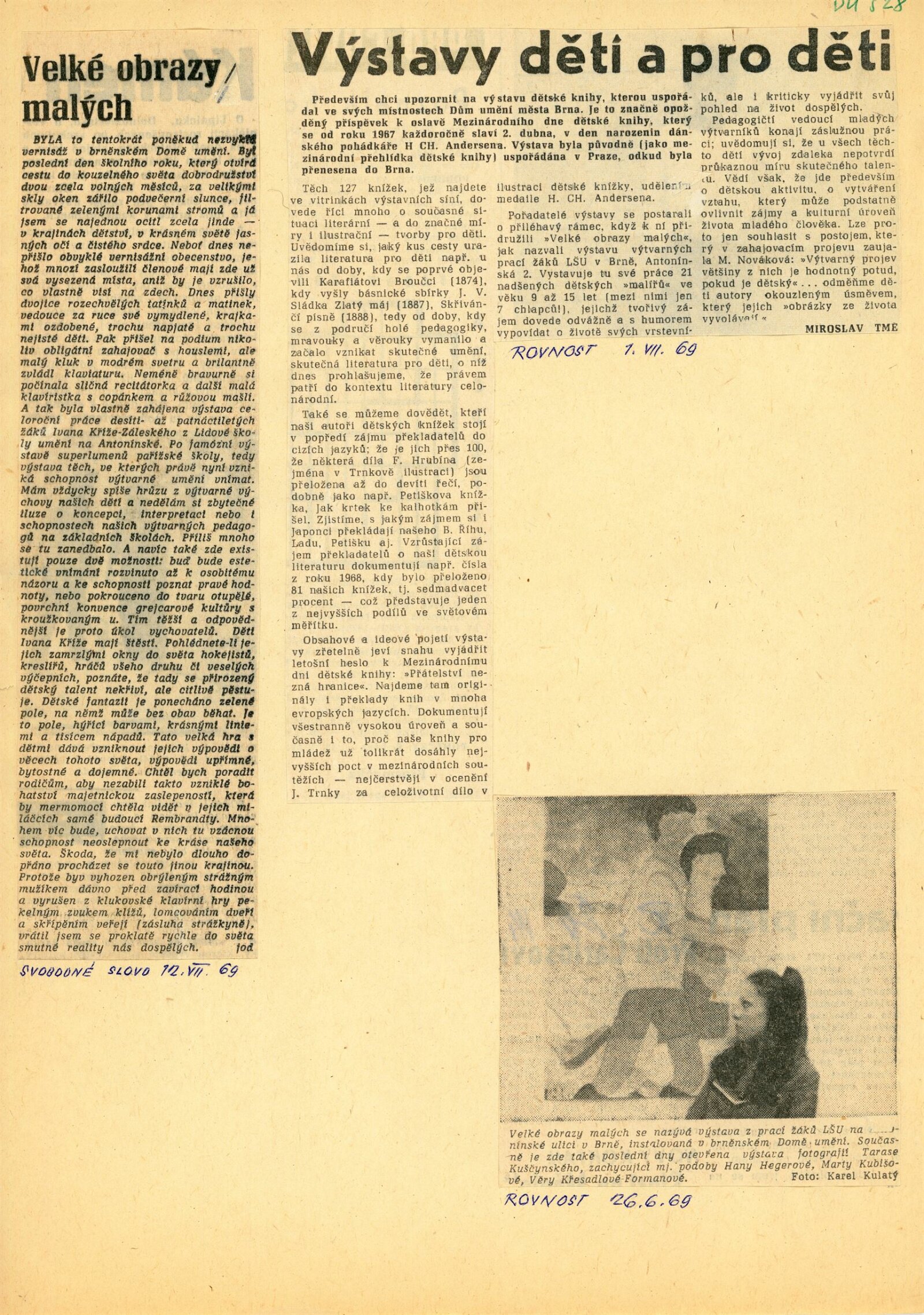 pozvánka, strojopis společné pozvánku pro DU 527 a 528, proslov Jana Červenky, soupis dětských knih vhodných pro propagační využití, zpráva, úvodní slovo a text k výstavě DU 528, seznam vystavených knih, provozní korespondence (Kruh přátel dětské knihy) smlouva s LŠU Antonínská o výstavě DU 528, recenze v tisku, sborník materiálů k přípravě Mezinárodního dne dětské knihy (MDDK) „Hranice nebrání přátelství“, publikace „Deset let lidové školy umění“ (Brno, Antonínská 3), text k MDDK, oběžník švédské národní organizace MDDK, poselství všem dětem světa k MDDK od Astrid Lindgrenové