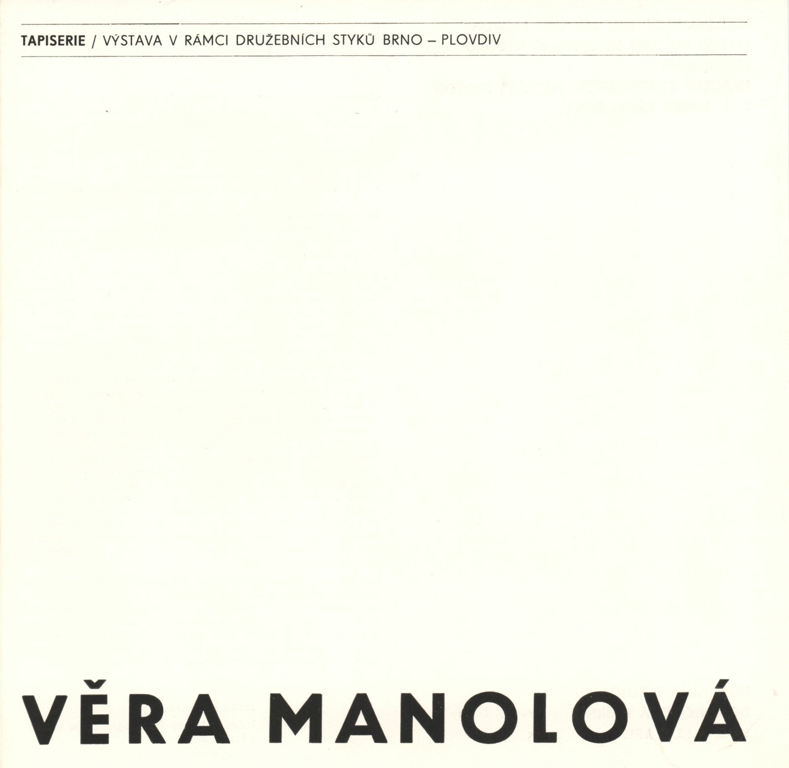 Věra Manolová. Tapiserie. Výstava v rámci družebních styků Brno-Plovdivov: Dům pánů z Kunštátu 17. 6. – 15. 7. 1979 / Text Zlata Mitrovská. - Brno: DUmB, - 4 s., obr. DPK 707; MZK; MG; MMB