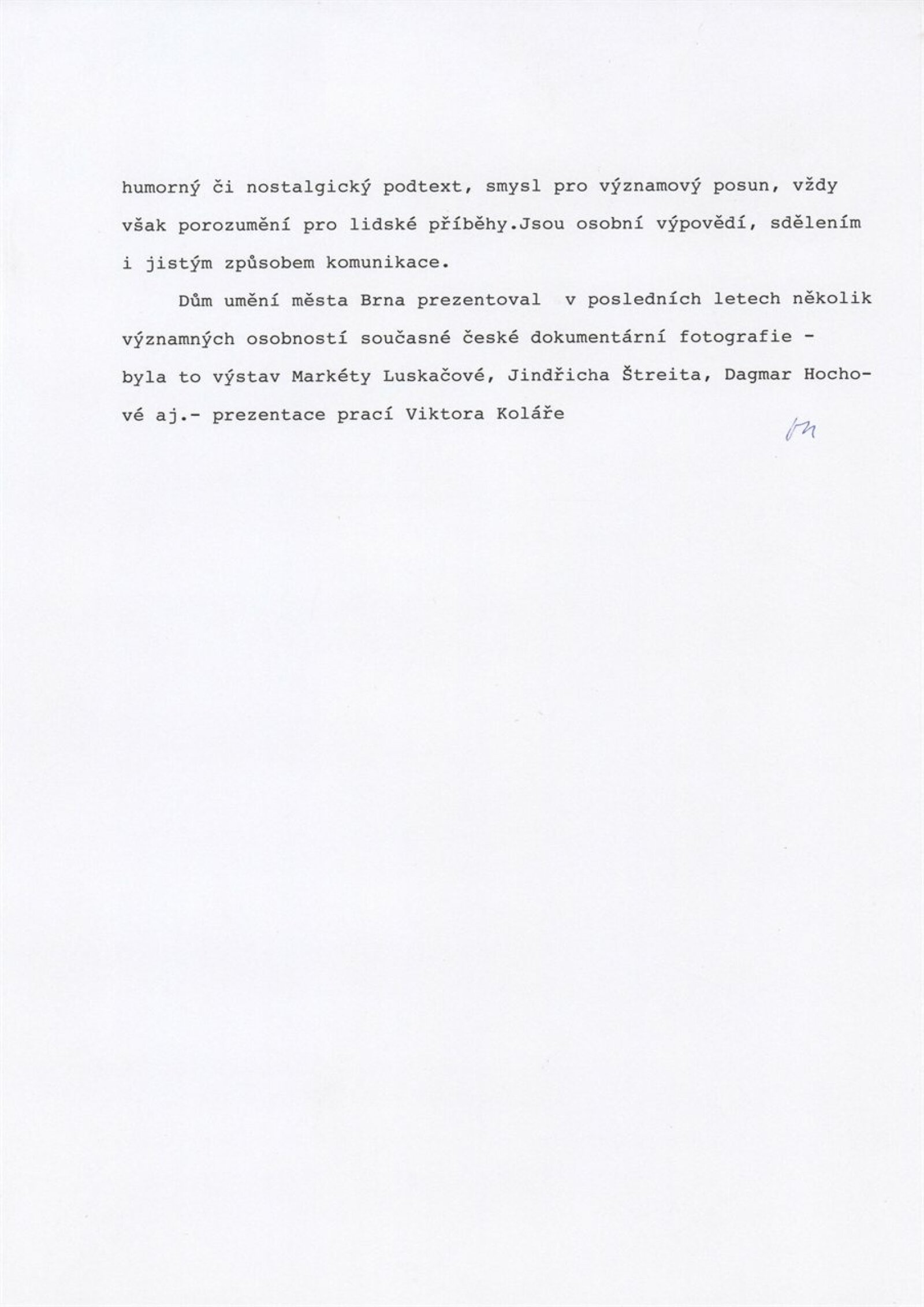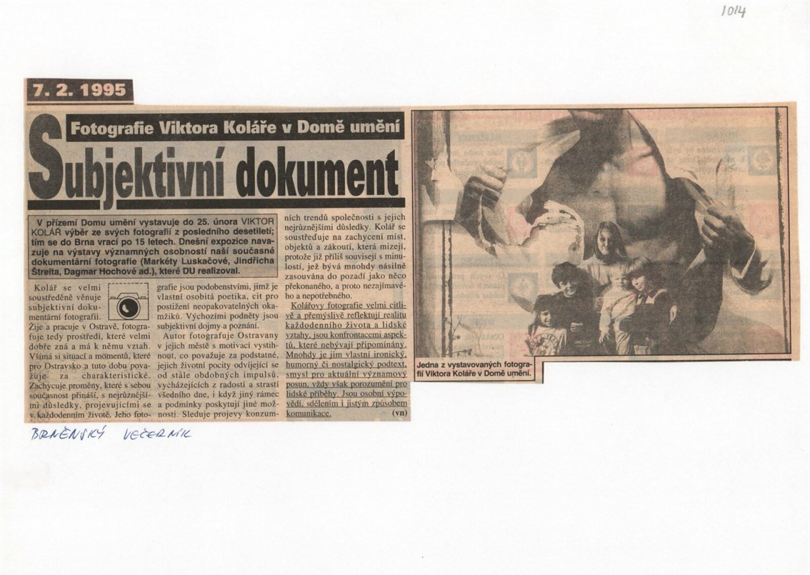 pozvánka, katalog, text katalogu (autor), text k výstavě (Vránová), korespondence o realizaci výstavy (Kolář, Vránová), recenze v tisku