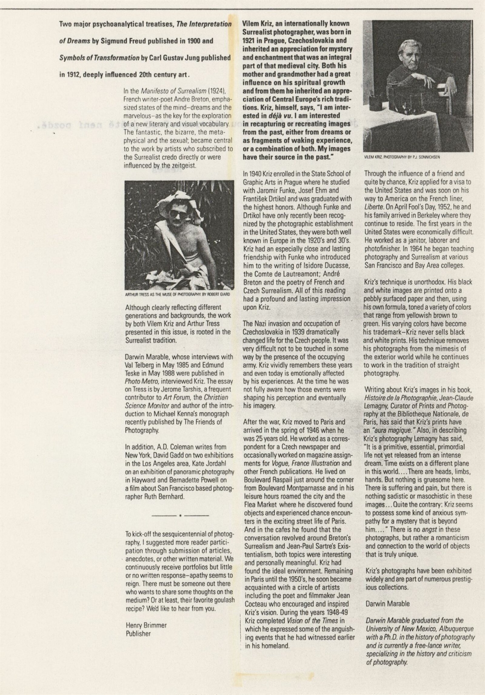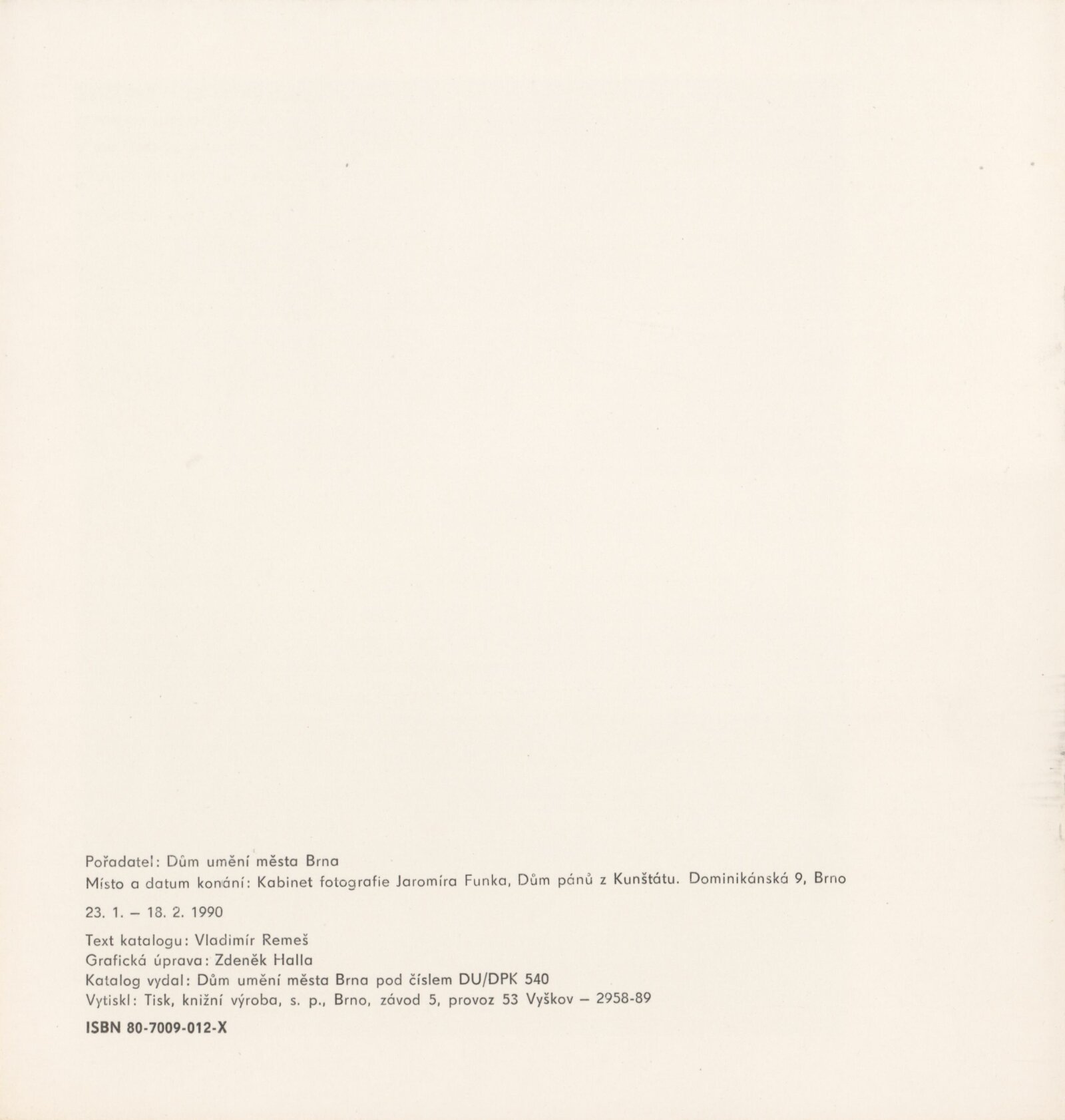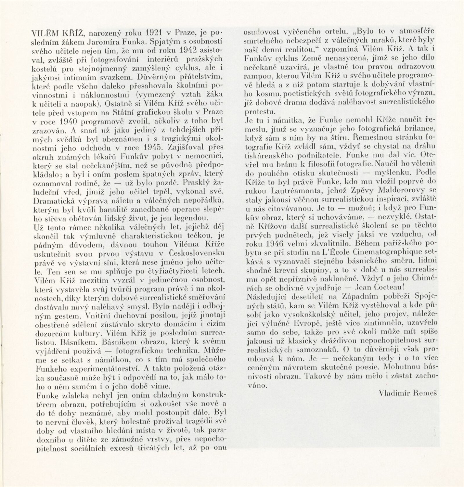 Vilém Kříž: Dům umění města Brna / Dům pánů z Kunštátu, Kabinet fotografie Jaromíra Funka, 23. 1. – 18. 2. 1990 / Text: Vladimír Remeš. – Brno: DUmB, 1990. – [8] s., obr., DPK 930. – MZK; MG
