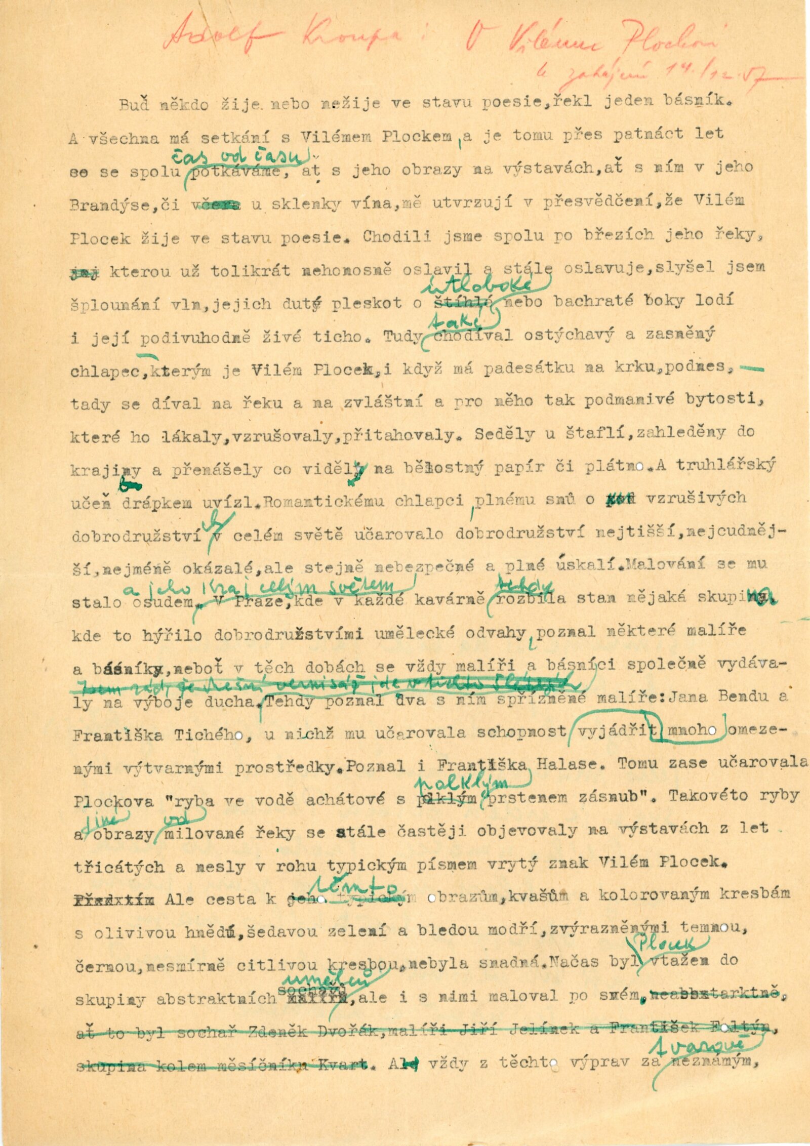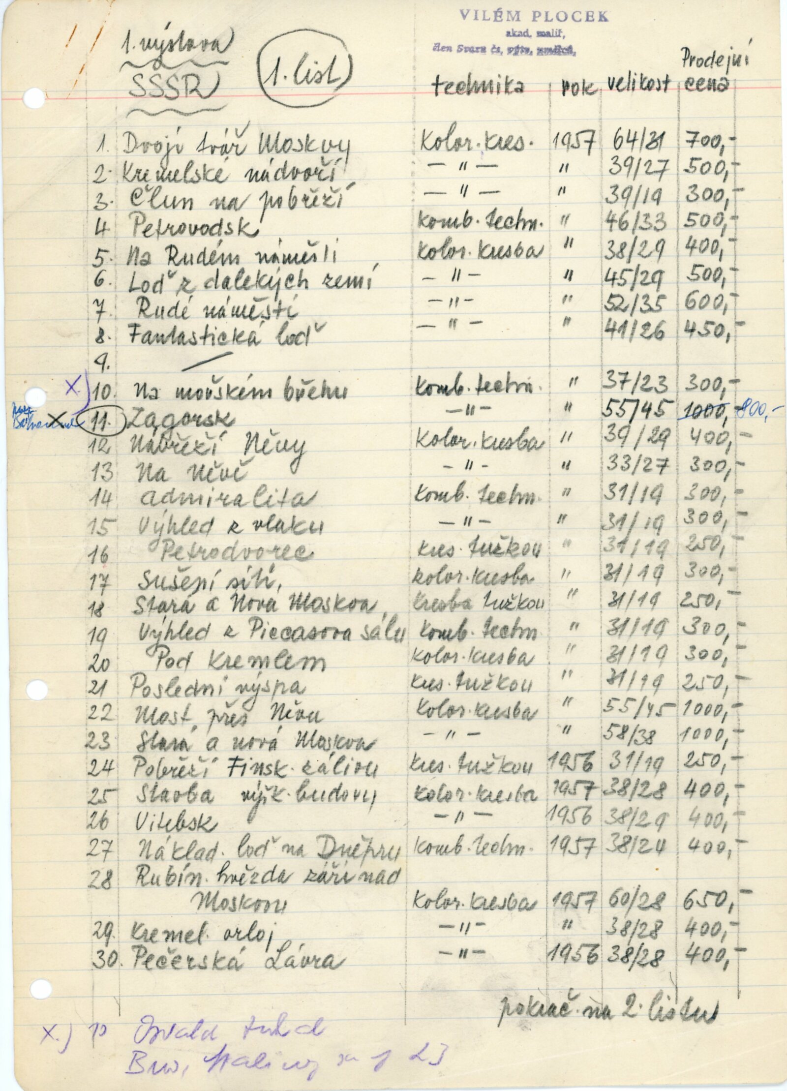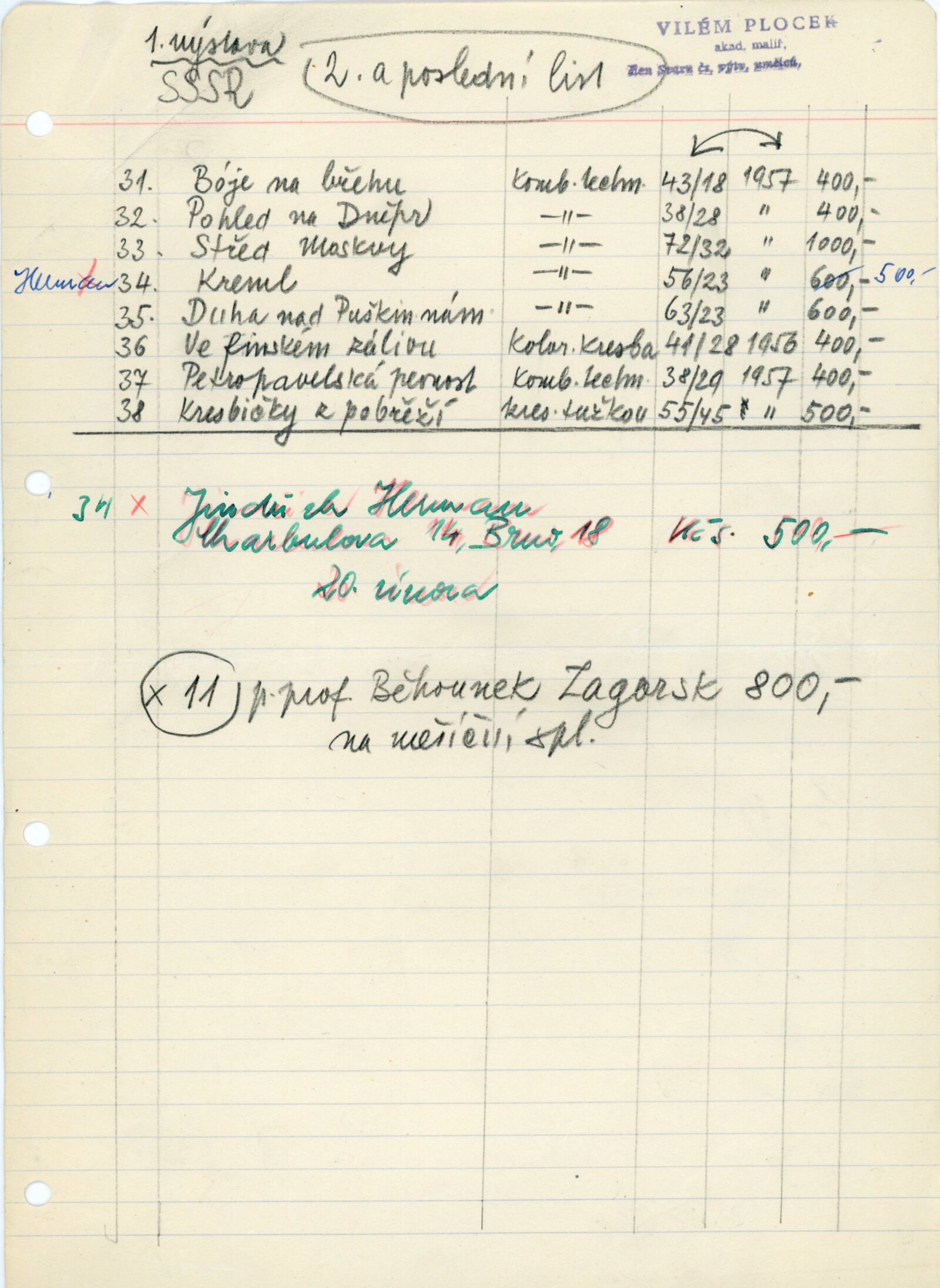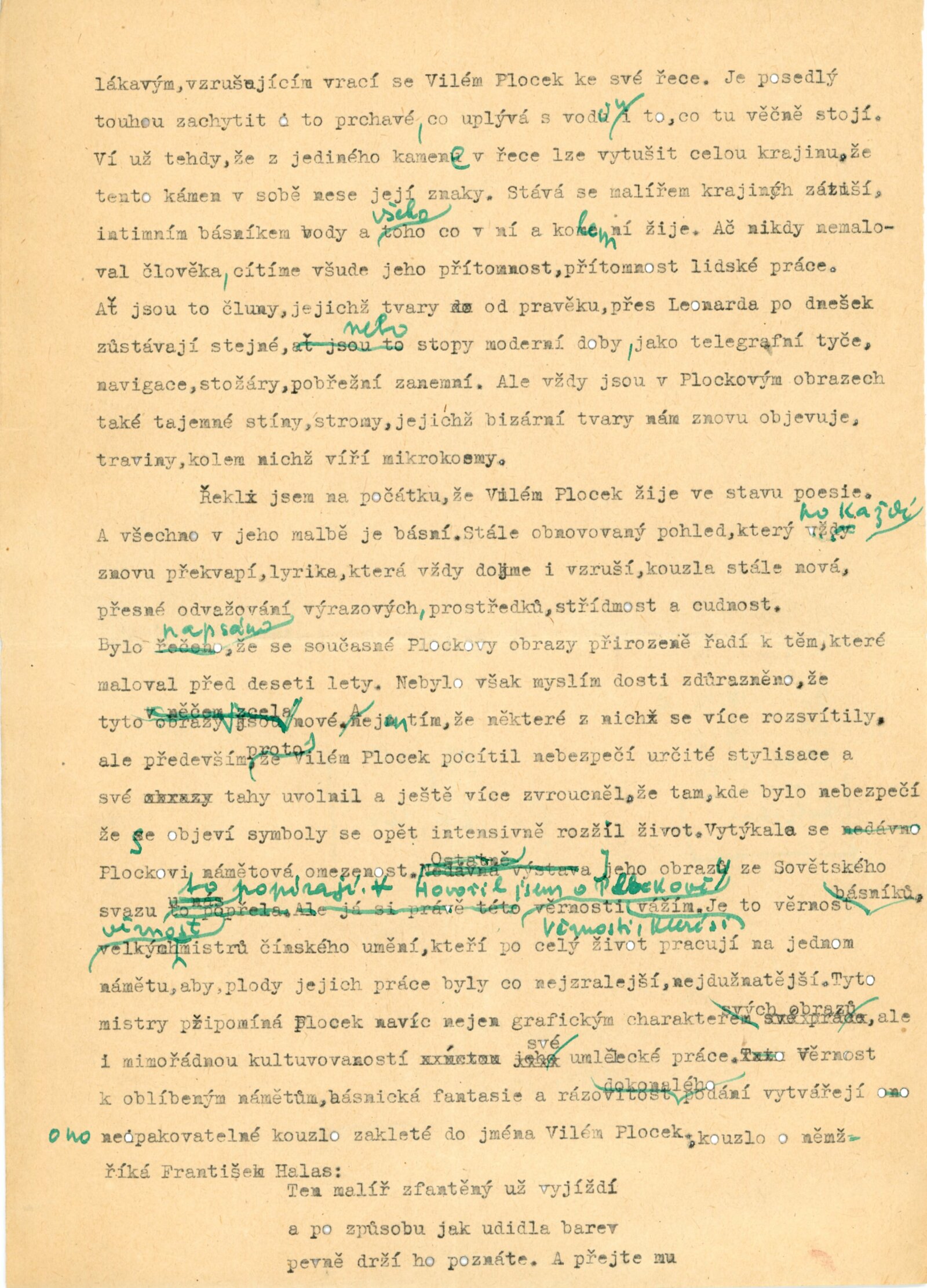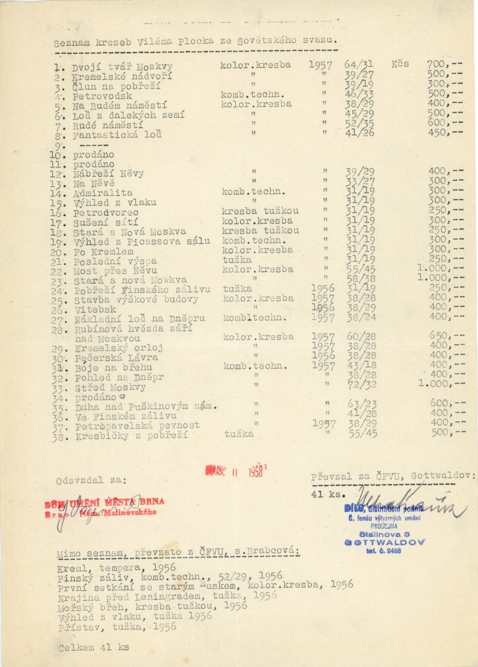 Vilém Plocek. Obrazy z posledních let: Dům umění, 14. 12. 1957 – 12. 1. 1958 / Převzatý katalog. Vilém Plocek: Galerie Českého fondu výtvarných umění Praha II, Národní tř. 30, 28. 6. – 22. 7. 1957 / Text: Jaromír Pečírka. – Praha: Český fond výtvarných umění, 1957. – 12 s., obr., báseň Jindřicha Hilčra, výstavy, reprodukce, básně, ilustrace, obálky, frontispice, DU 301. – MG