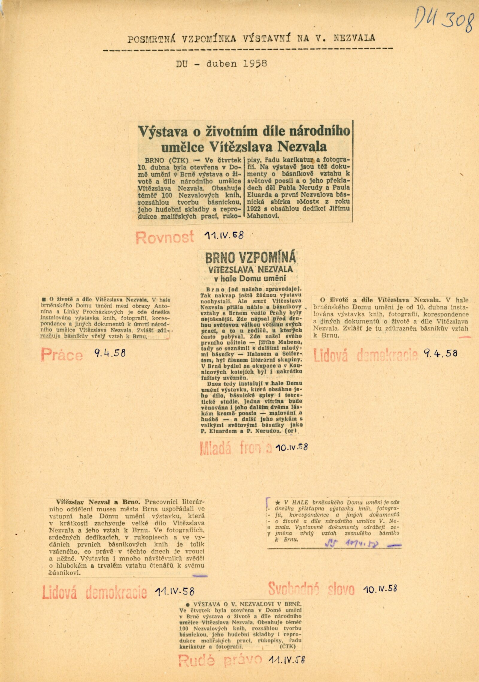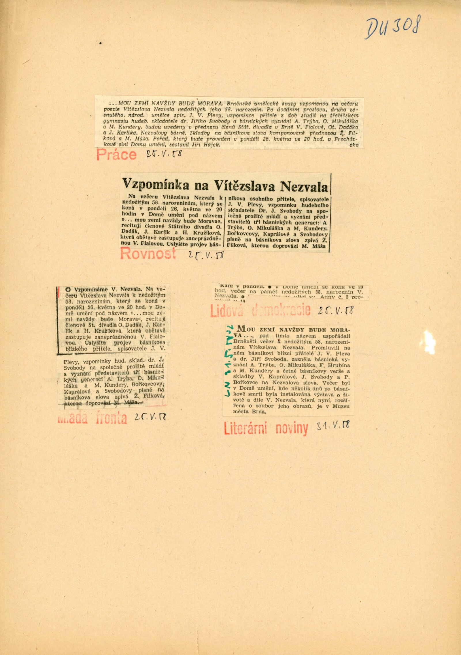 Vítězslav Nezval. O životě a díle, u příležitosti úmrtí