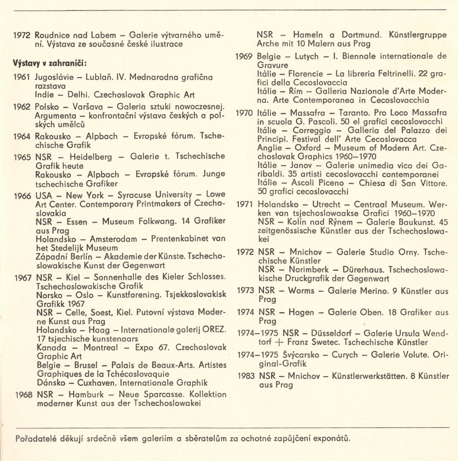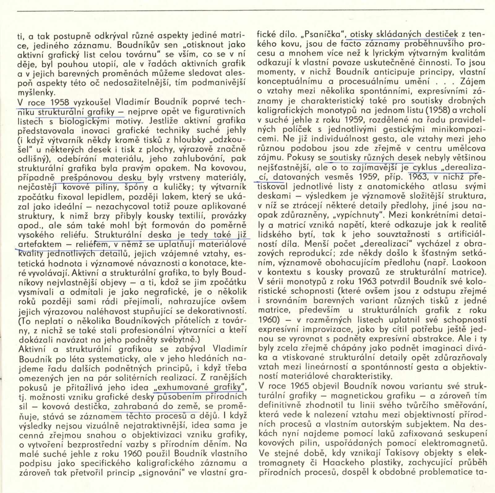Vladimír Boudník. Grafika. Výstava k nedožitým šedesátinám: Dům umění / Dům pánů z Kunštátu, Kabinet grafiky, 24 .4. – 27. 5. 1984 / Text: Jiří Valoch. – Brno: DUmB, 1984. – 29 s., obr., životní data, výstavy, DPK 822. – MZK; MG