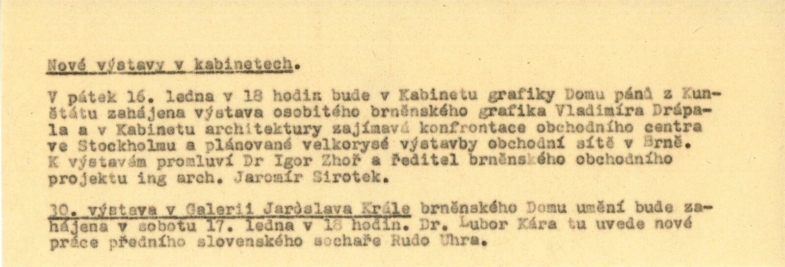 katalog, informační zpráva o výstavě z DU, text Milady Novákové o Vladimíru Drápalovi, seznam vystavených děl, podklady pro katalog, dopis Vladimíra Drápala s žádostí o výstavu, recenze v tisku