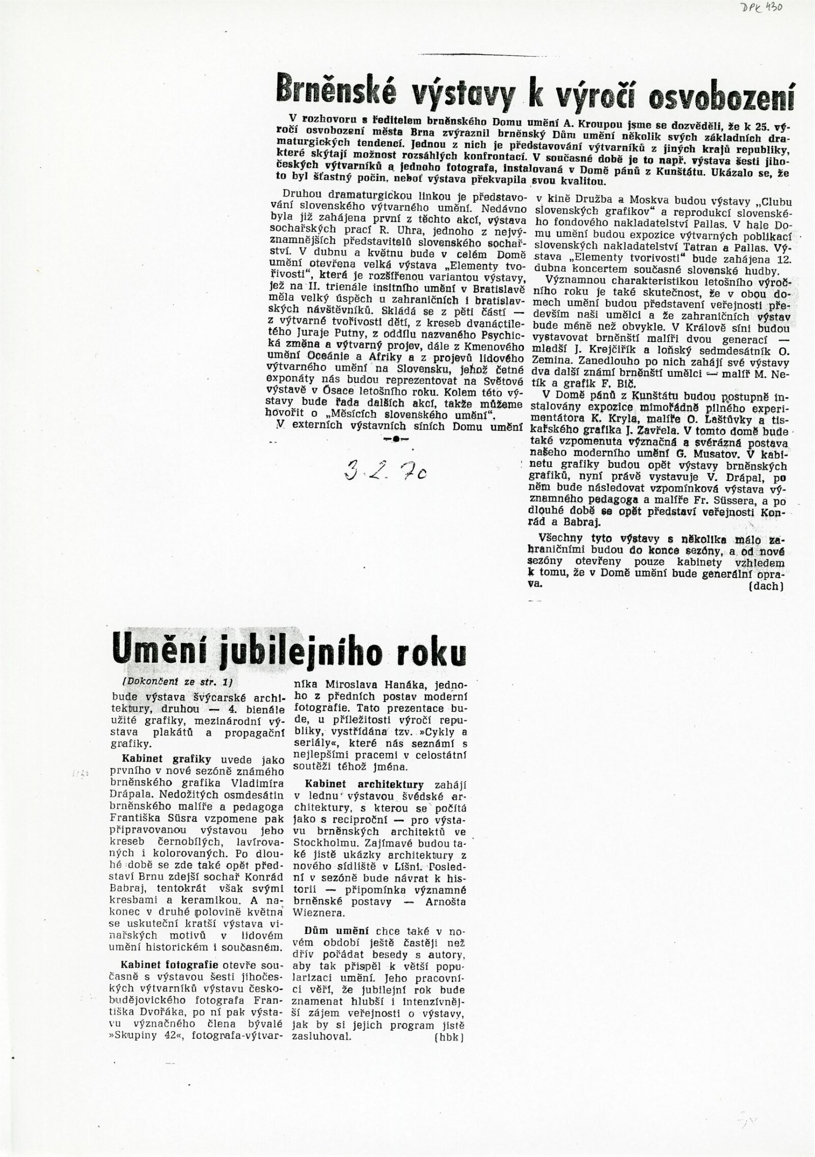 11. 1. – 22. 2. 1970