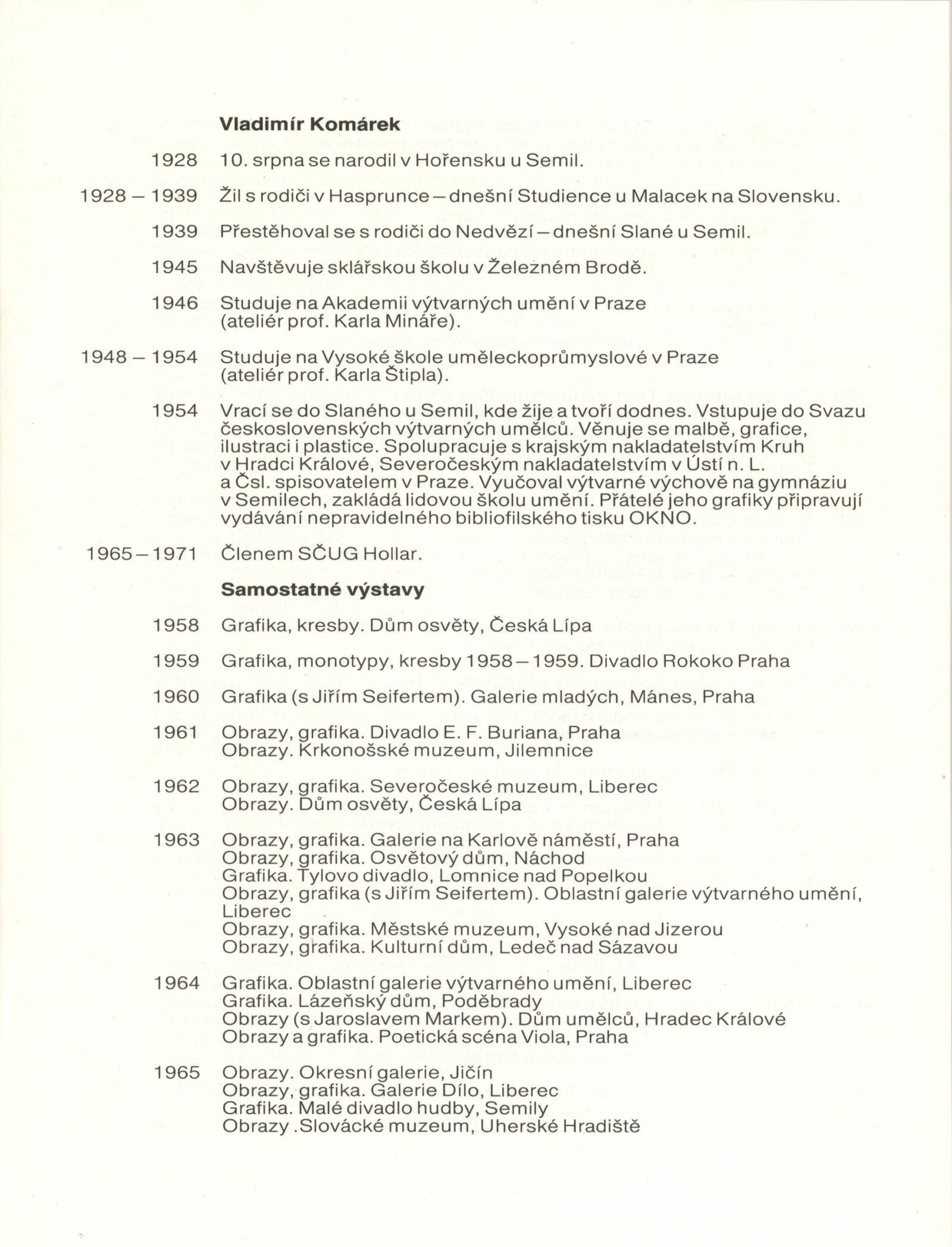 Vladimír Komárek – malba a grafika z let 1948–1988