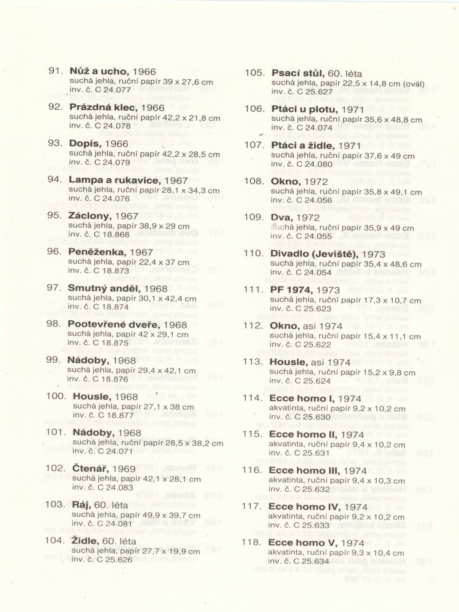 pozvánka, katalog, seznam vystavených děl, pojistný seznam, provozní korespondence, smlouva o výpůjčce, potvrzení o prevzetí, reversy, žádost a potvrzení o konání výstavy, smlouva o spolupořádání výstavy DUMB a MG v Brně, malá knížka povídání o Vladimíru Komárkovi a jeho grafice od Naděždy Melnikové-Papouškové