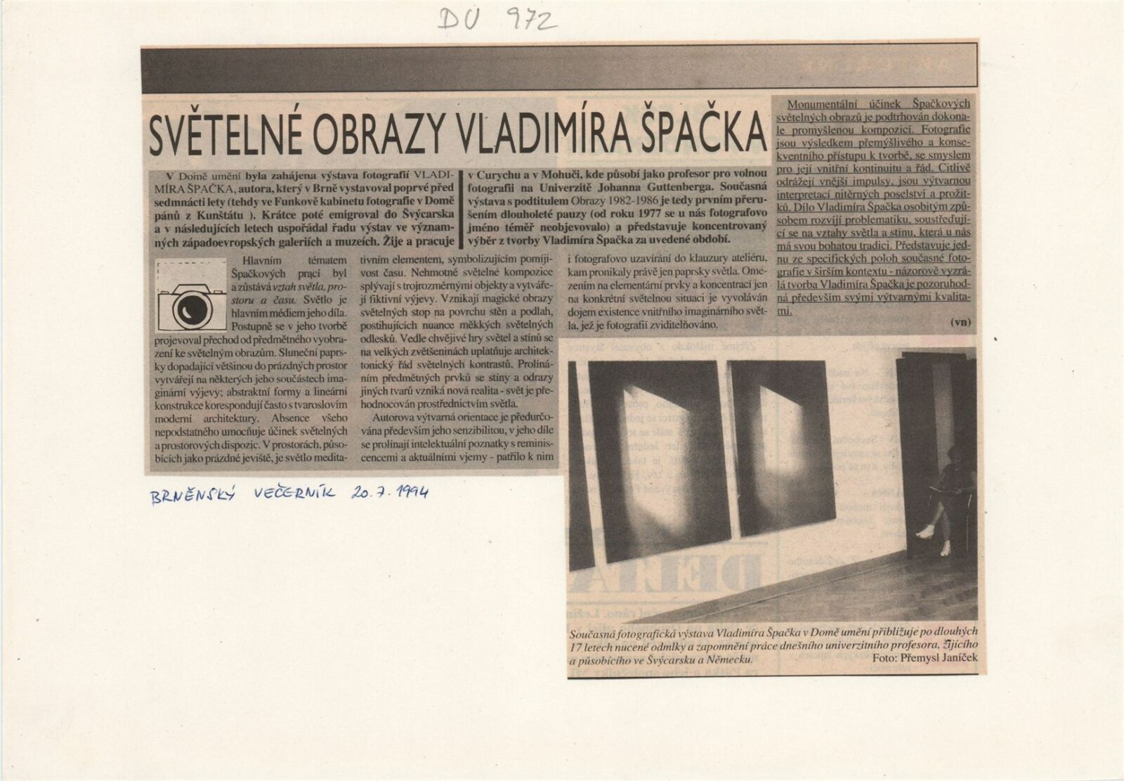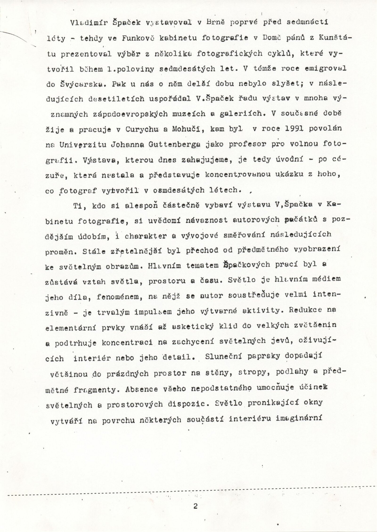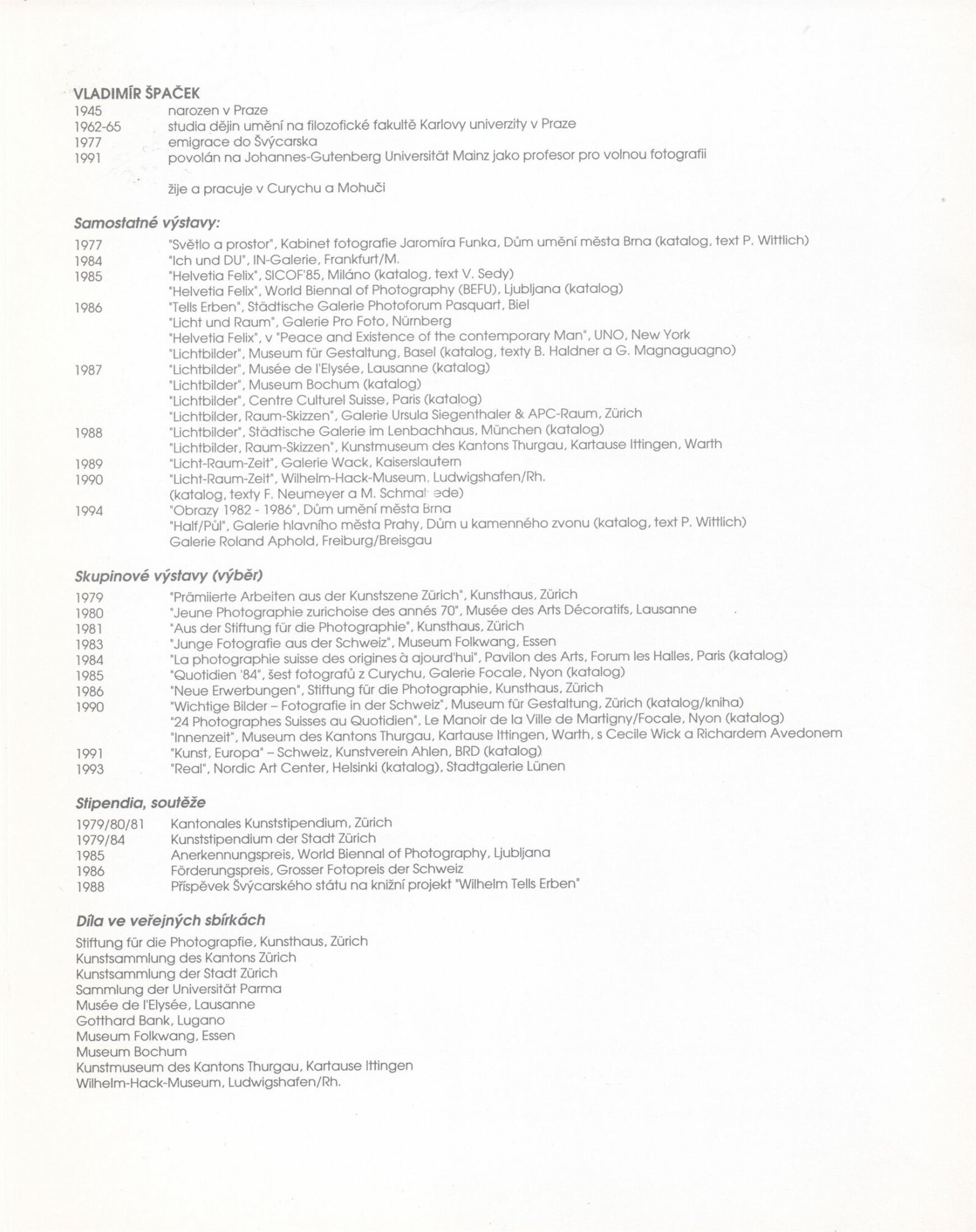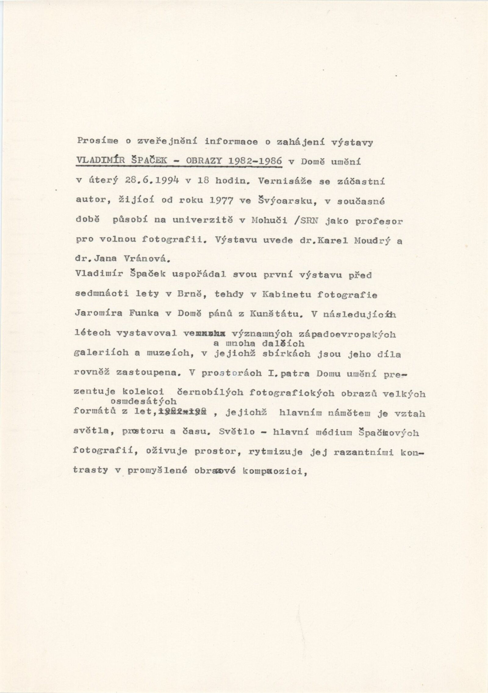 Vladimír Špaček. Obrazy 1982–1986: Dům umění města Brna 28. 6. – 14. 8. 1994 / Text Bernhard Holeczek. - Brno: DUmB, - [4] s. Životní data, výstavy, díla ve veřejných sbírkách DU 972; MZK