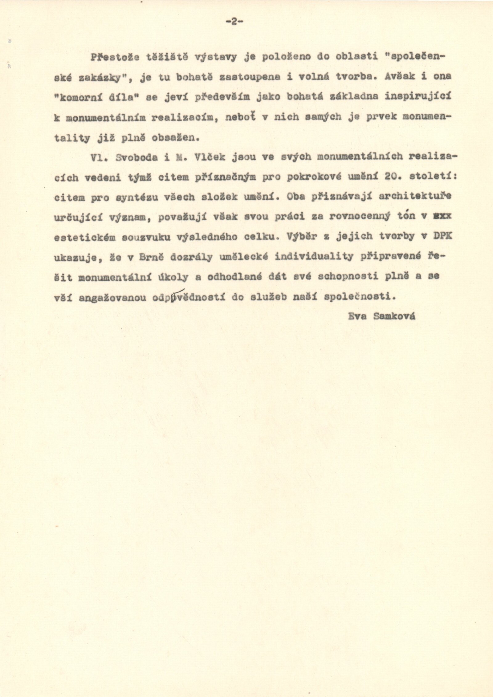 pozvánky, katalog, fotodokumentace děl, strojopis úvodního slova, podklady pro katalog, korespondence – žádost o vyjádření SČVU, provozní korespondence, žádost o povolení výstavy, žádost o výstavu, recenze v tisku