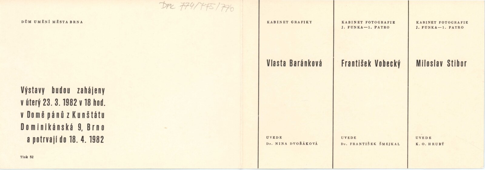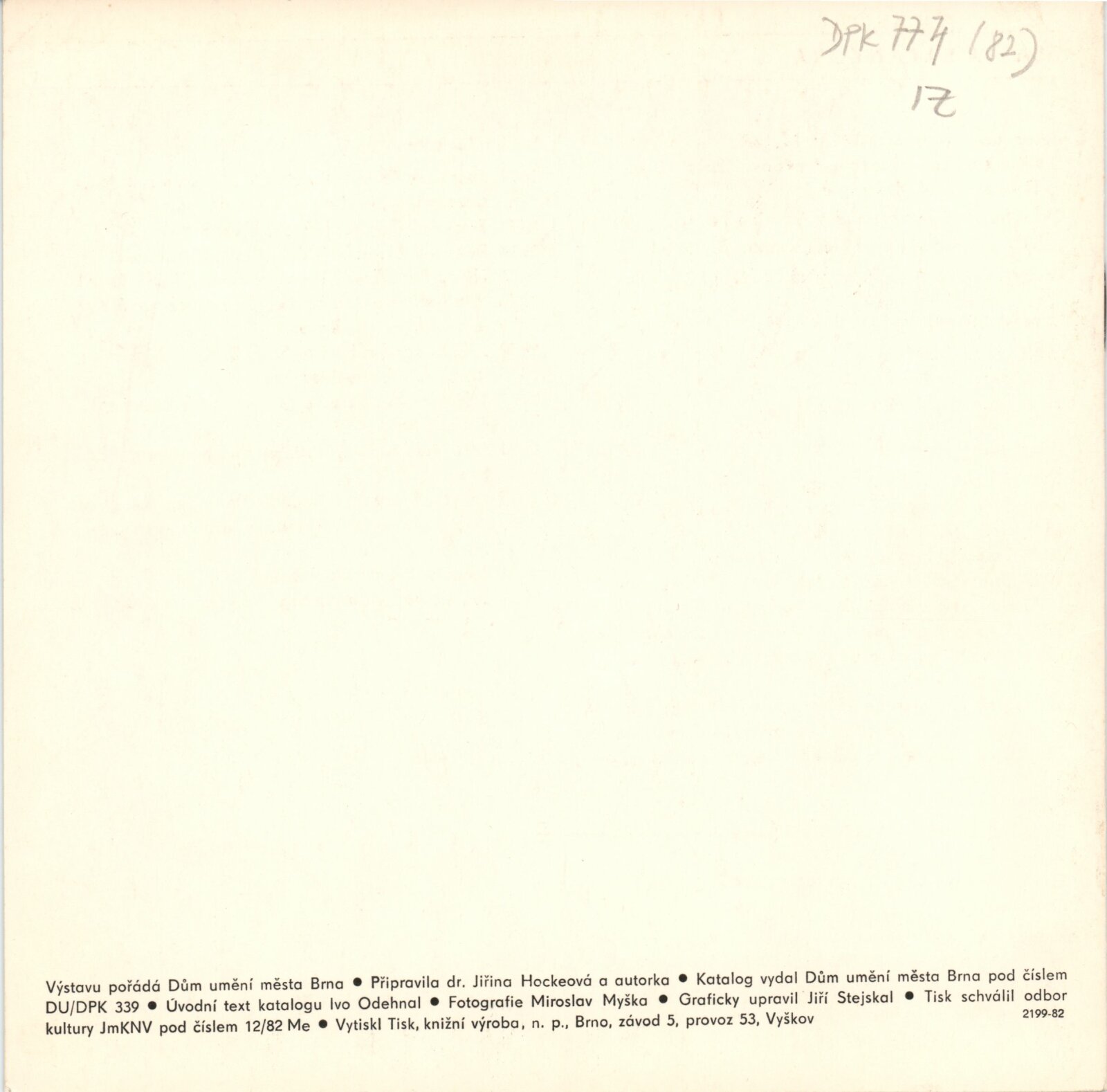 pozvánka společná pro výstavy DPK 774–776, katalog, strojopis katalogu, fotografie z vernisáže, z výstavy, provozní korespondence, žádost o povolení výstavy, recenze v tisku