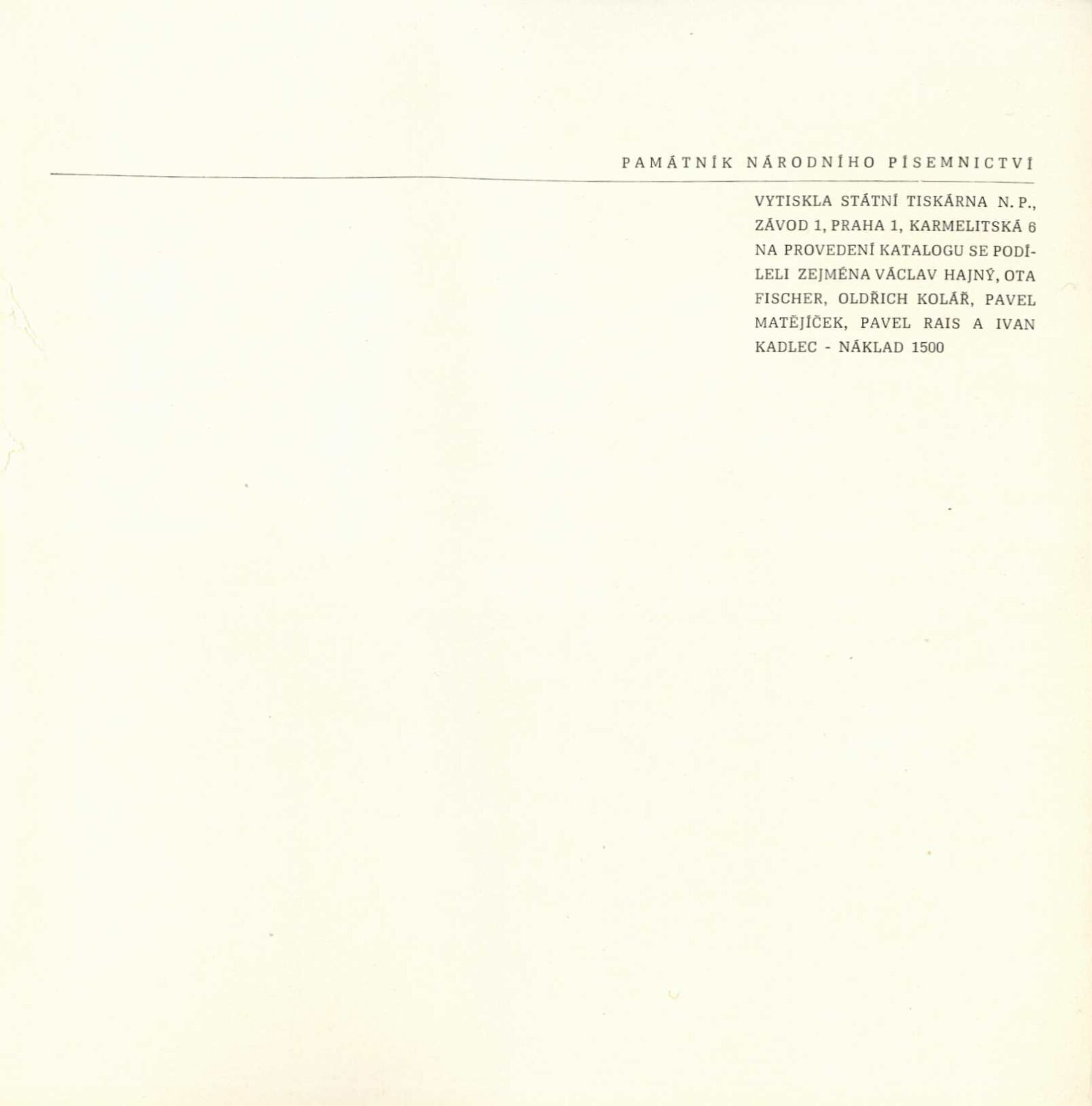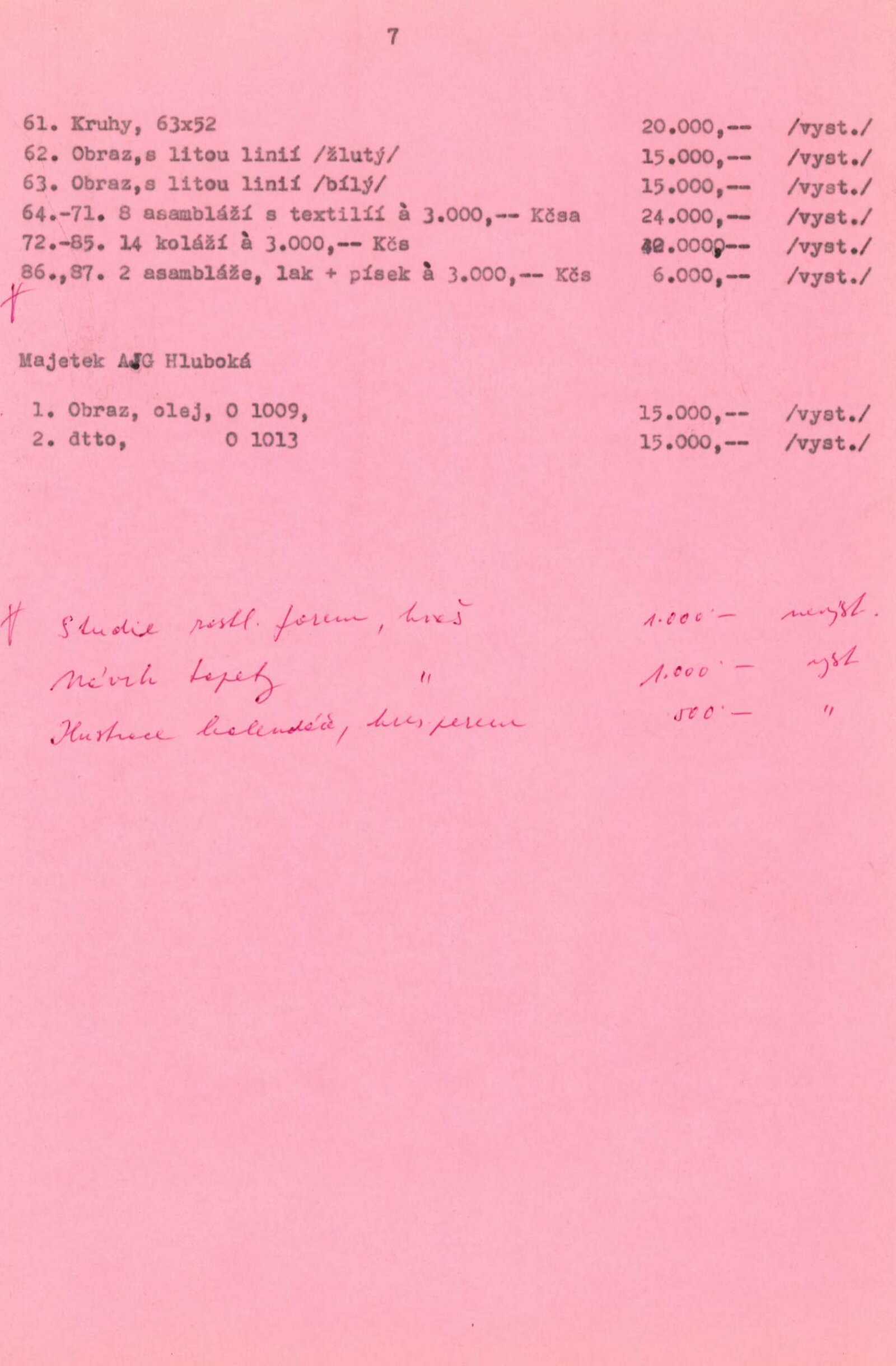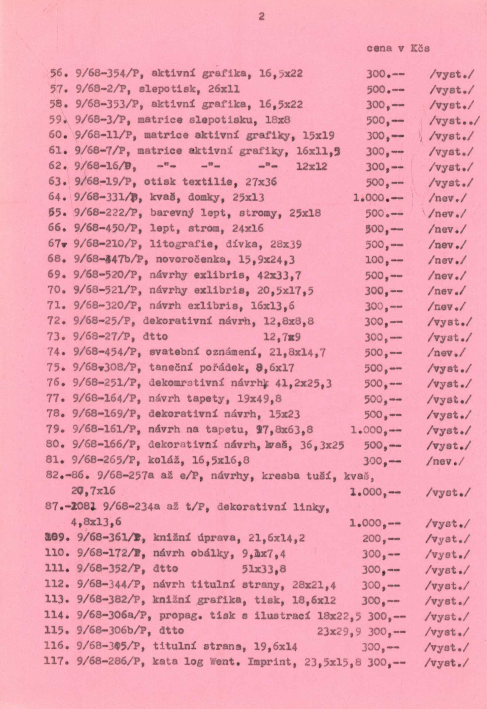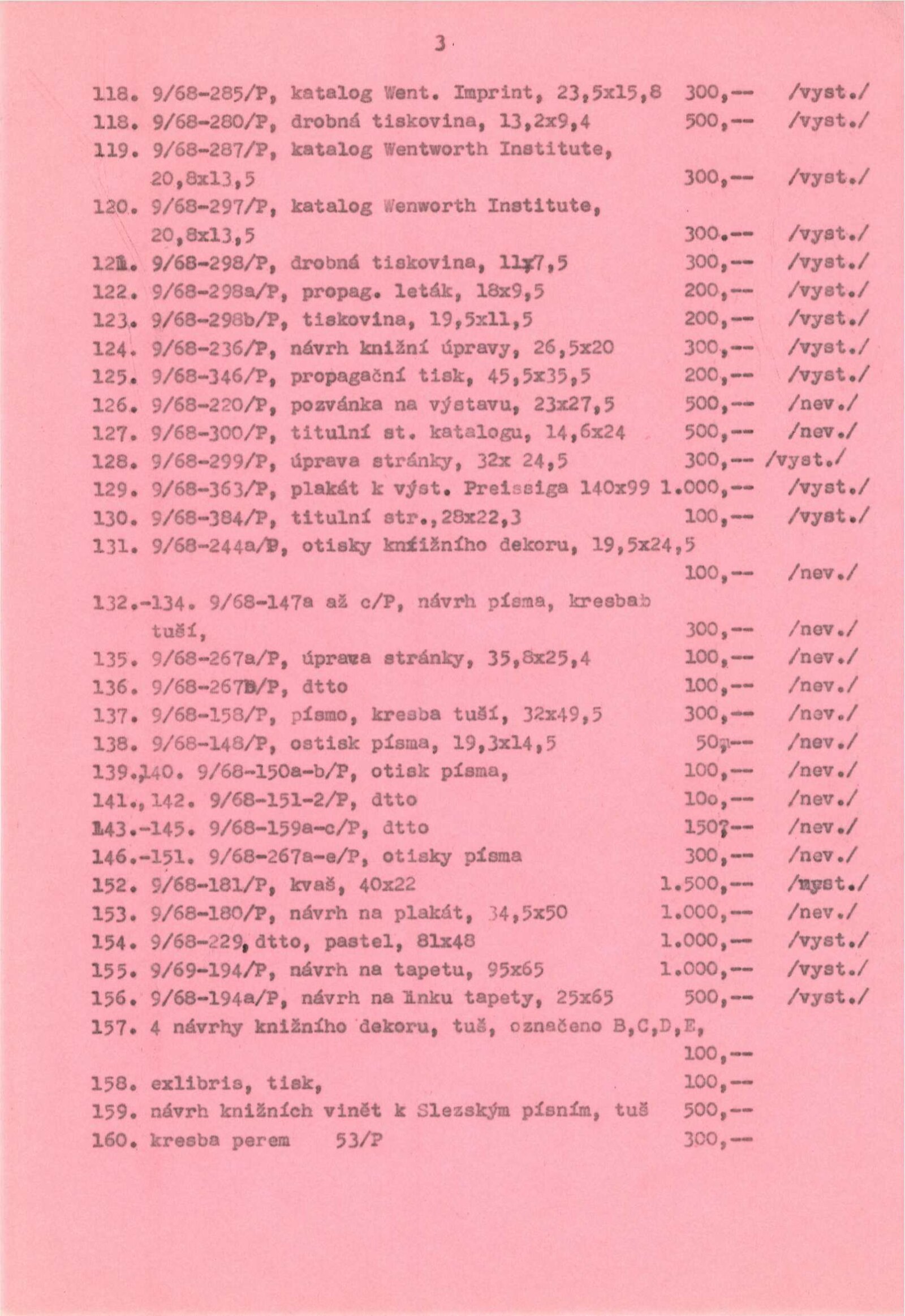 pozvánka, katalog, pokyny od Tomáše Vlčka, seznam vystavených děl, pojistný seznam, fotografie a diapozitivy děl, korespondence (SČVU – J. Wágner), převzetí výstavy, reverzy, zprávy a recenze v tisku, pozvánka Památník národního písemnictví, katalogy, účastníci schůzky kritiků