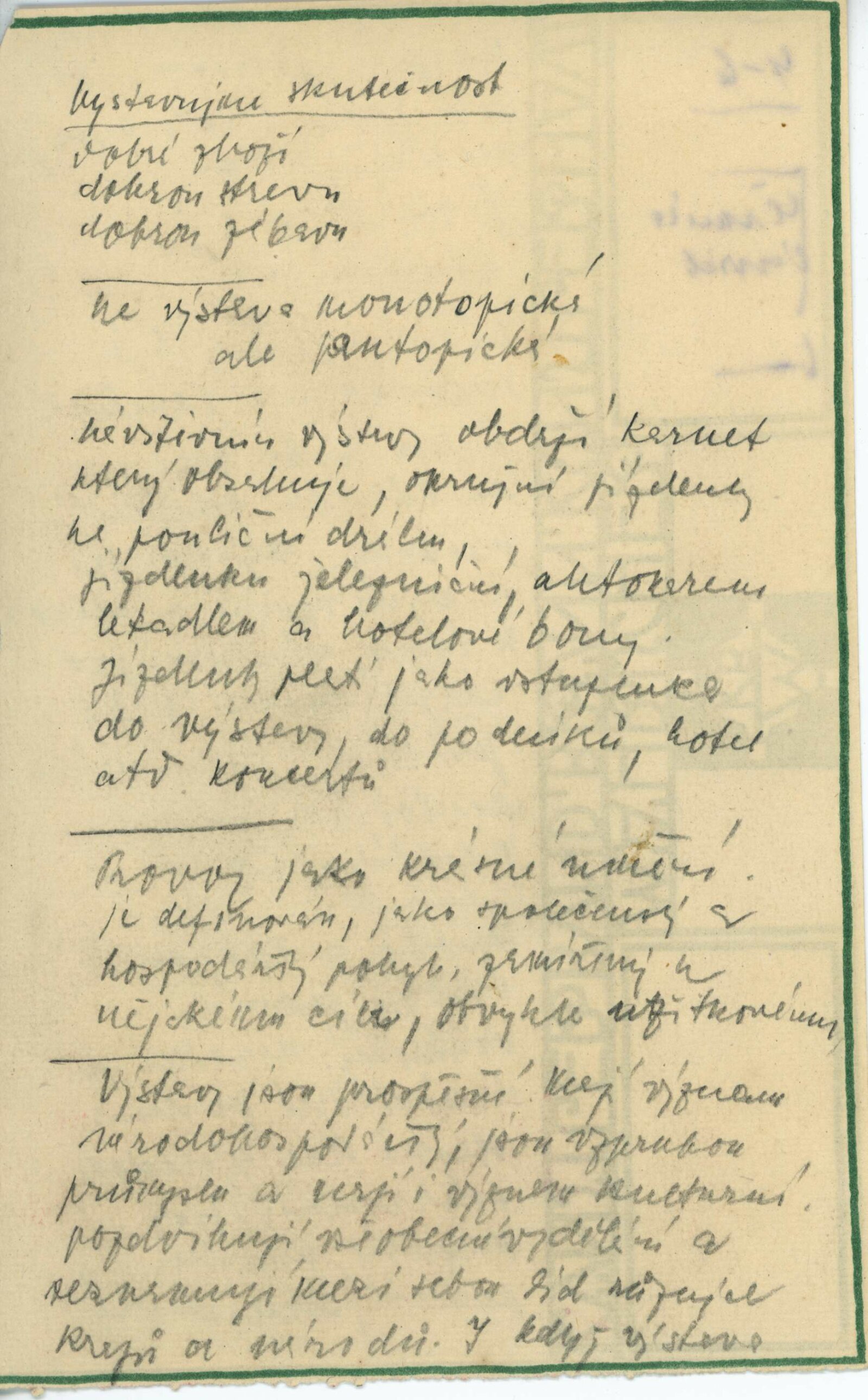 rukopis textu pro katalog, poznámky, podklady k výstavě (texty, koncepty, rukopis Františka Venery k výstavě, záznam o poradě o instalaci výstavy, členové výborů, soupisy družstev, seznamy komisí a výborů), fotografie instalace výstavy, pracovní smlouva k výstavě, zprávy o výstavách v říjnu a listopadu 1946 v tisku