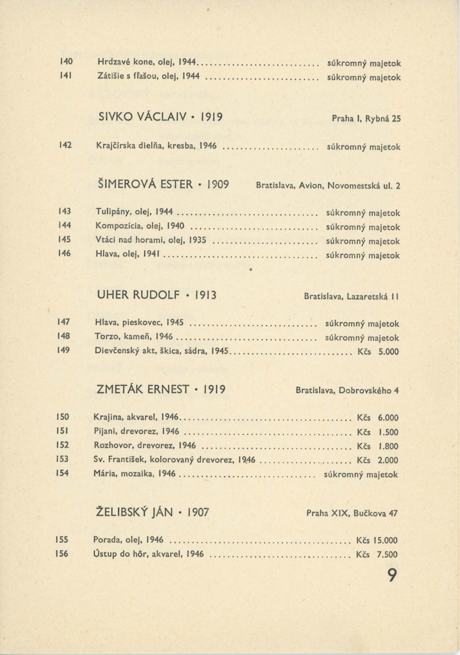 Miloš A. Bazovský, Štefan Bednár, Ladislav Čemický, Orest Dubay, Ľudovít Fulla, Daniel Gálik, Ladislav Guderna, Vincent Hložník, Anton Hollý, Júlia Horová-Kováčiková, Bedrich Hoffstädter, Viliam Chmel, Alojz Klimo, Peter Matejka, Evžen Nevan, Anton Michalčík, Rudolf Pribiš, Ervin Semian, Václav Sivko, Ester Šimerová, Rudolf Uher, Ernest Zmeták, Ján Želibský