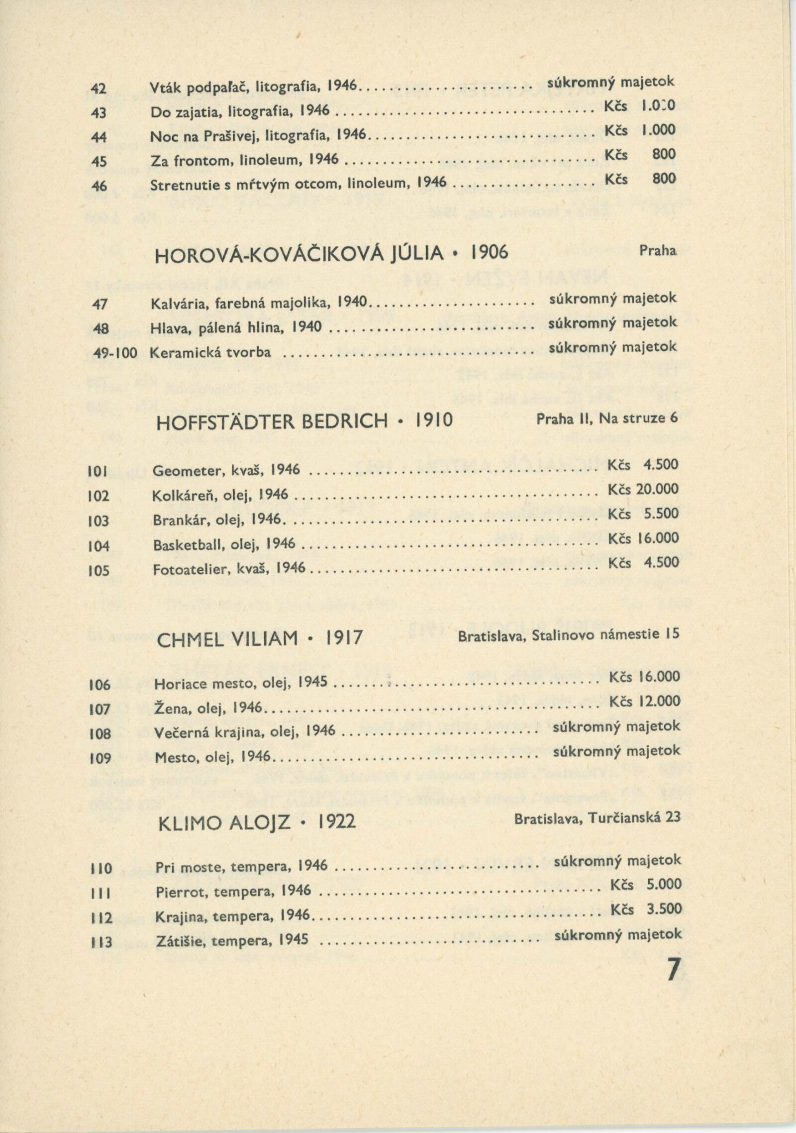 Výstava moderného slovenského umenia v tvorbe členov Skupiny výtvarných umelcov 29. augusta: Dům umění, 12. 1. – 9. 2. 1947 / Text: Štefan Bednár. – Brno: Blok výtvarných umělců, 1947. – 11 s., DU 30. – MG