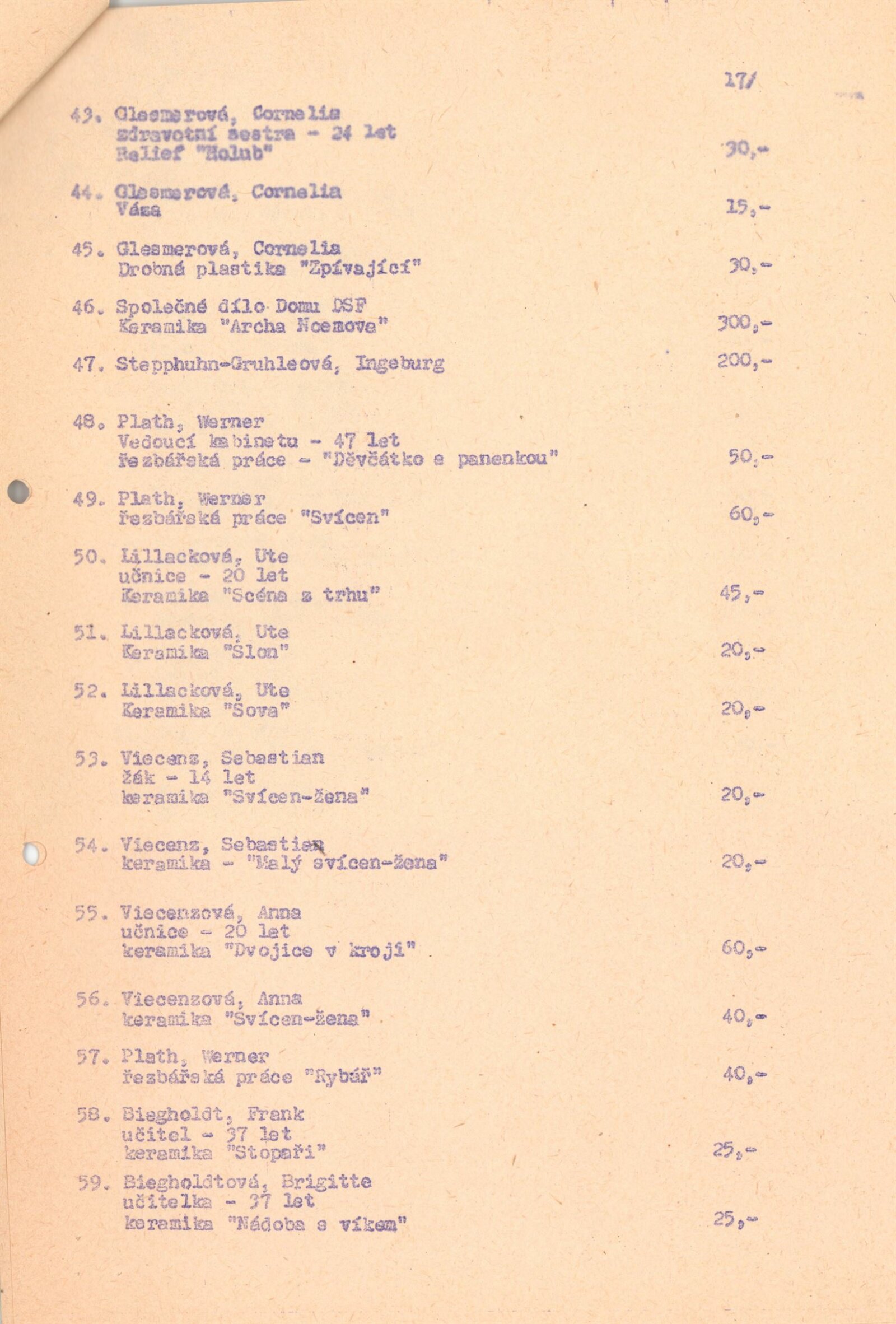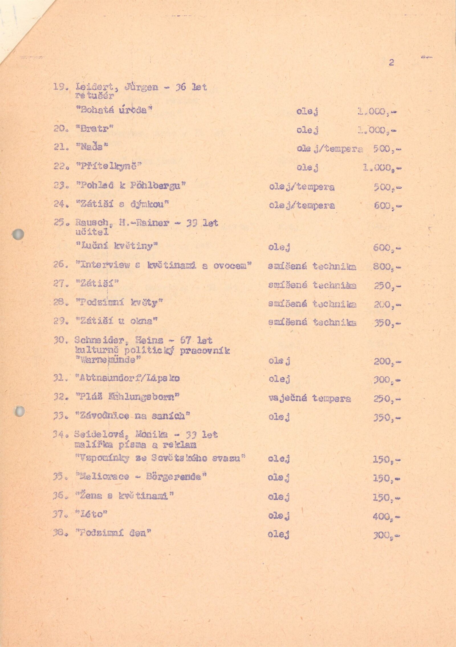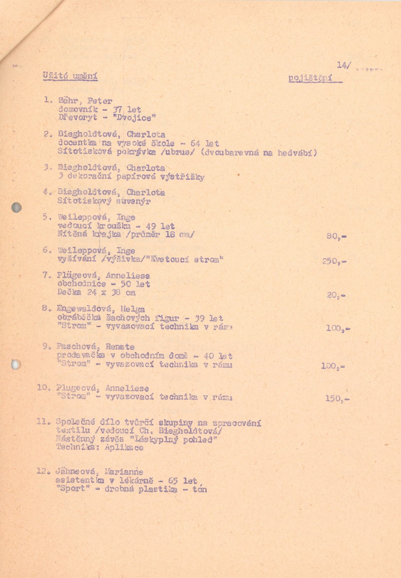 katalog, celní prohlášení k vývozu, seznam autorů a děl s pojistnými cenami, revers, dohoda o spolupráci (DU a Krajské kulturní středisko a Městské kulturní středisko Stanislava Kostky Neumanna, politicko-organizační zabezpečení akce (ideový záměr, rozpočet, program), provozní korespondence, žádost o povolení výstavy, recenze v tisku