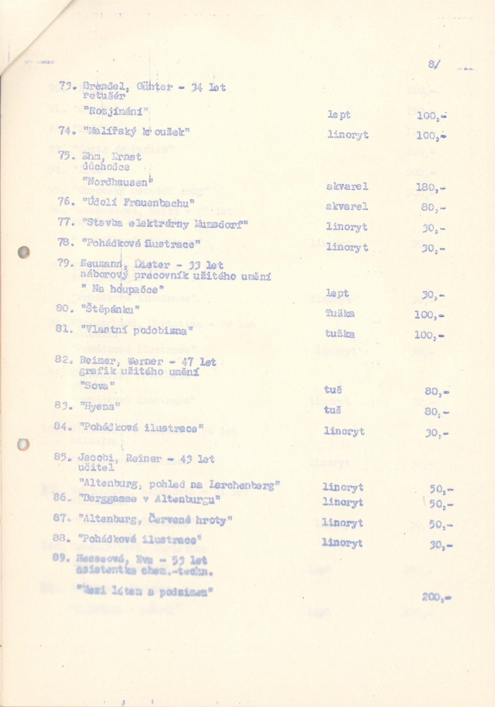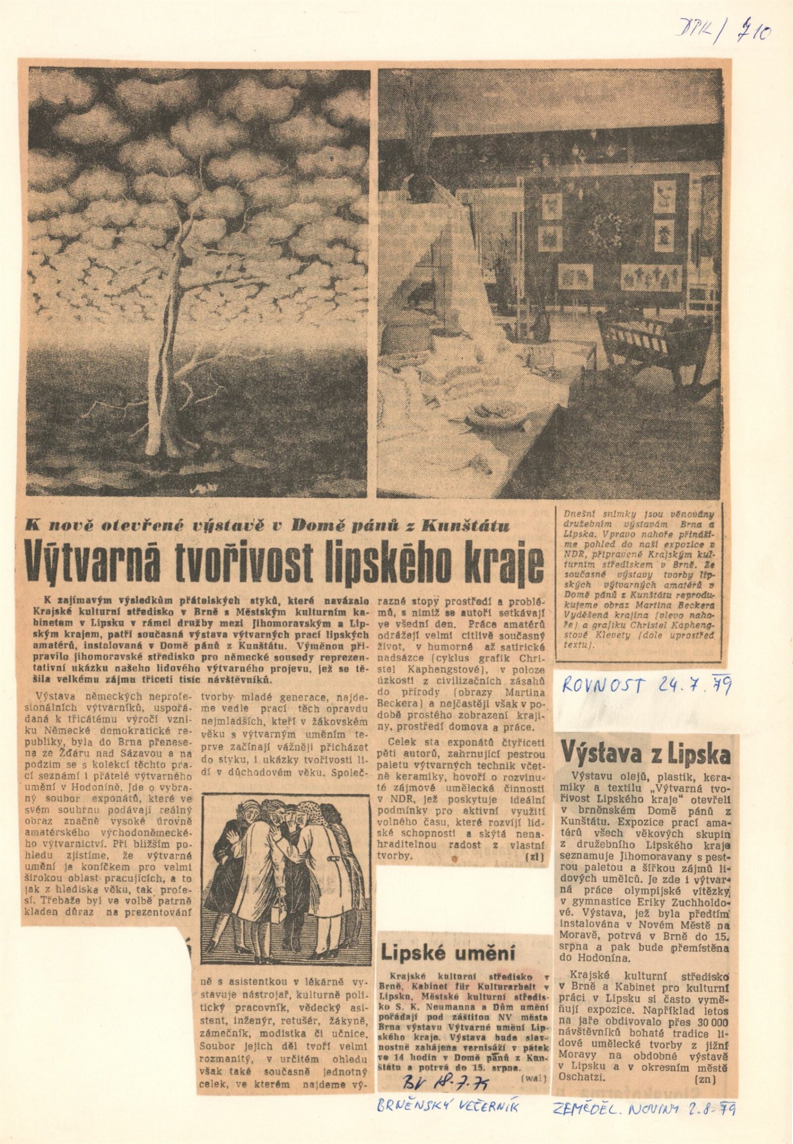 Výtvarná tvořivost lipského kraje. Obrazy, plastika, keramika, textil: Dům pánů z Kunštátu 20. 7. – 15. 8. 1979. - Leipzig: Bezirkskabinett für Kulturarbeit - 1 skládačka 8 s., obr. DPK 710