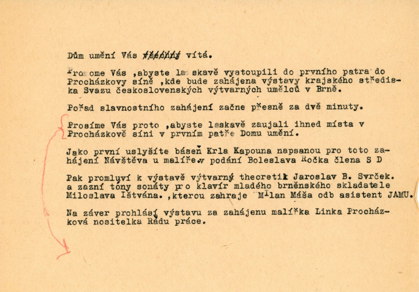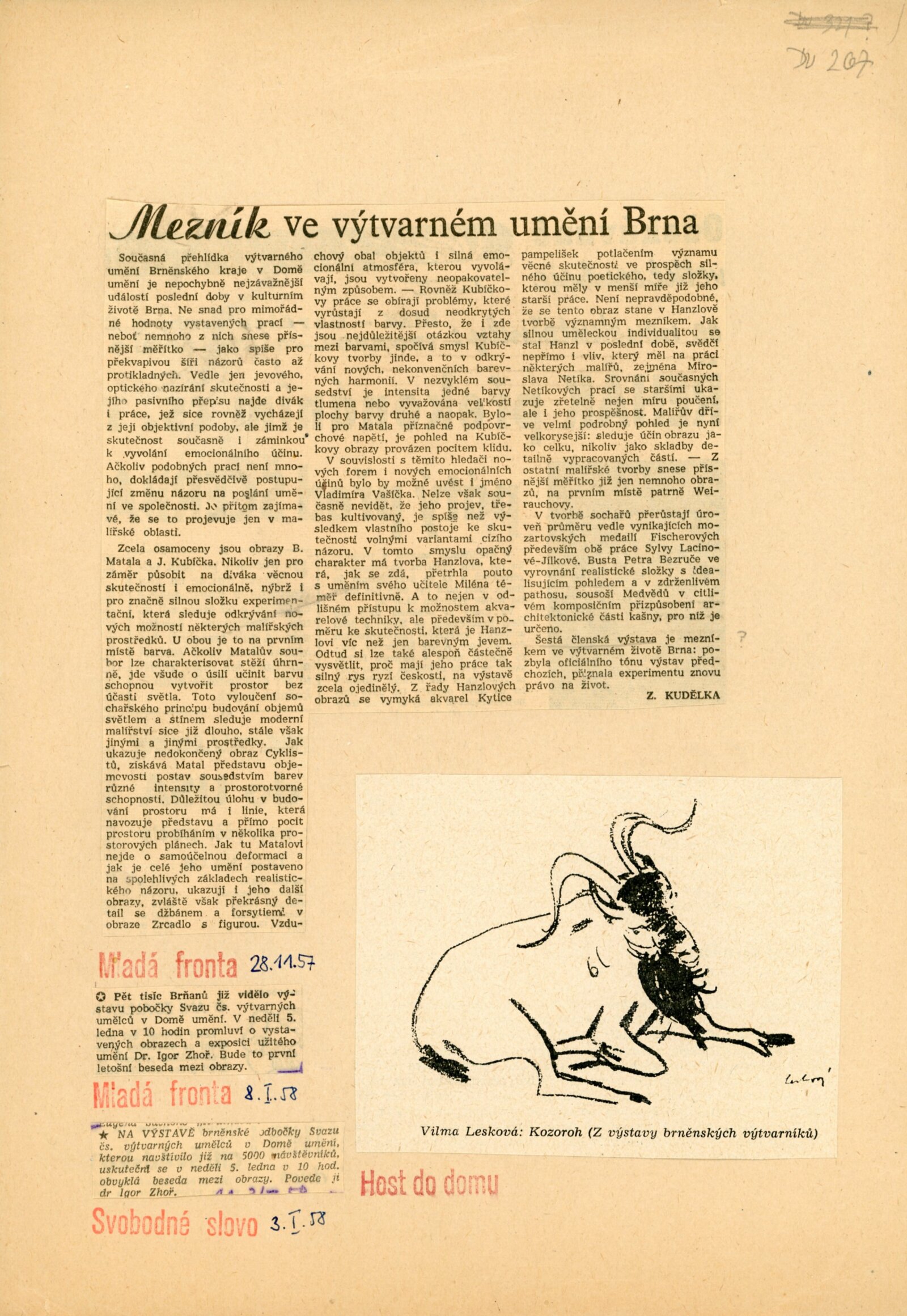 text pozvánky, strojopis básně (K. Kapoun), katalog, textová anotace/ pozvání na výstavu, recenze v tisku